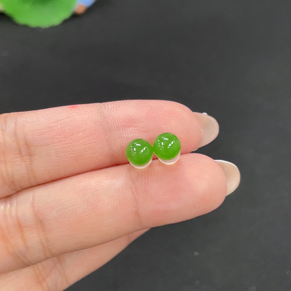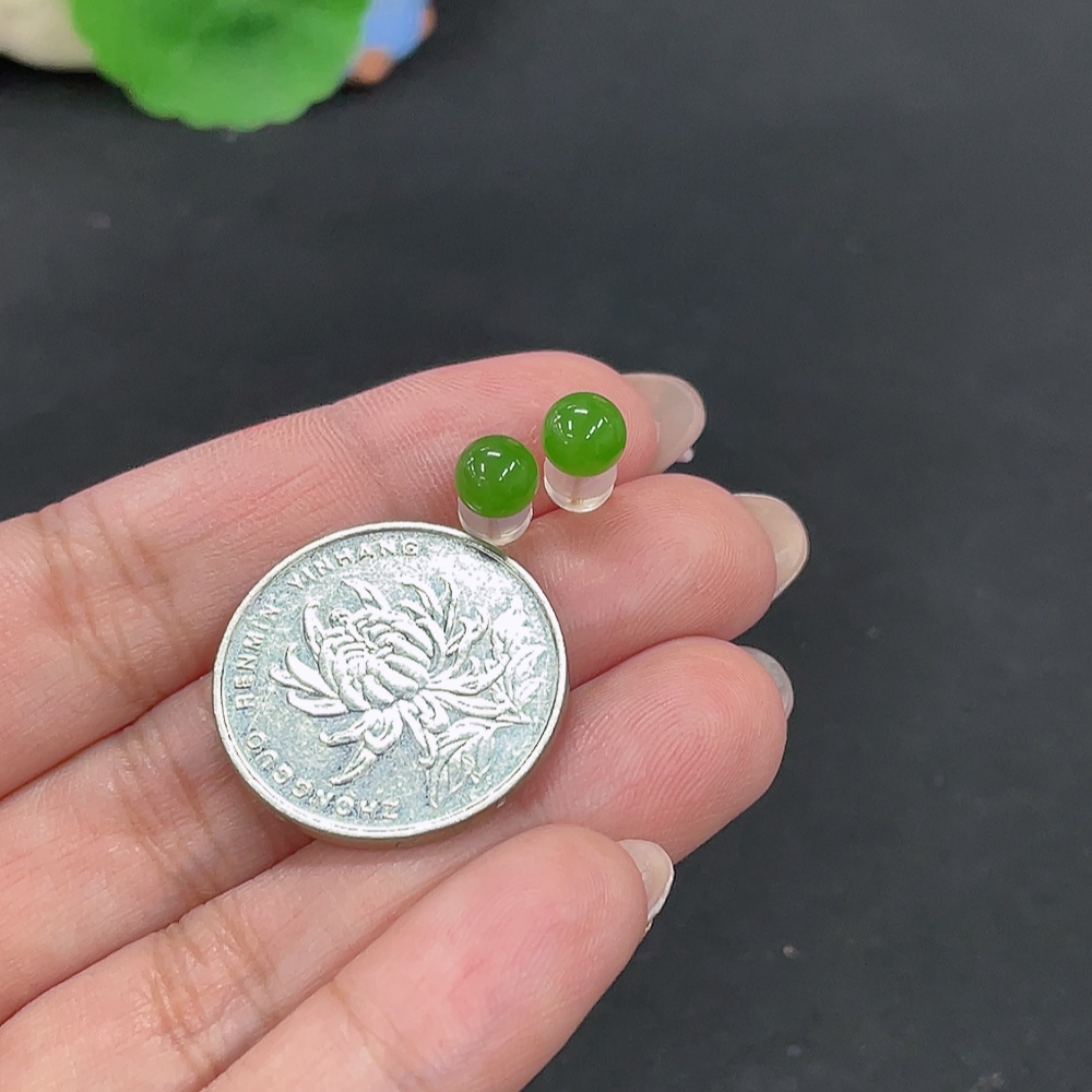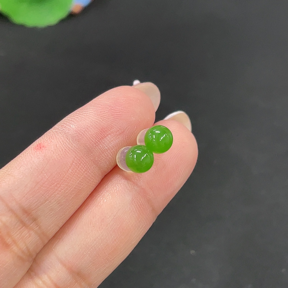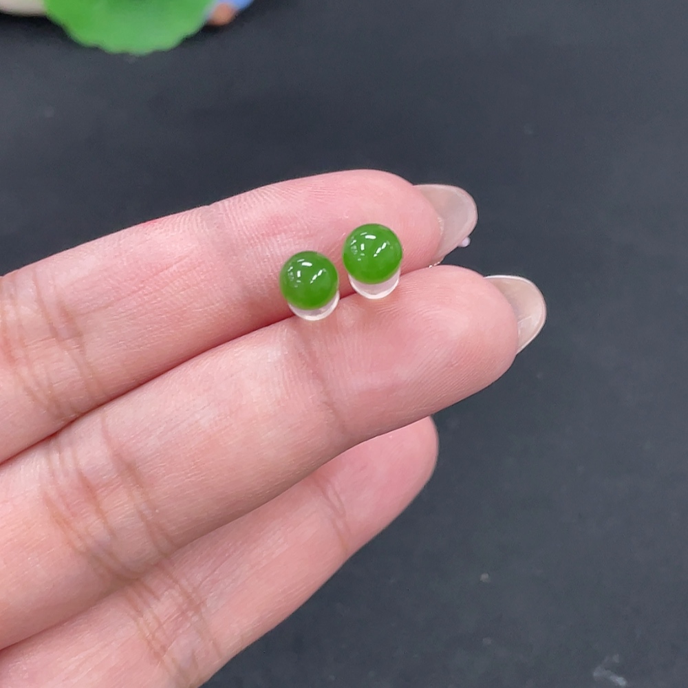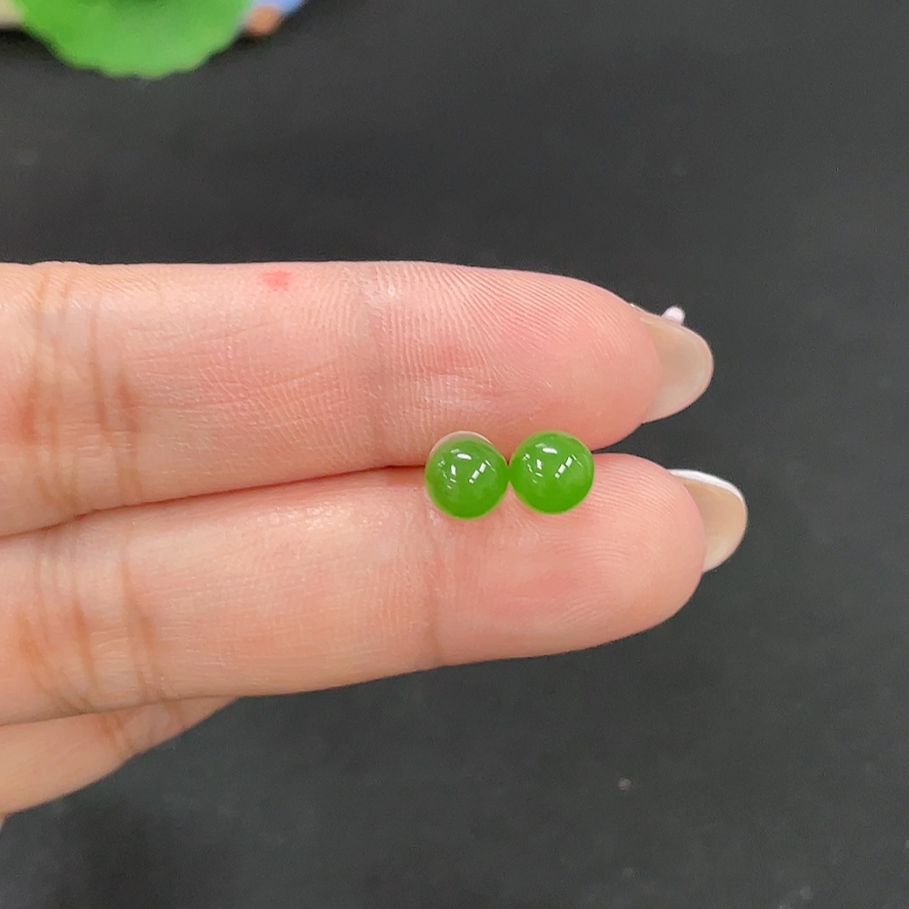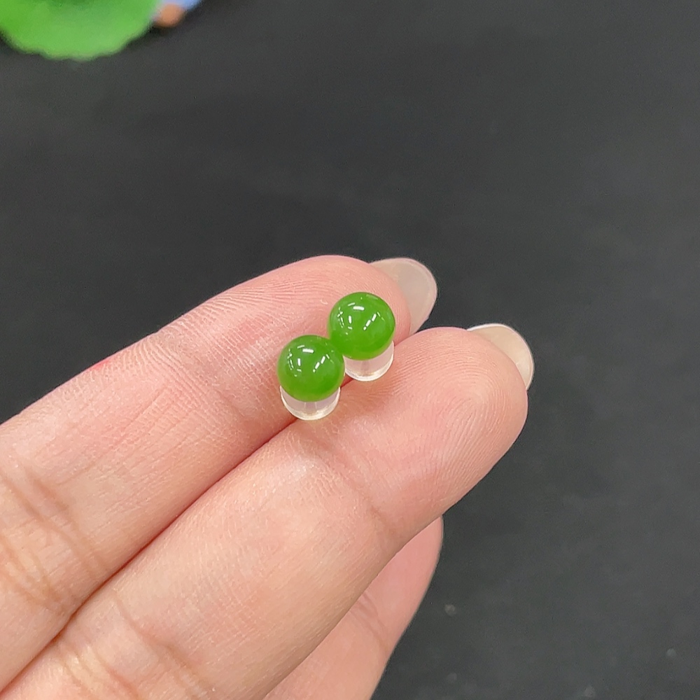 Hetian Jade Inlaid Earrings, Approximately 6mm, Total Weight About 1g, 18k