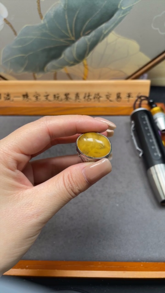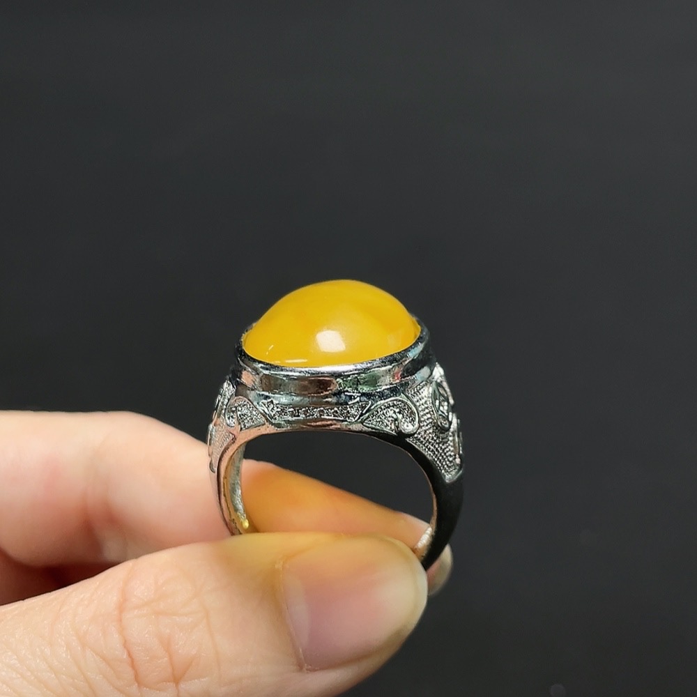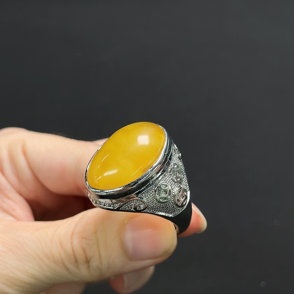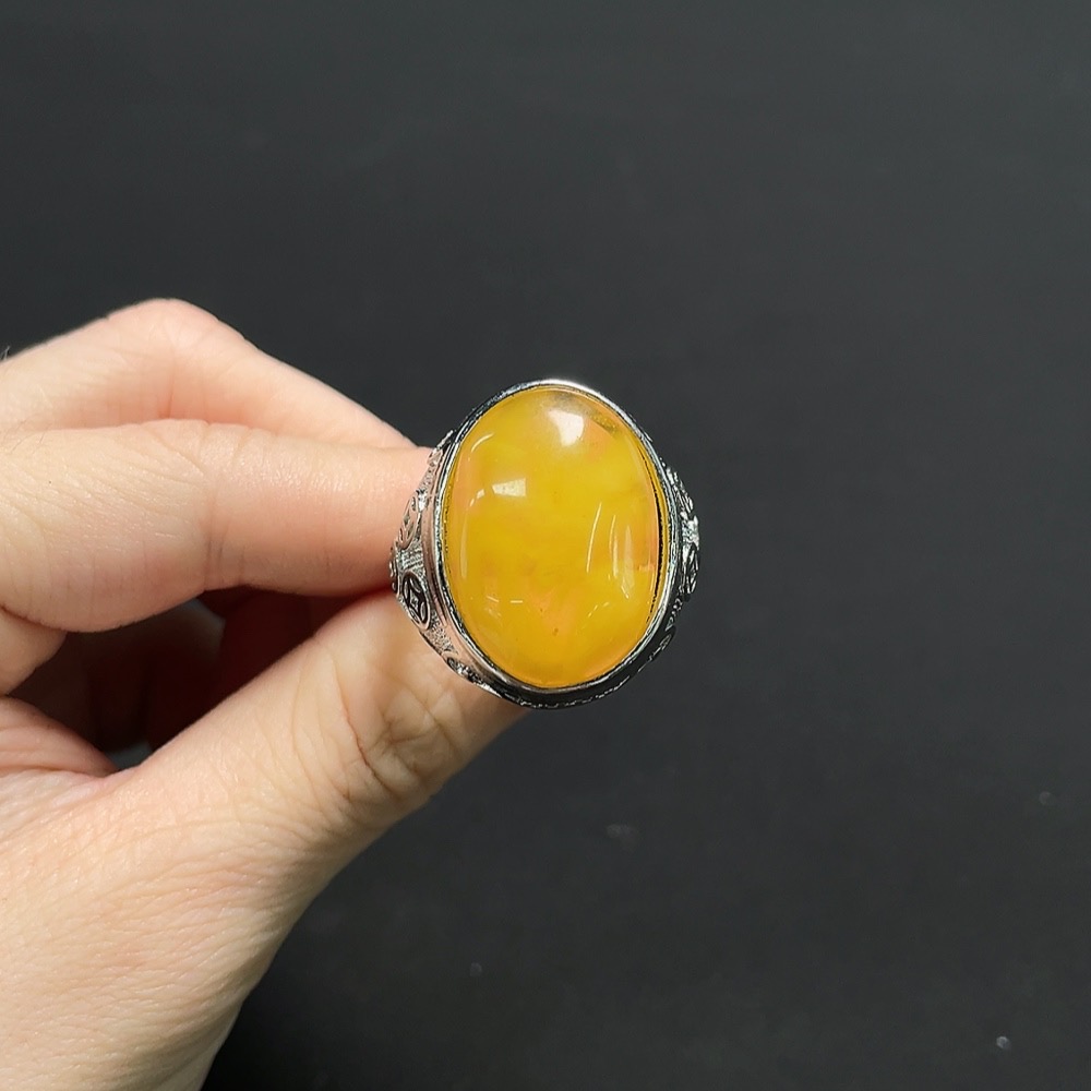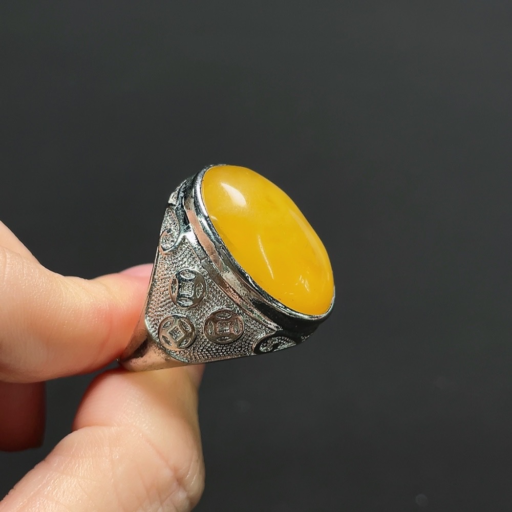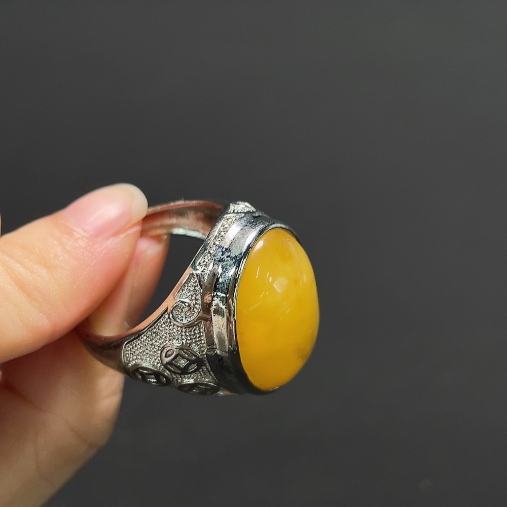 Amber Beeswax Ring, Non-Gold, Adjustable, Total Weight Approx. 9g