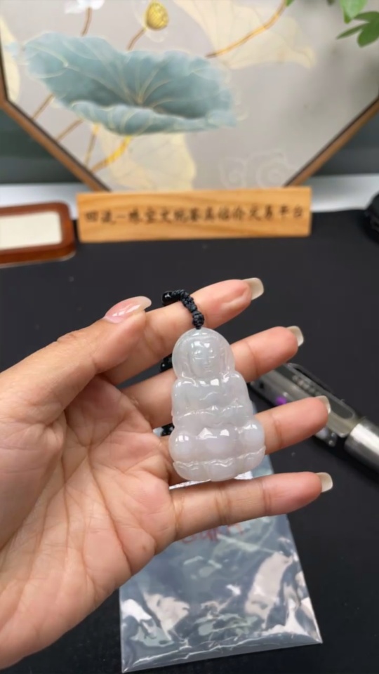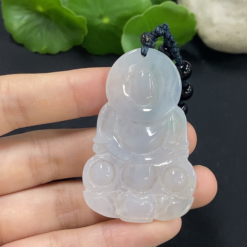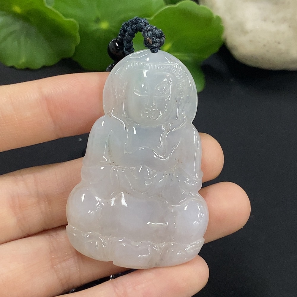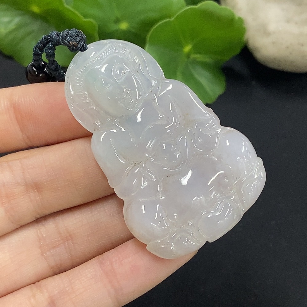 Jadeite Guanyin Pendant with Non-A Chain Total Weight Approx. 37.12g