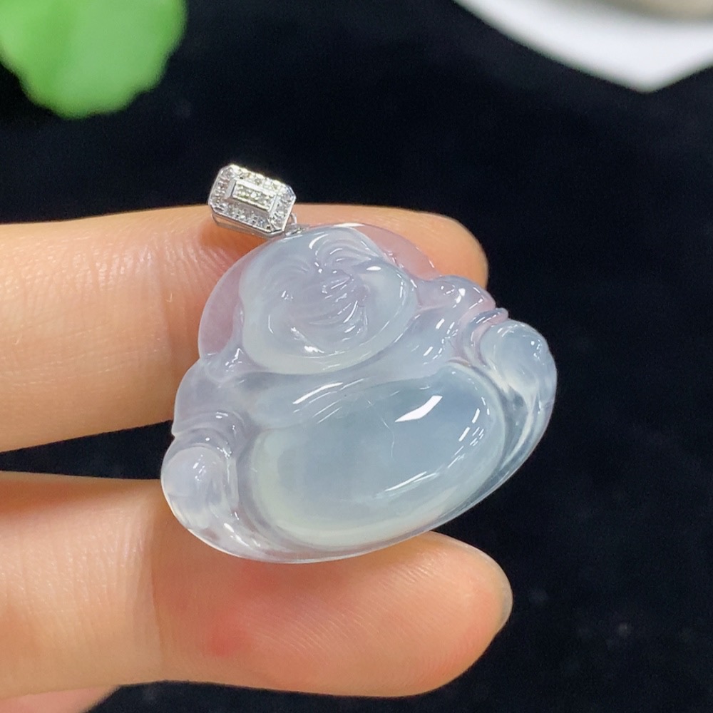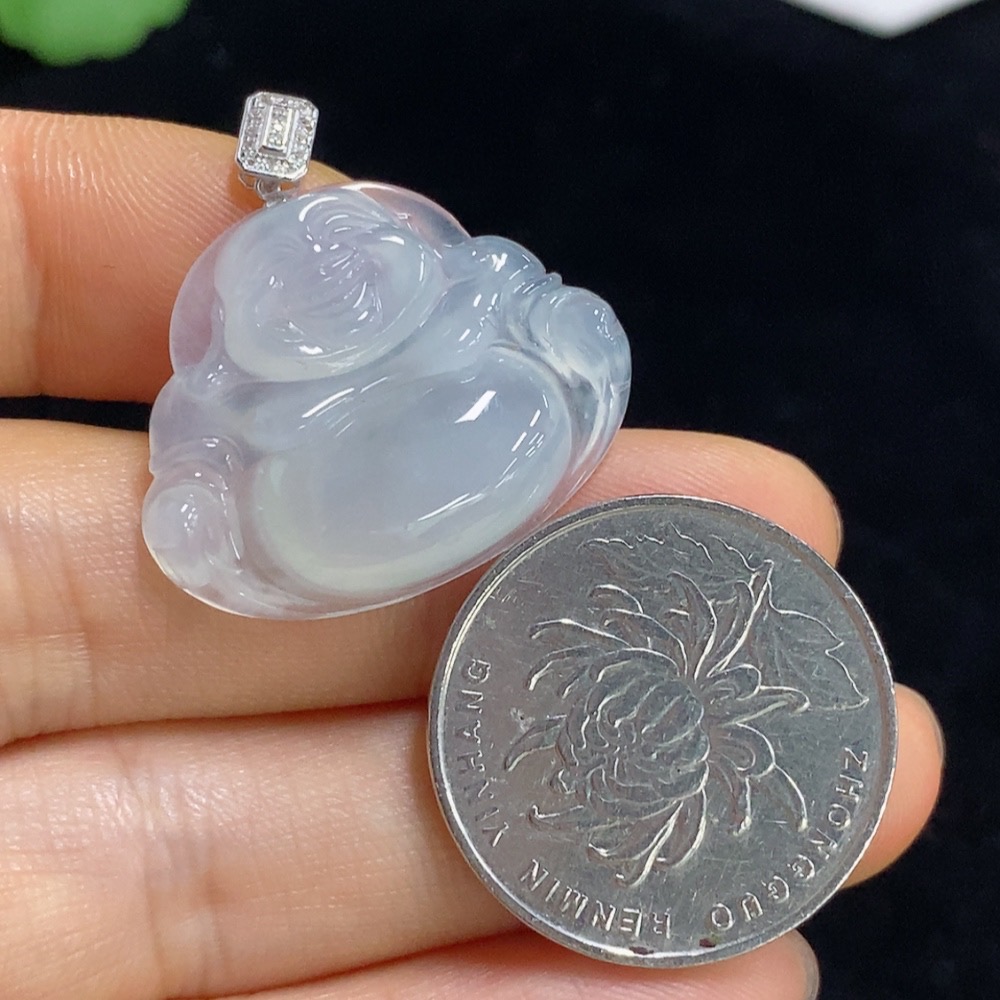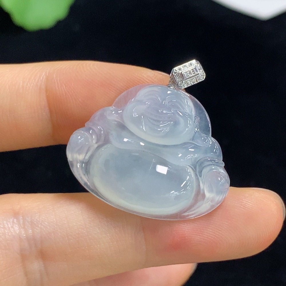 Jadeite Buddha Pendant with 18k Gold and Diamond Accents, Total Weight Approximately 5g