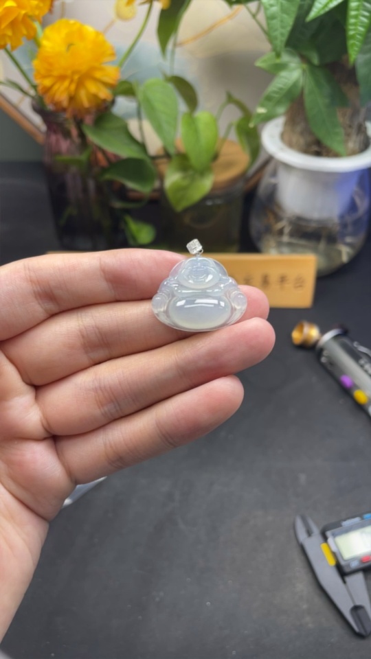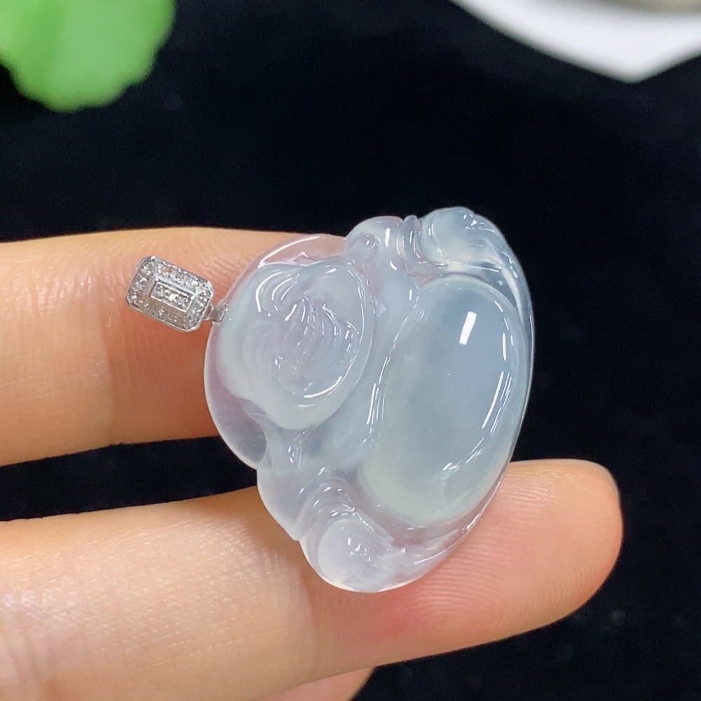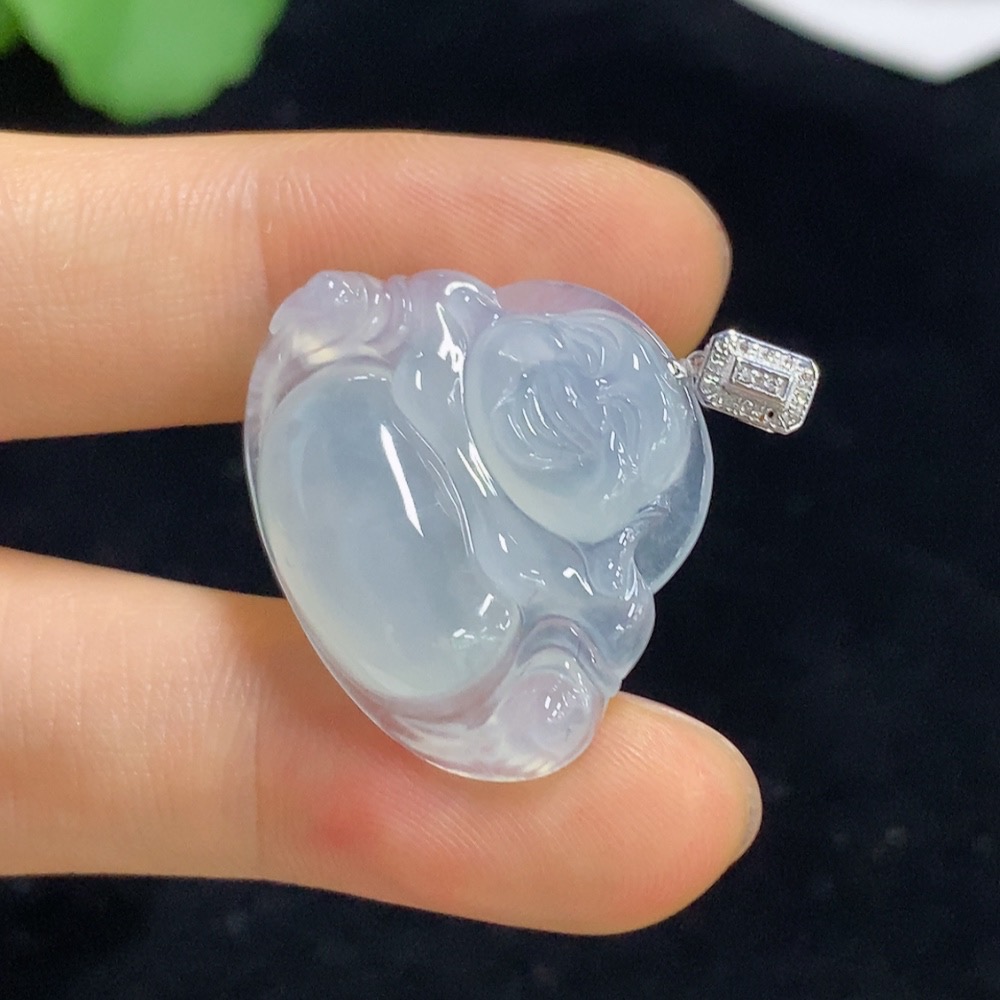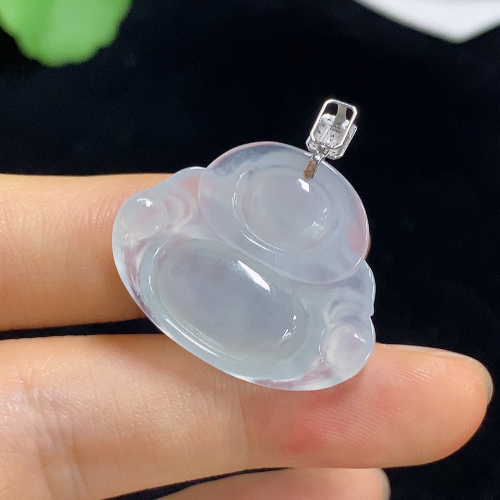 Jadeite Buddha Pendant with 18k Gold and Diamond Accents, Total Weight Approximately 5g