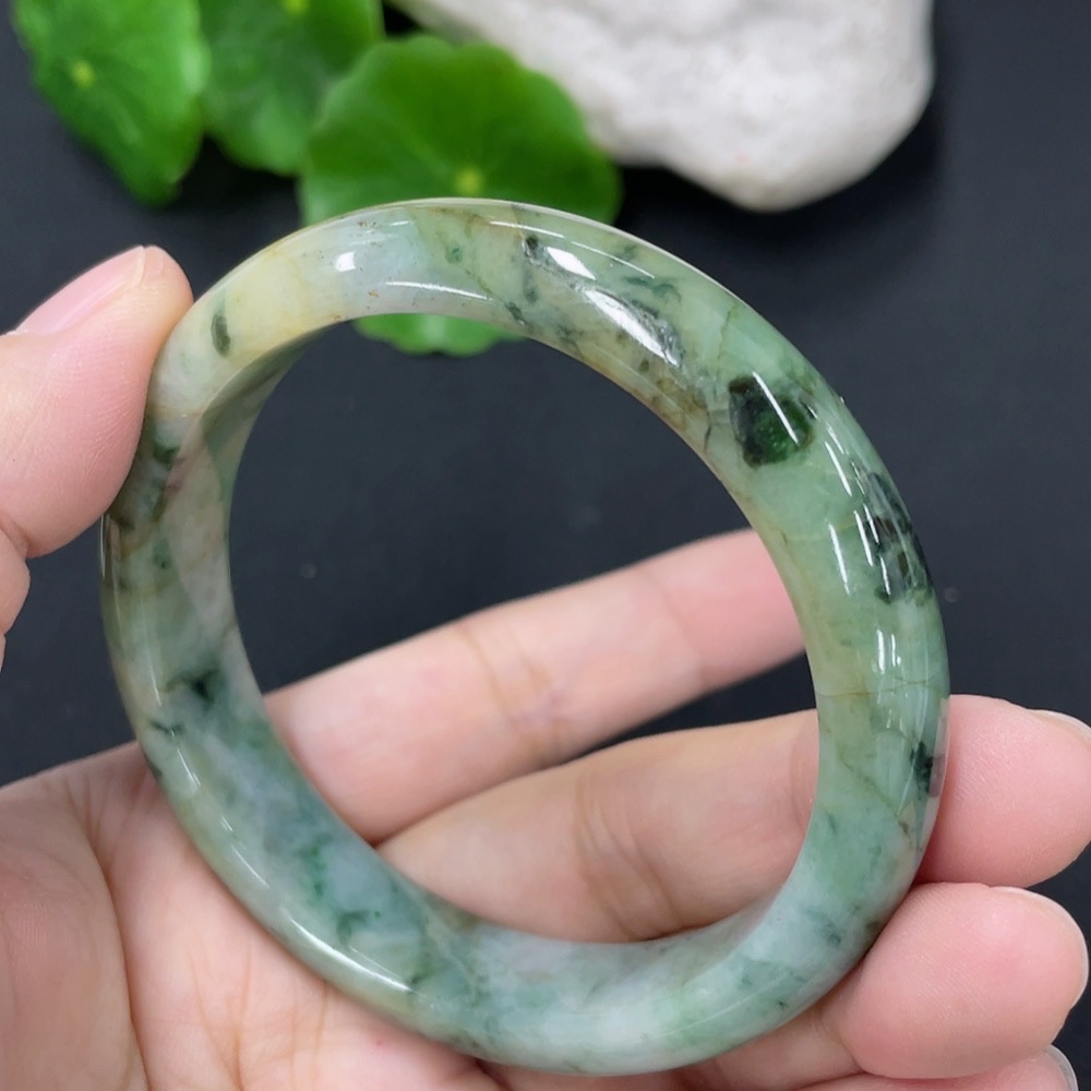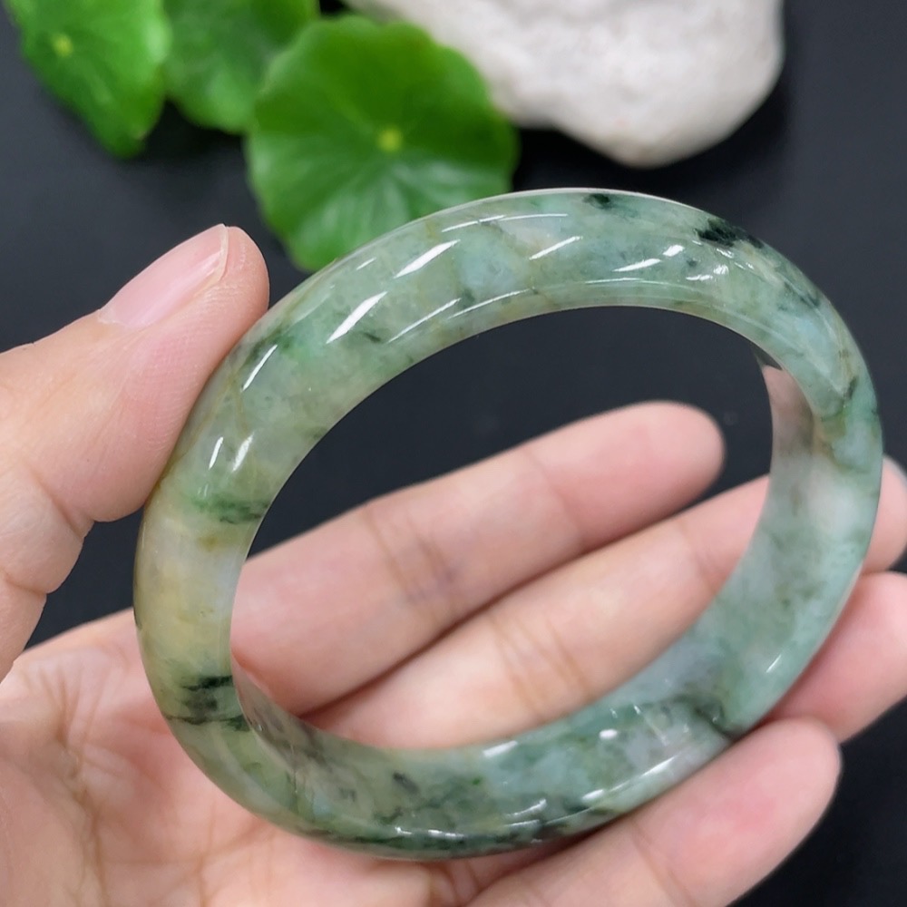 Jadeite Round Bangle Size 52.6mm Total Weight Approx. 42.15g Containing Other Mineral Components