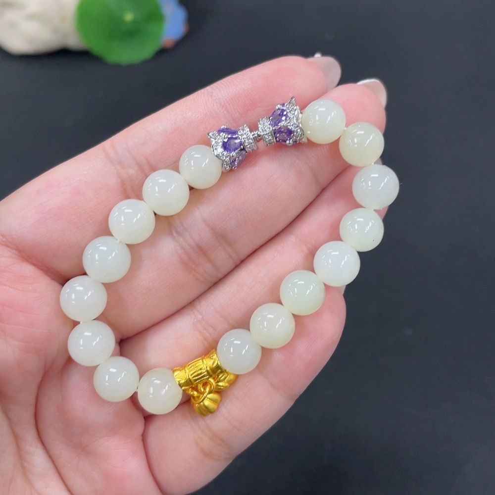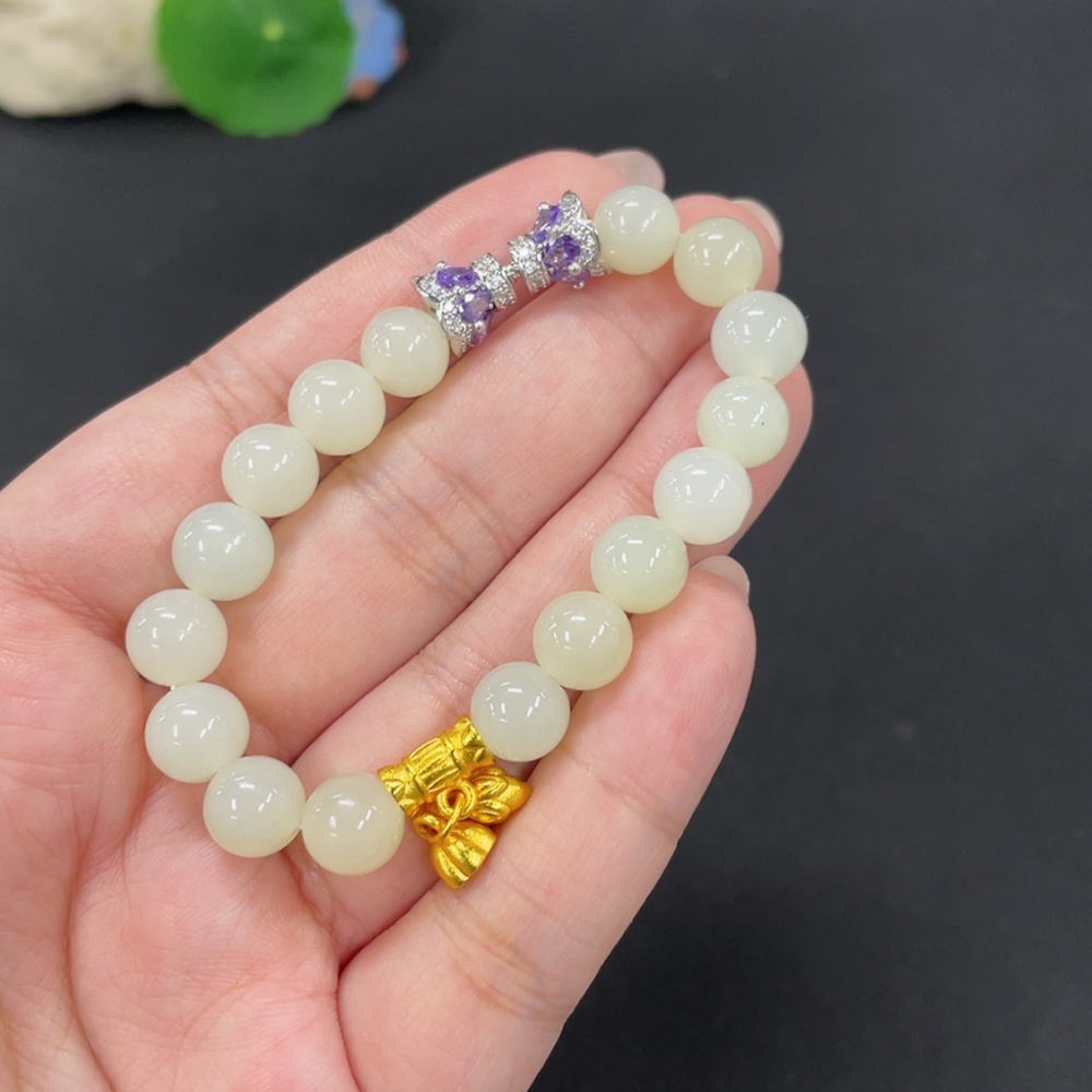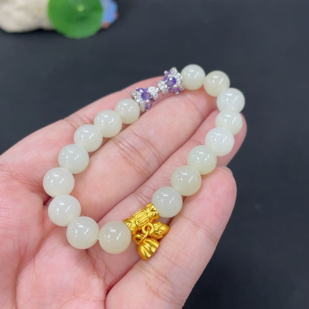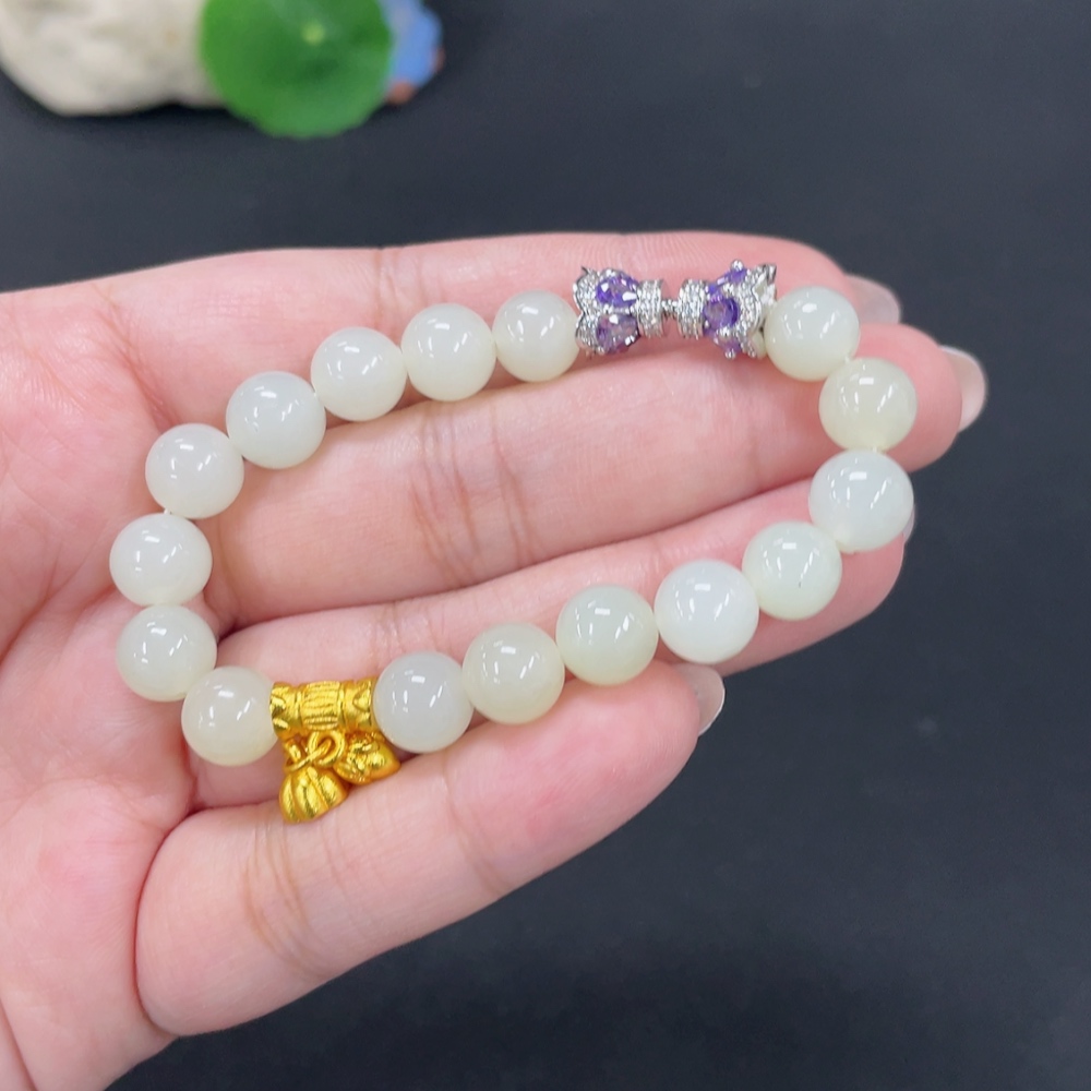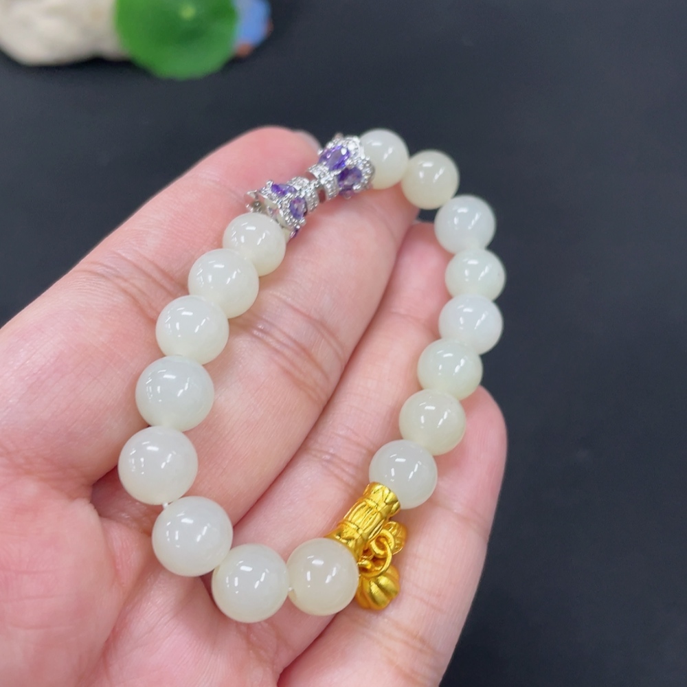 Hetian Jade Bracelet, approx. 8.3mm, total weight approx. 19.4g, non-gold