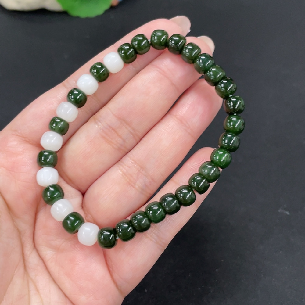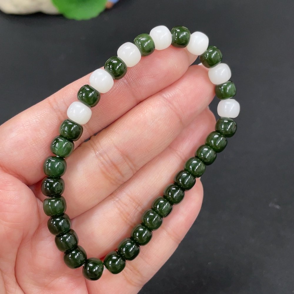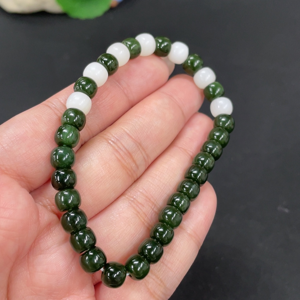 Hetian Jade Bracelet, approx. 6.9mm, total weight approx. 17.9g, white beads not Hetian Jade