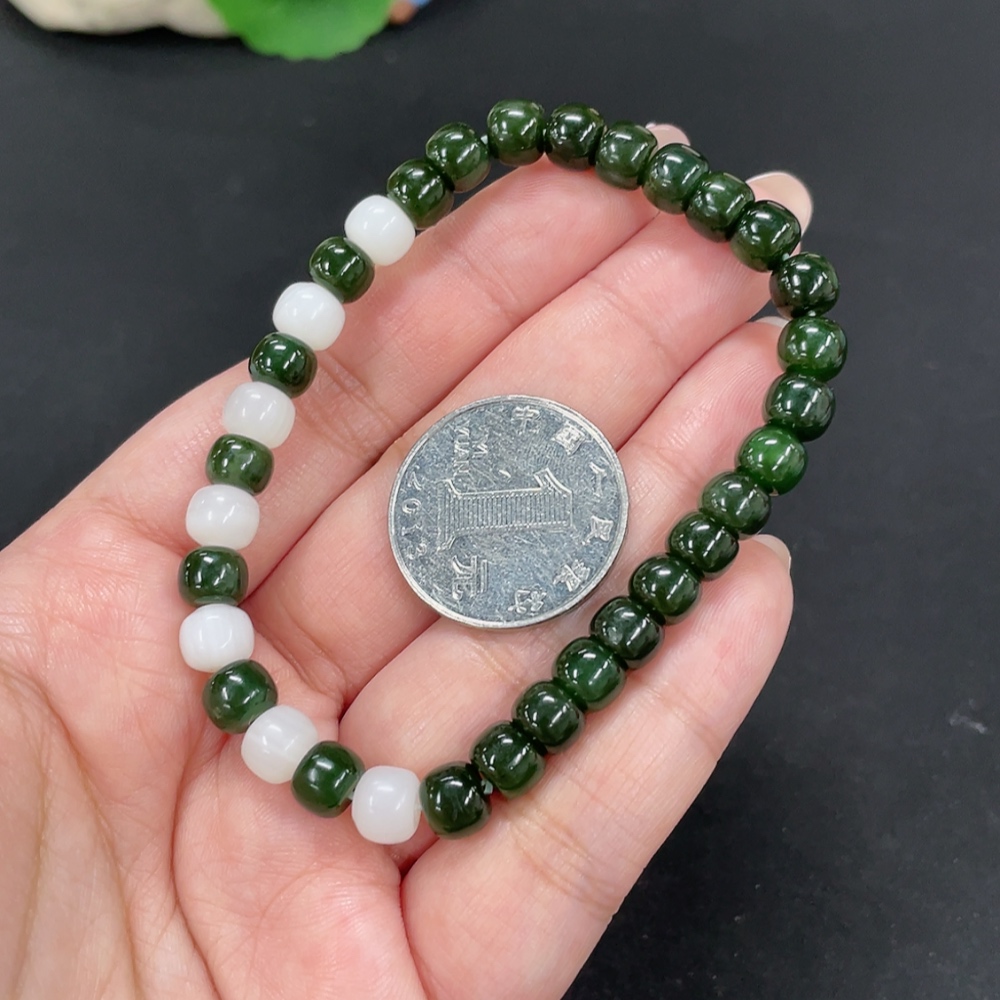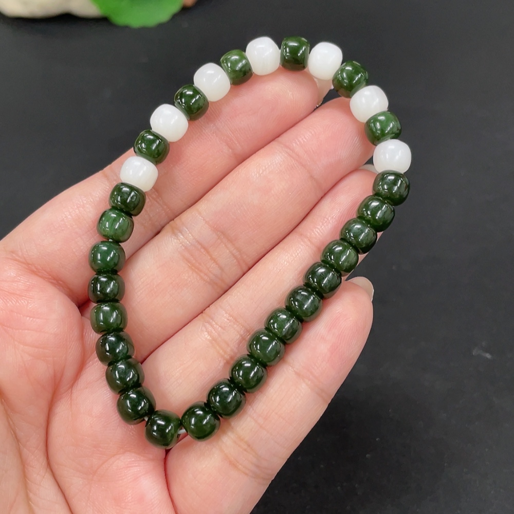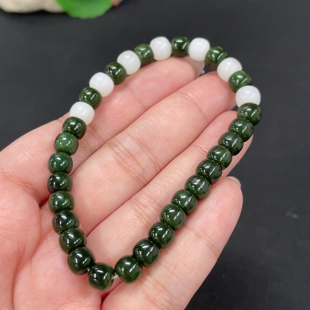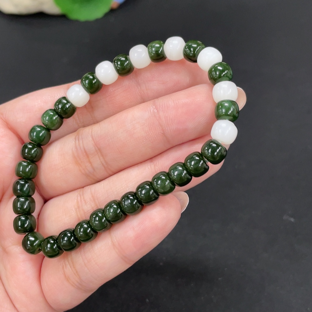 Hetian Jade Bracelet, approx. 6.9mm, total weight approx. 17.9g, white beads not Hetian Jade