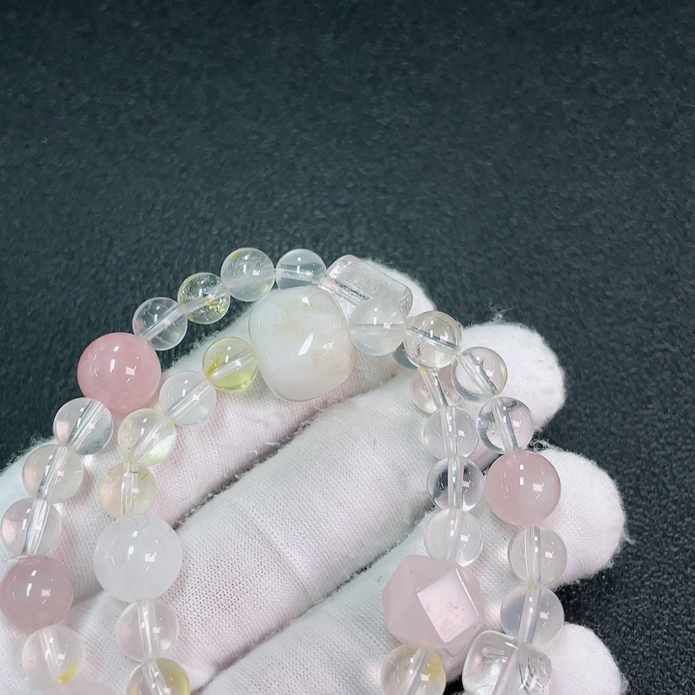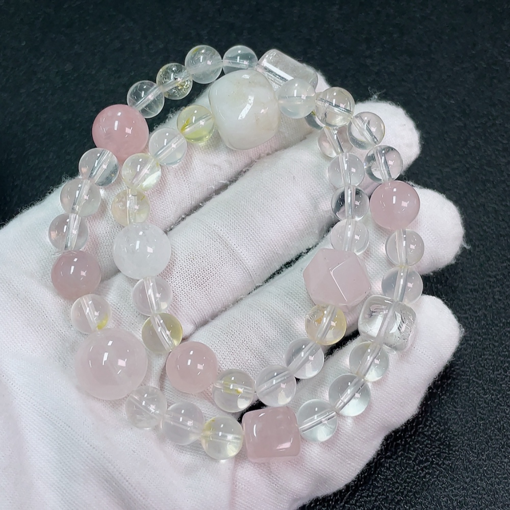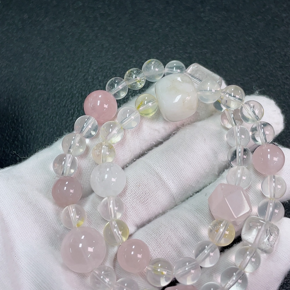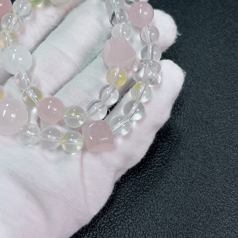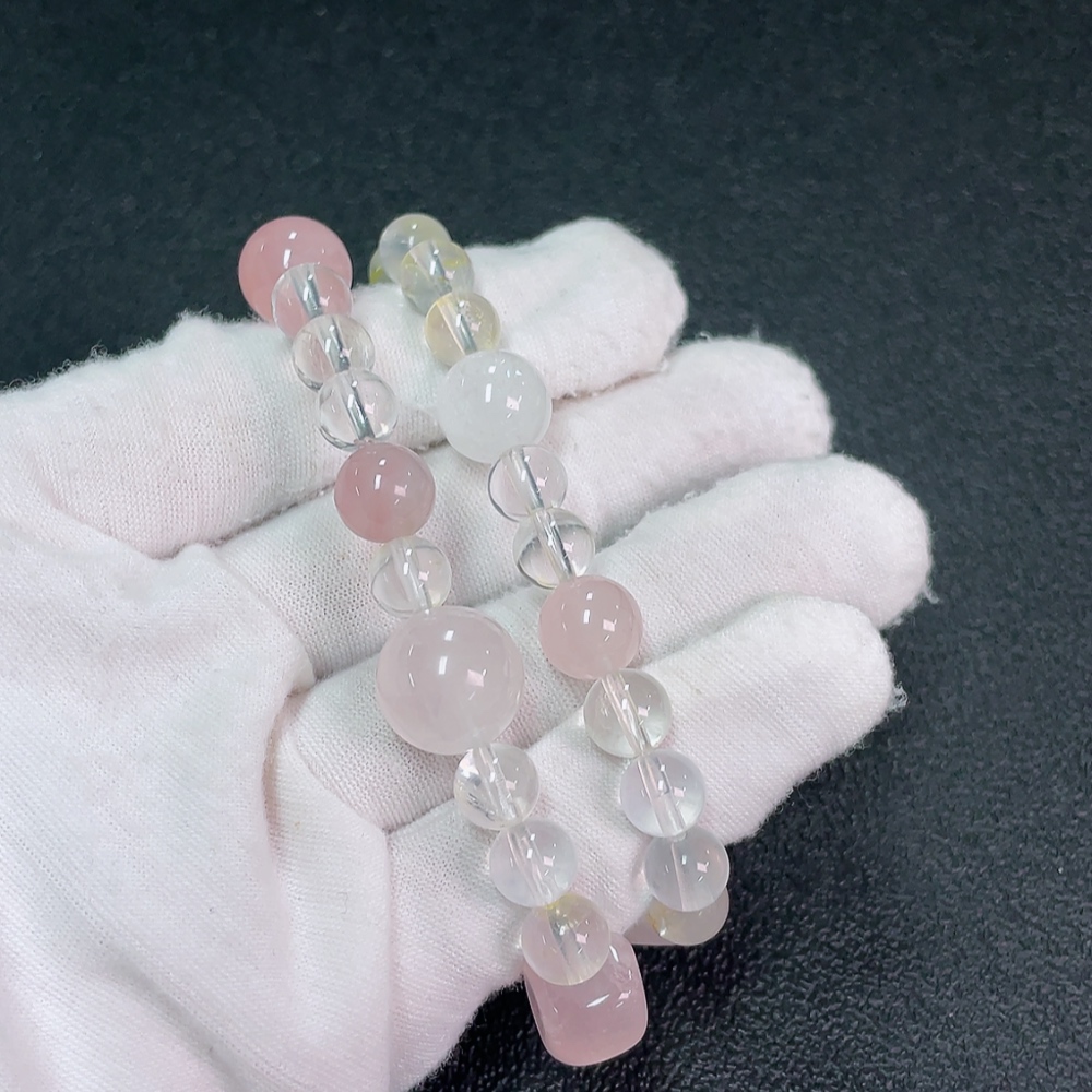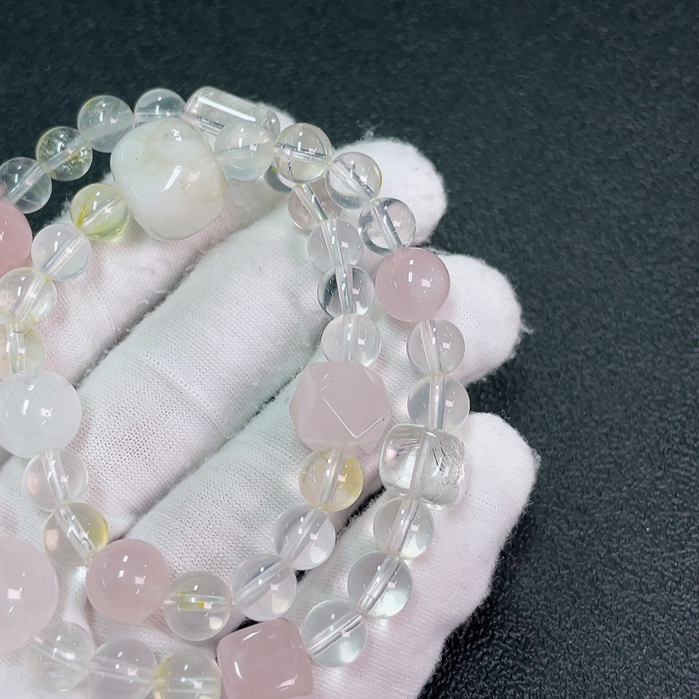 Crystal Bead Strand with Visible Organic Matter, White Accent Stones Possibly Non-Natural, Total Weight Approx. 45.09g, Size Range 7.2-12.9mm