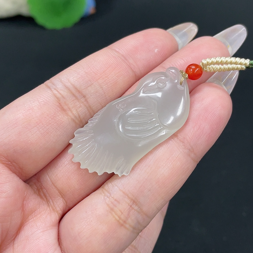 Hetian Jade Pendant "Abundance Every Year" with a total product weight of approximately 9.6g (including rope), accessory beads not made of Hetian Jade