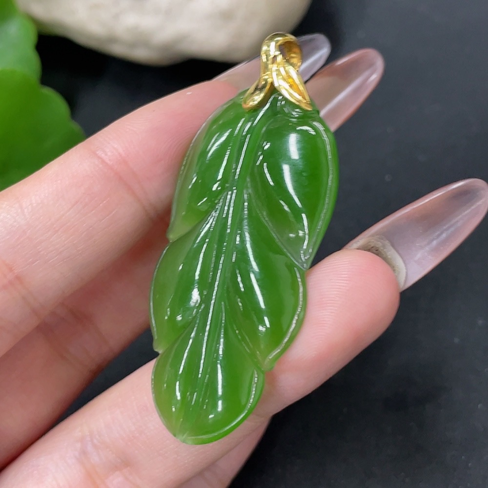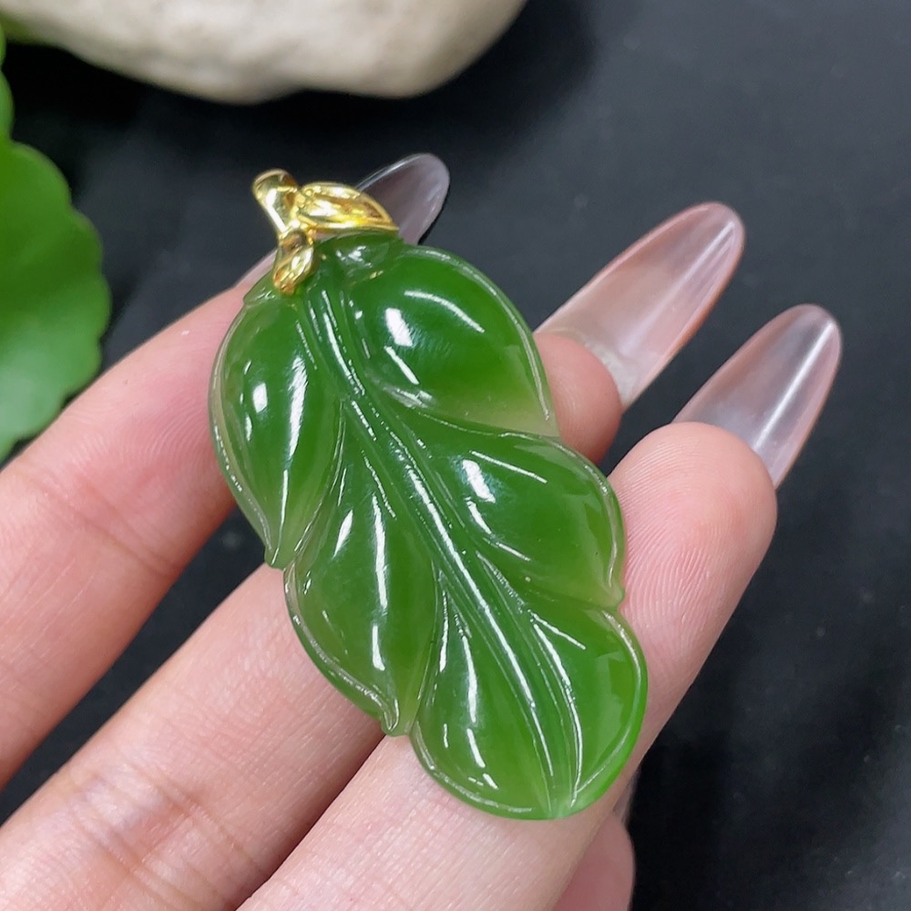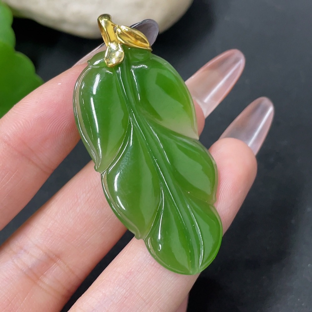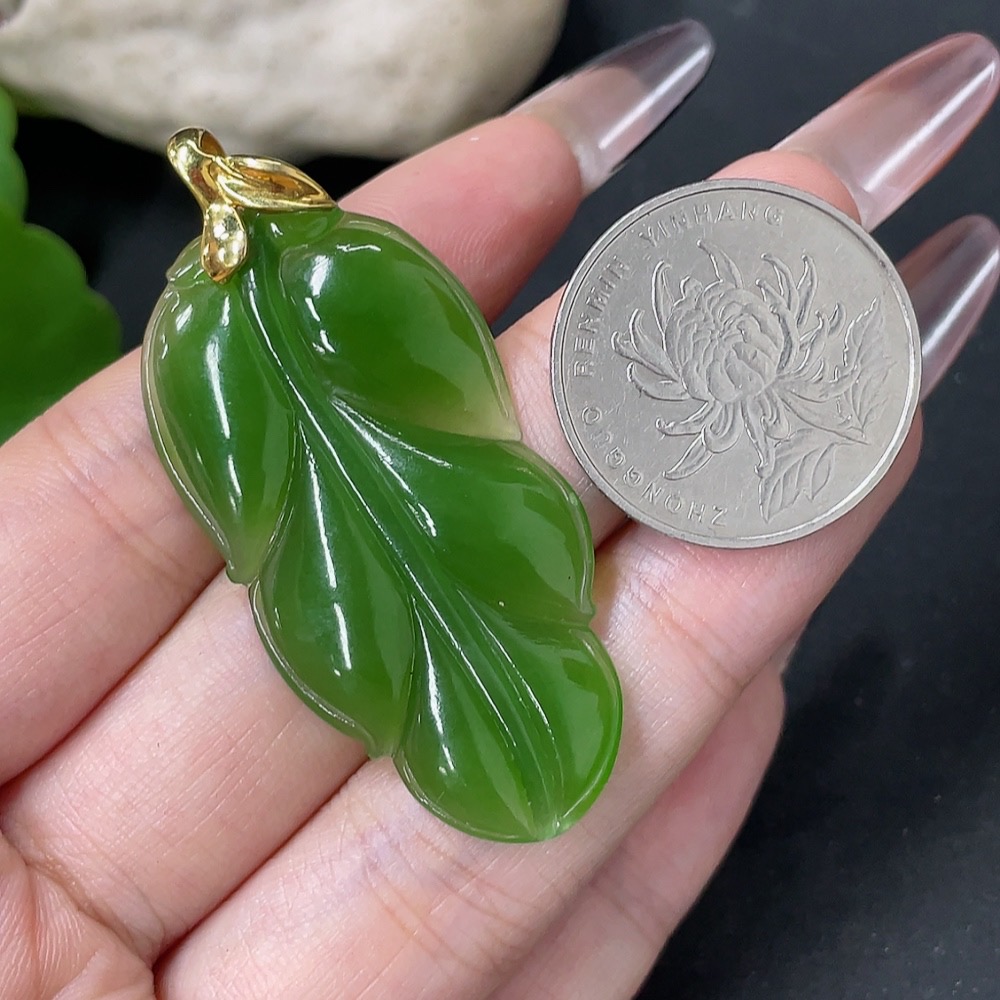 Hetian Jade Jasper Pendant Leaf 18k Gold Total Weight Approx. 8.7g