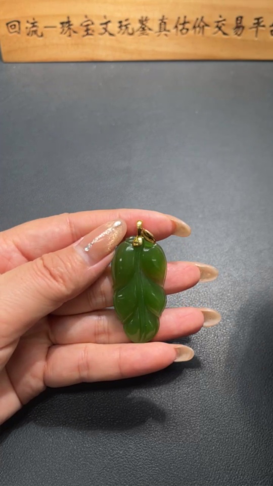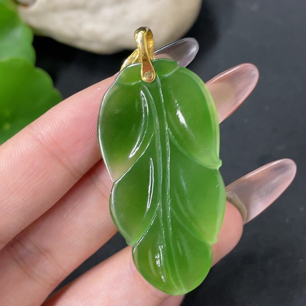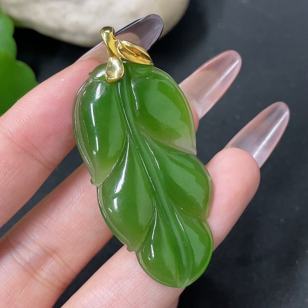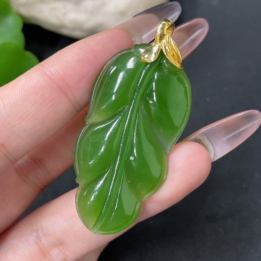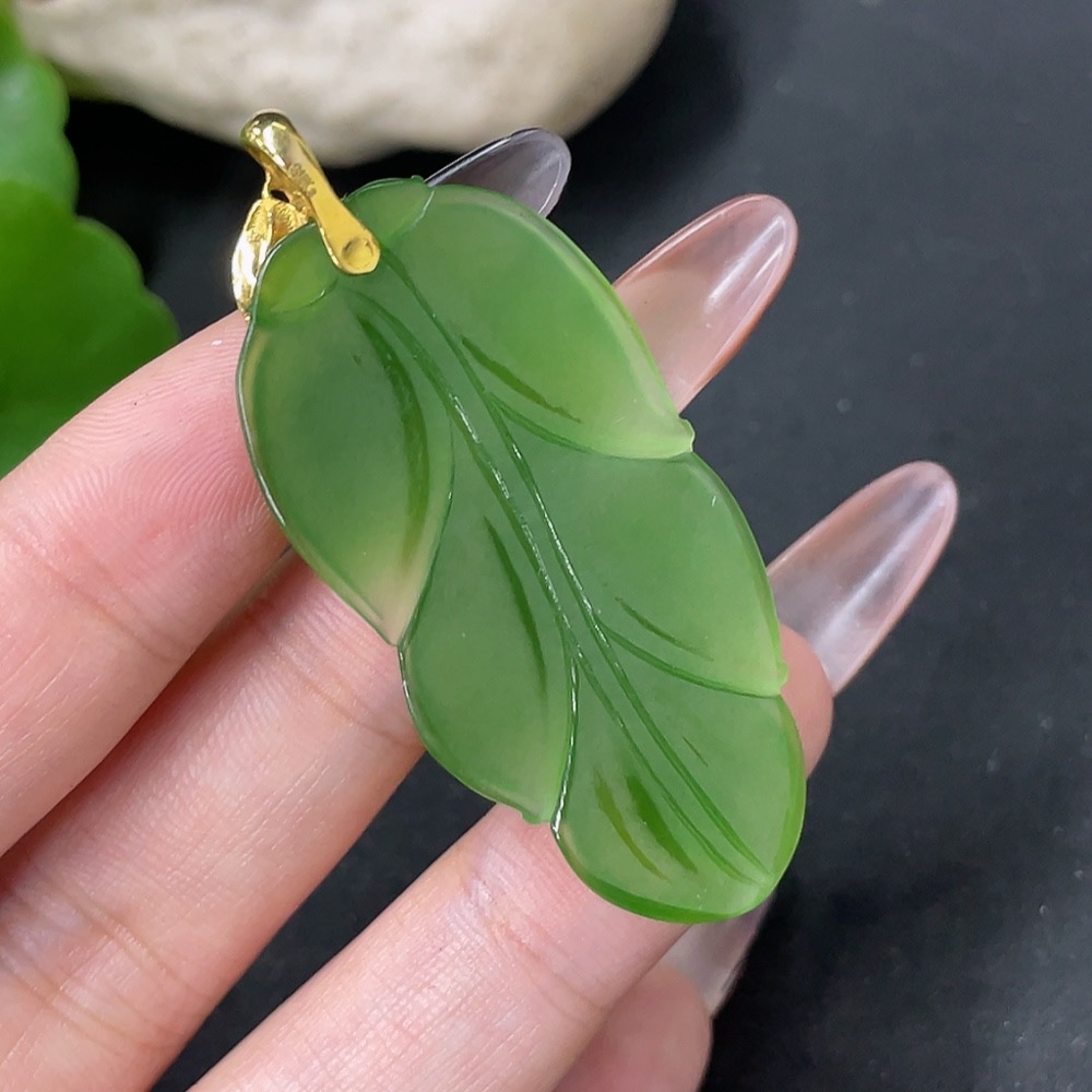 Hetian Jade Jasper Pendant Leaf 18k Gold Total Weight Approx. 8.7g