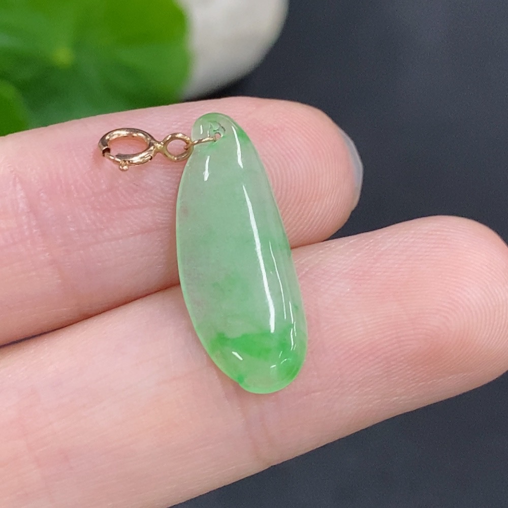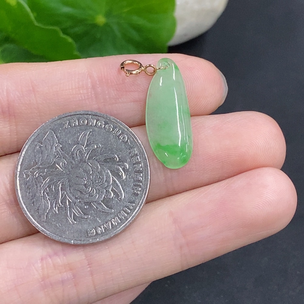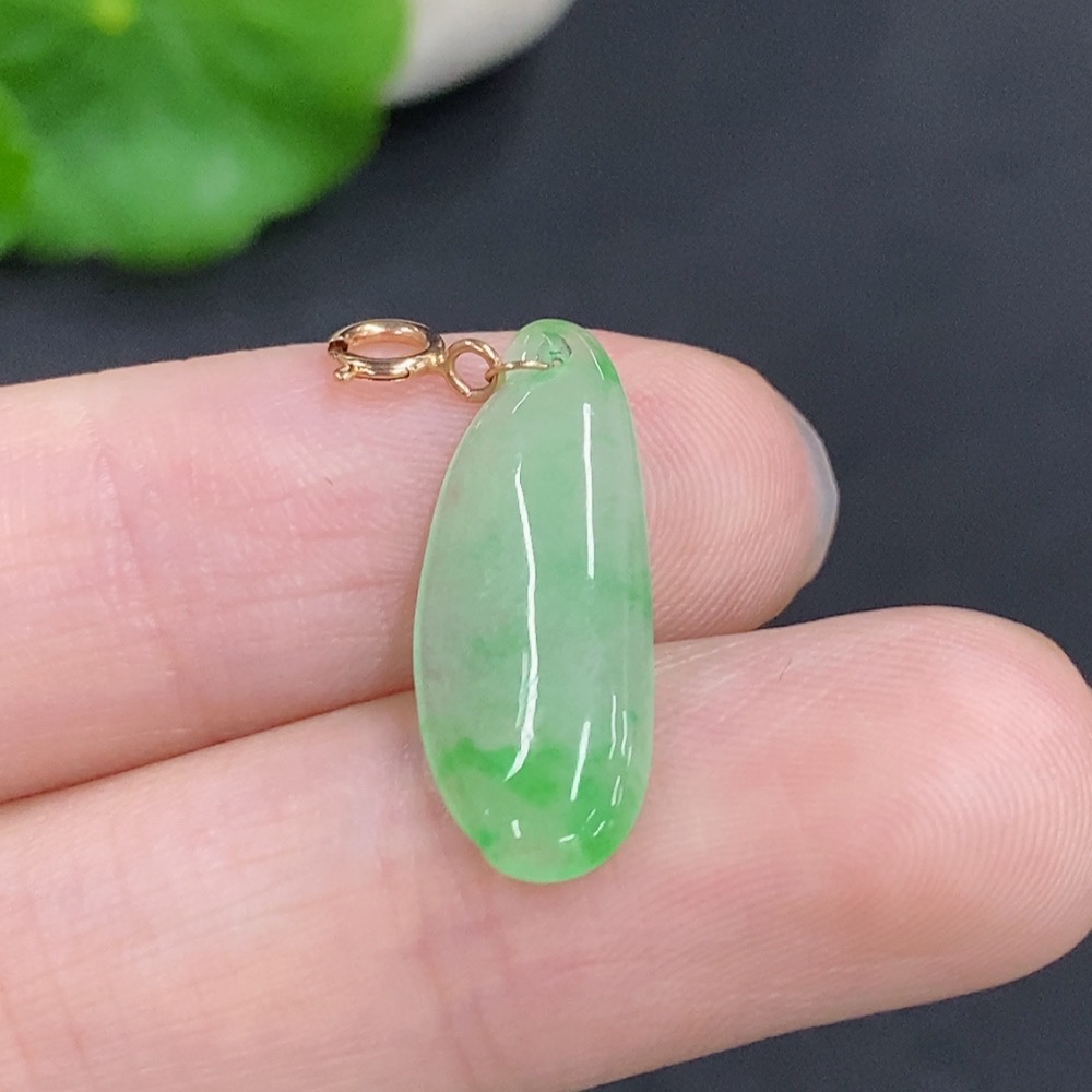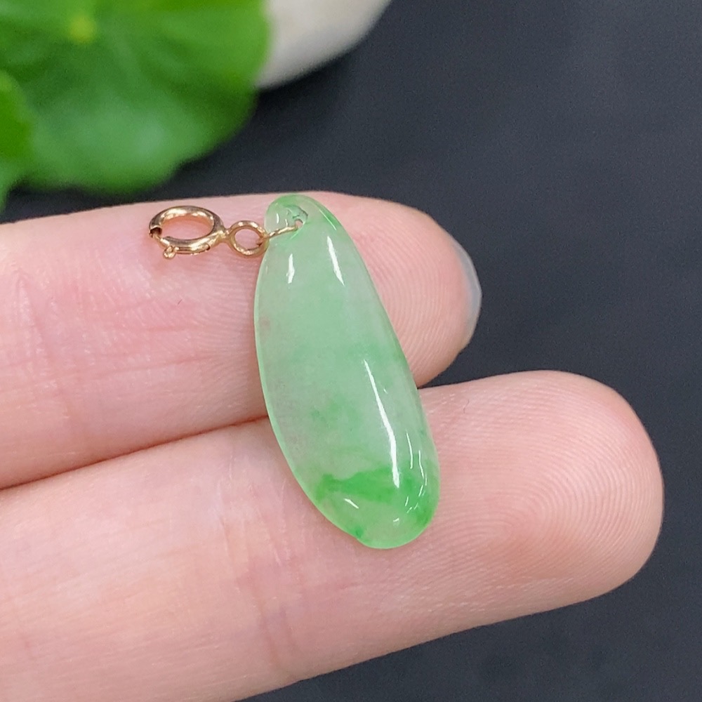 Jadeite Blessing Melon Pendant with 18k Gold Clasp, Total Weight Approx. 0.7g