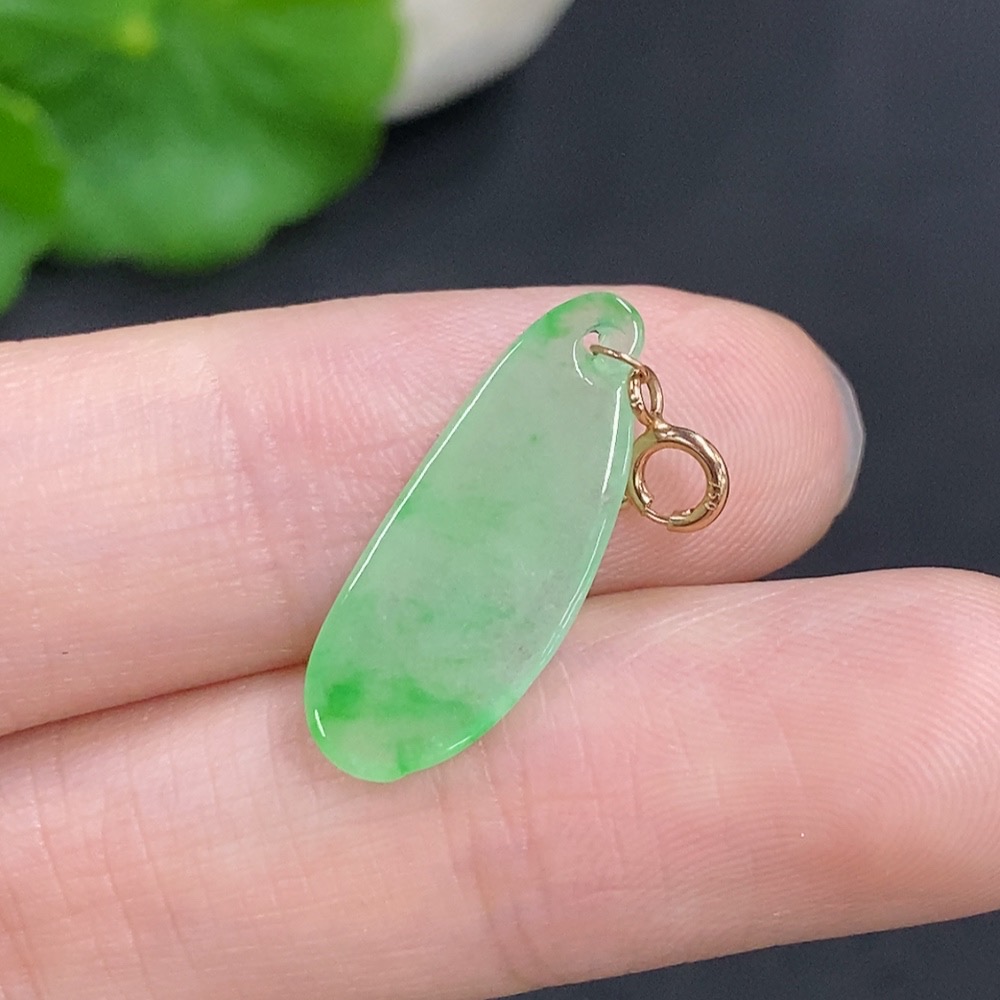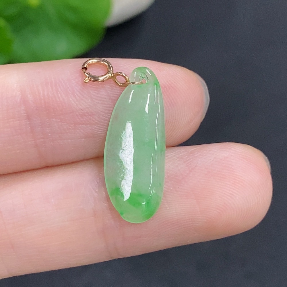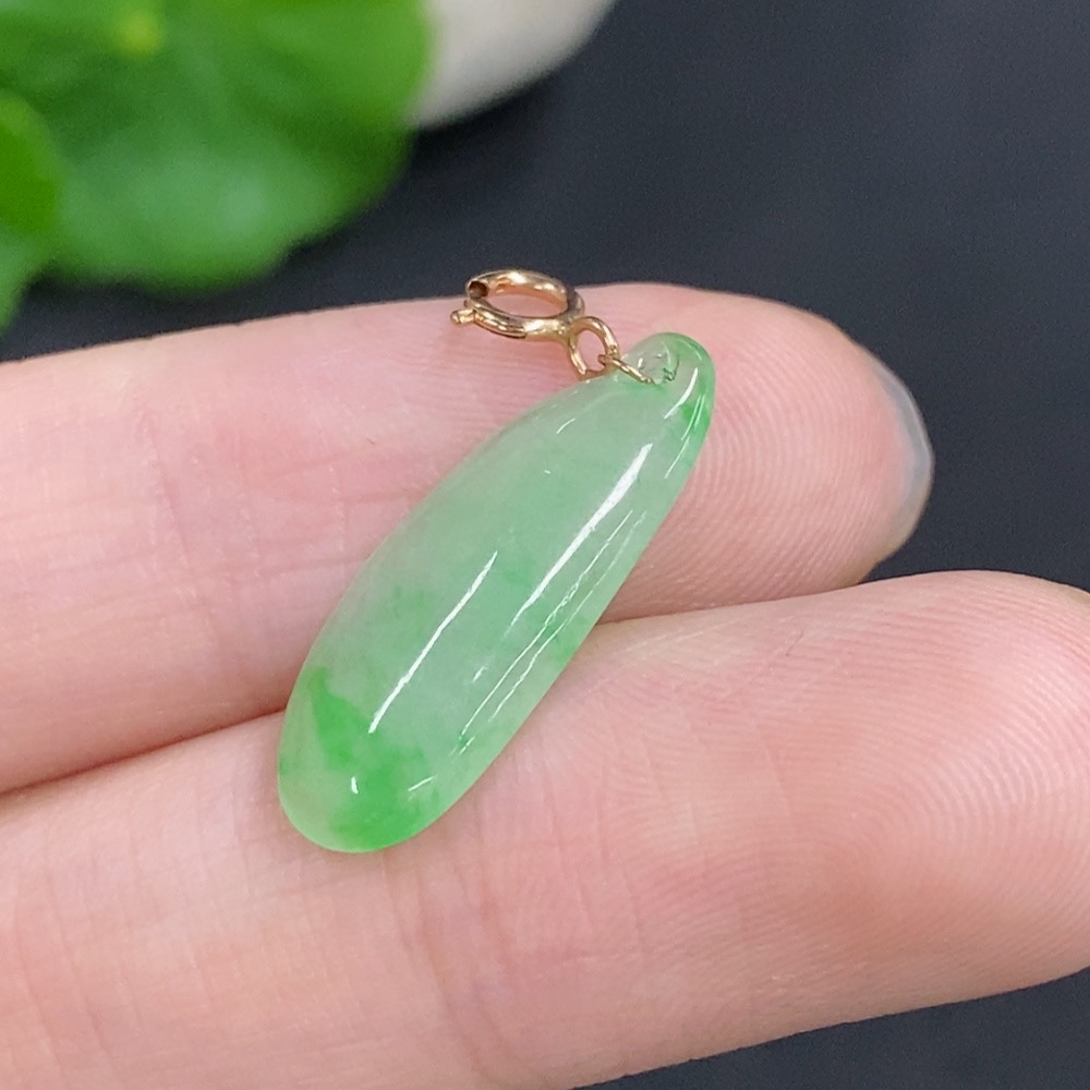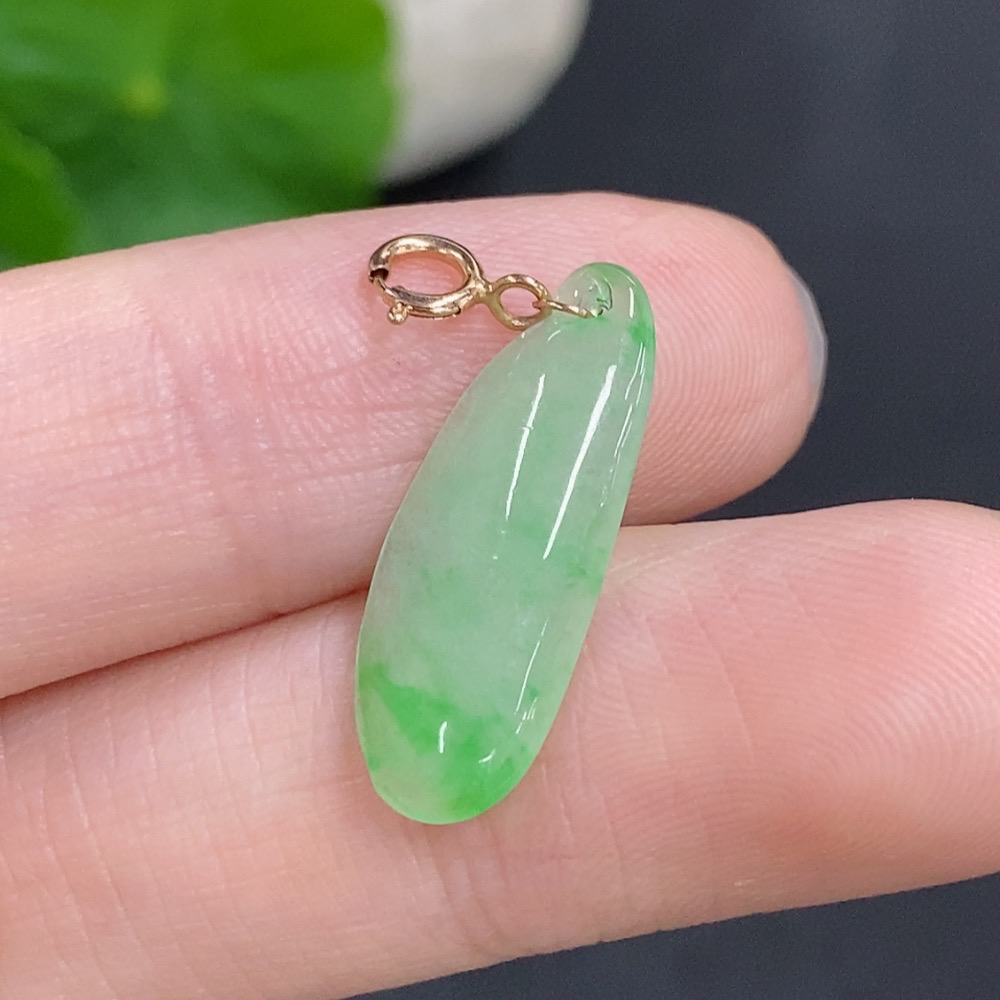 Jadeite Blessing Melon Pendant with 18k Gold Clasp, Total Weight Approx. 0.7g