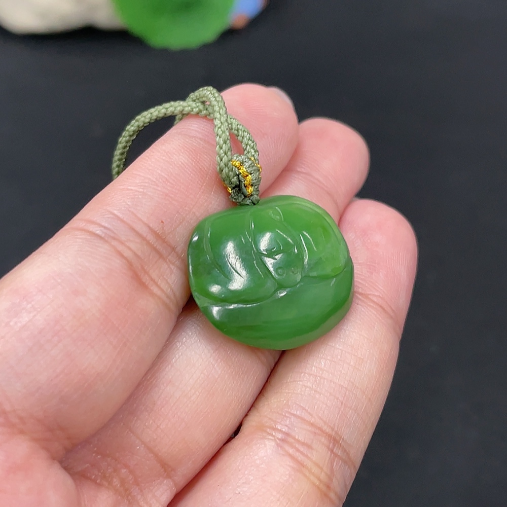 Hetian Jade Pendant "Fortune Before Your Eyes" with a total product weight of approximately 78.1g (including rope)