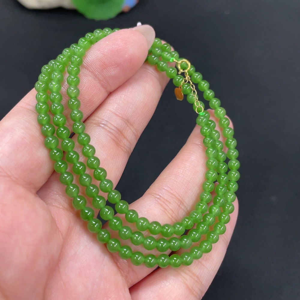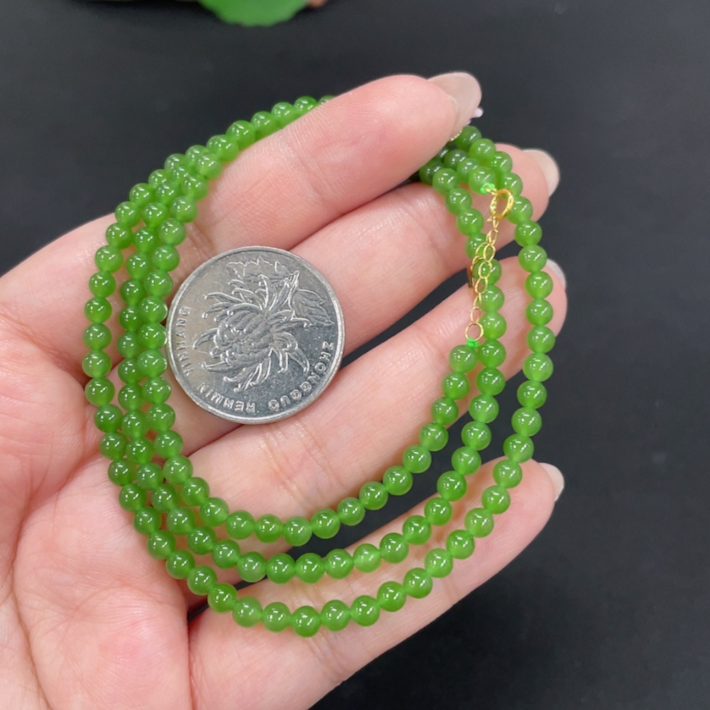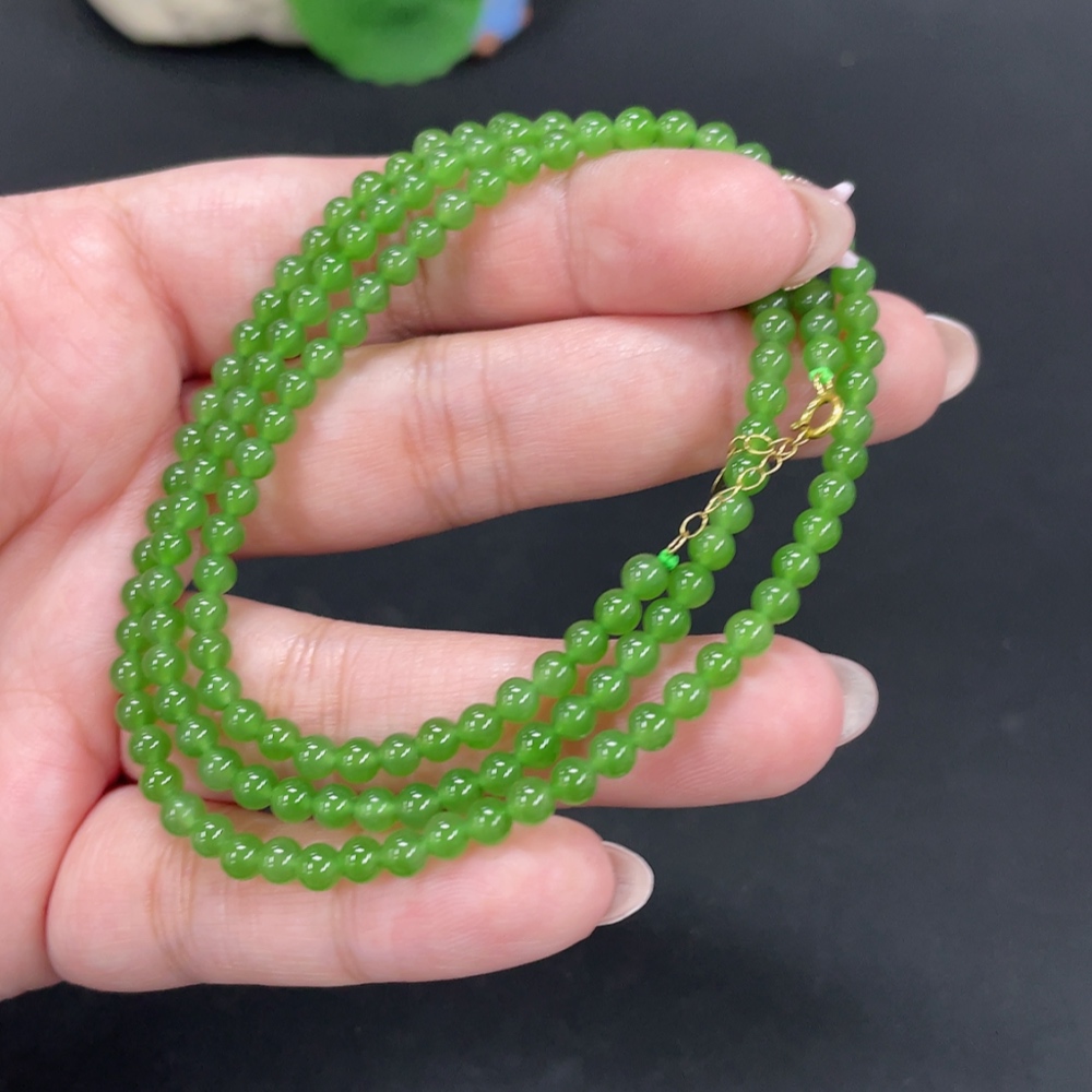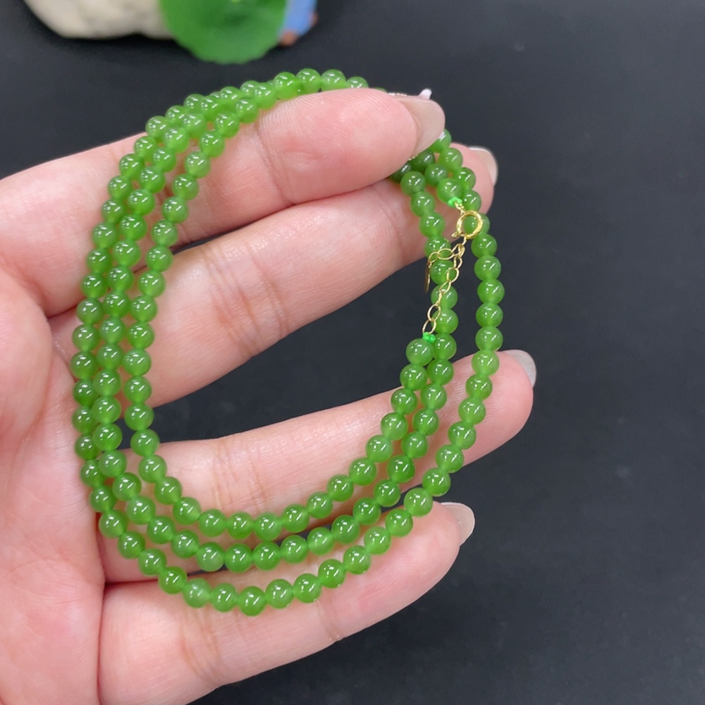 Hetian Jade Jasper Bead Necklace, approx. 3.8mm, total weight approx. 13.4g, 18k