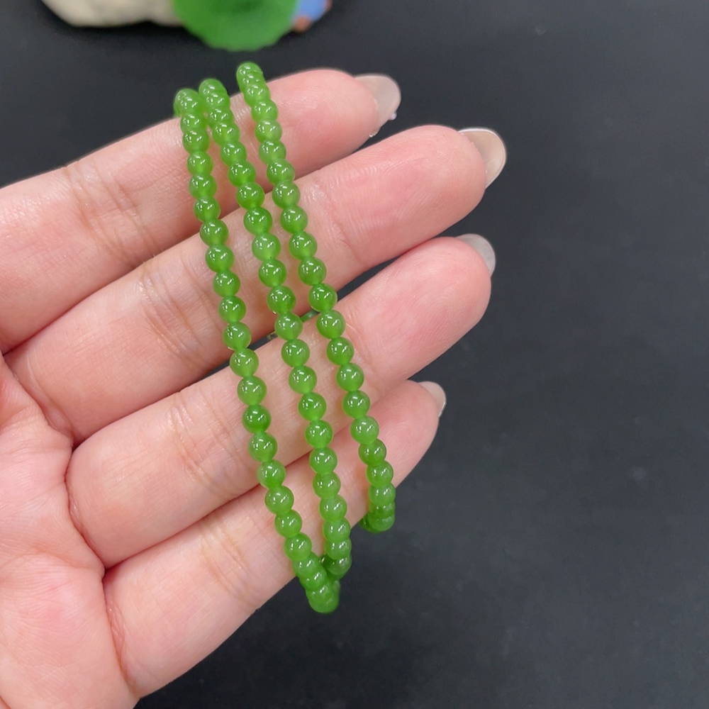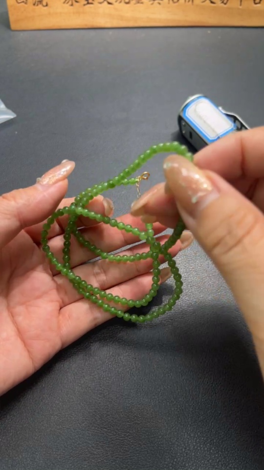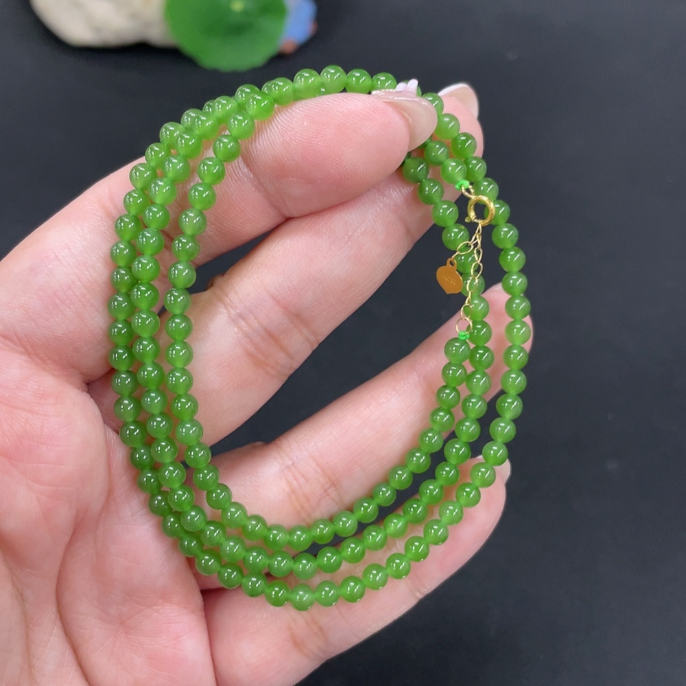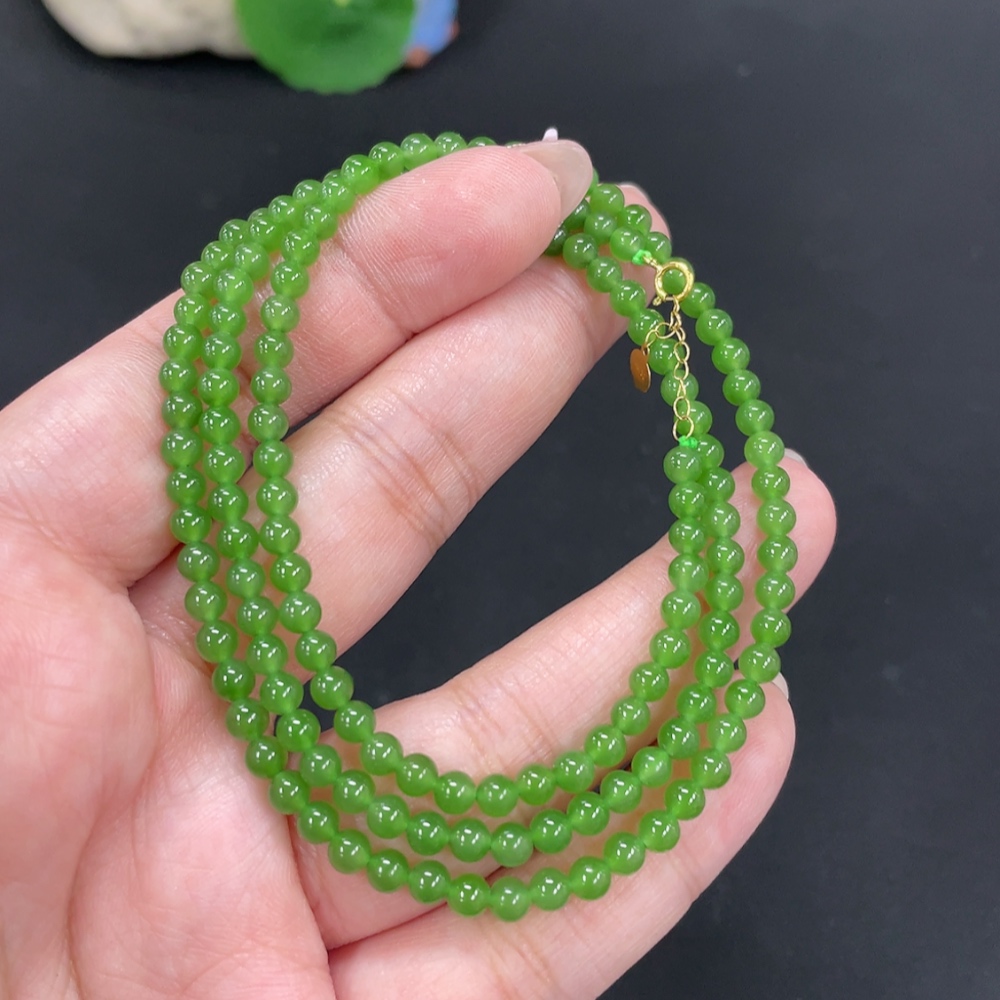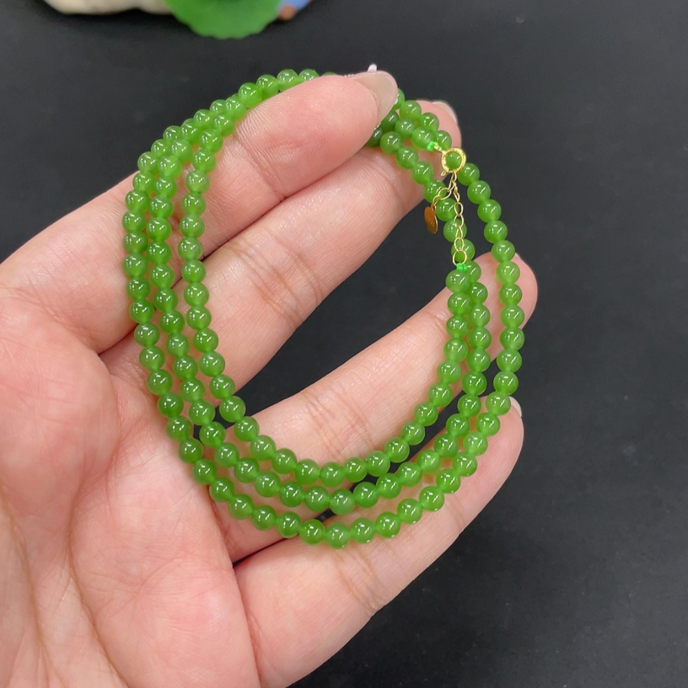 Hetian Jade Jasper Bead Necklace, approx. 3.8mm, total weight approx. 13.4g, 18k