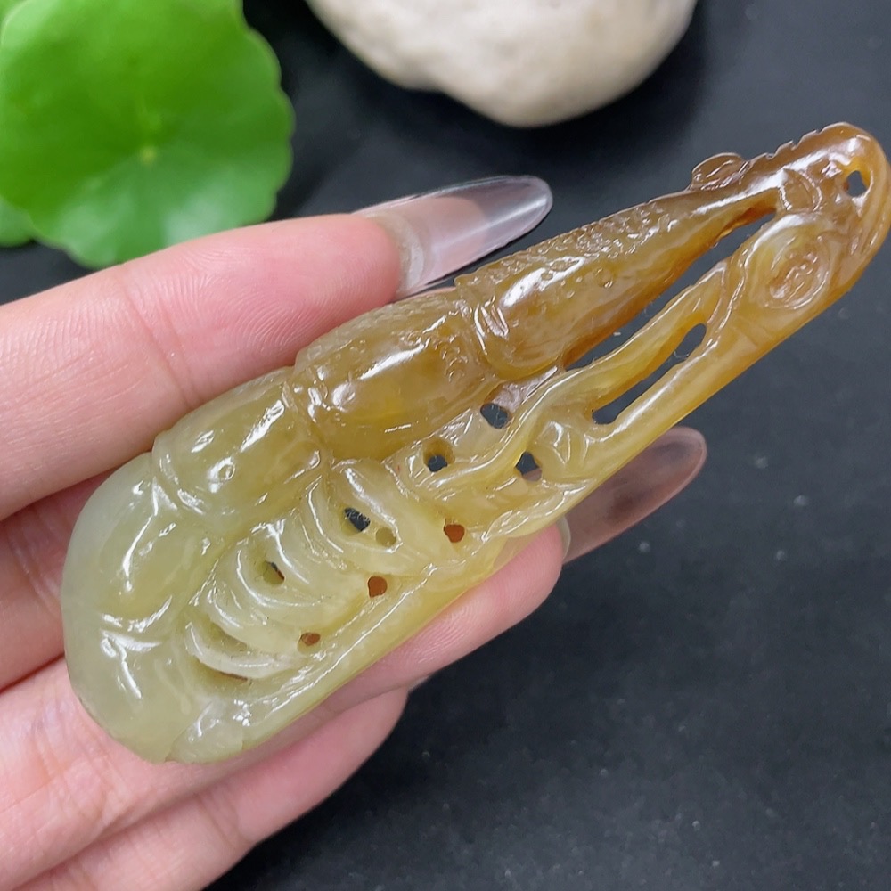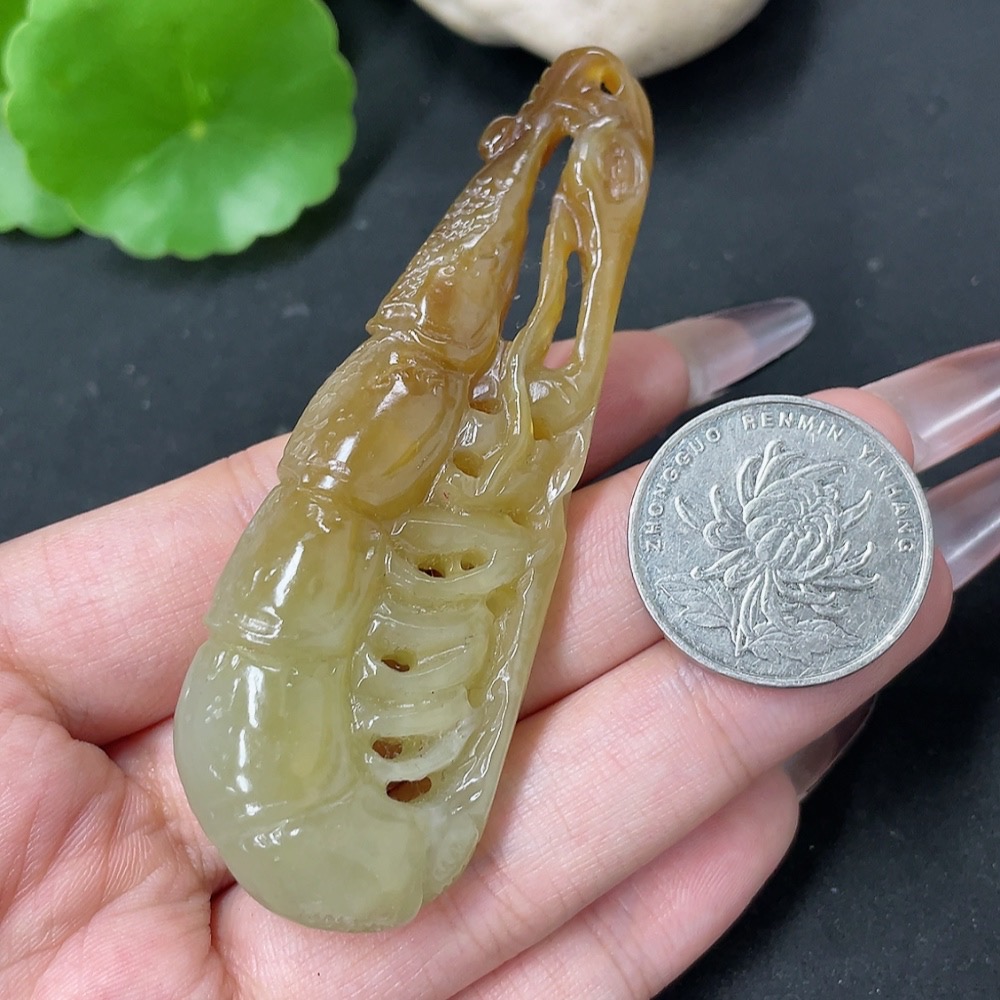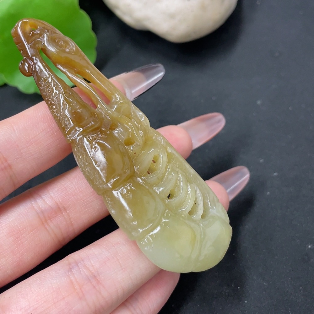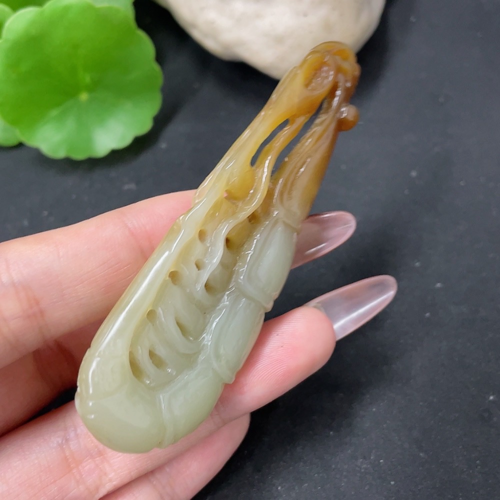 Hetian Jade Pendant Shrimp Total Weight About 27.2g