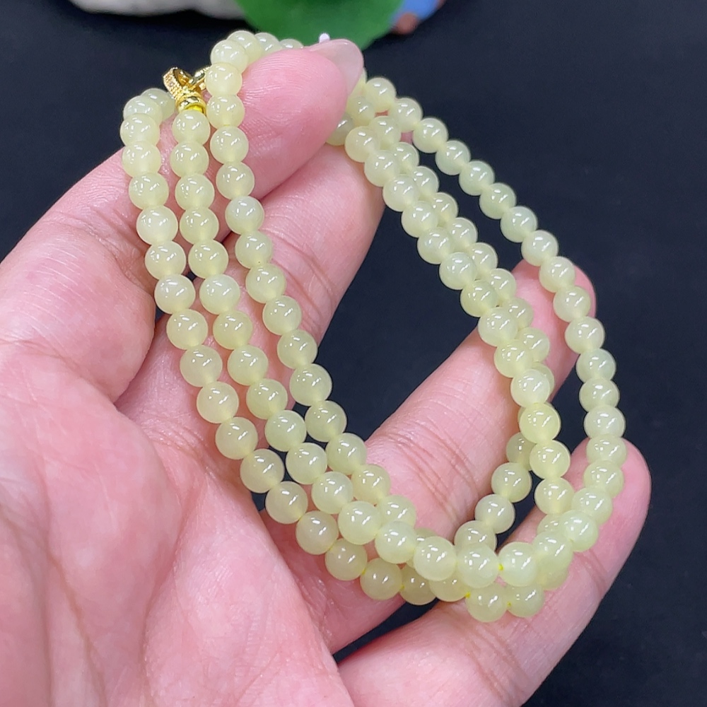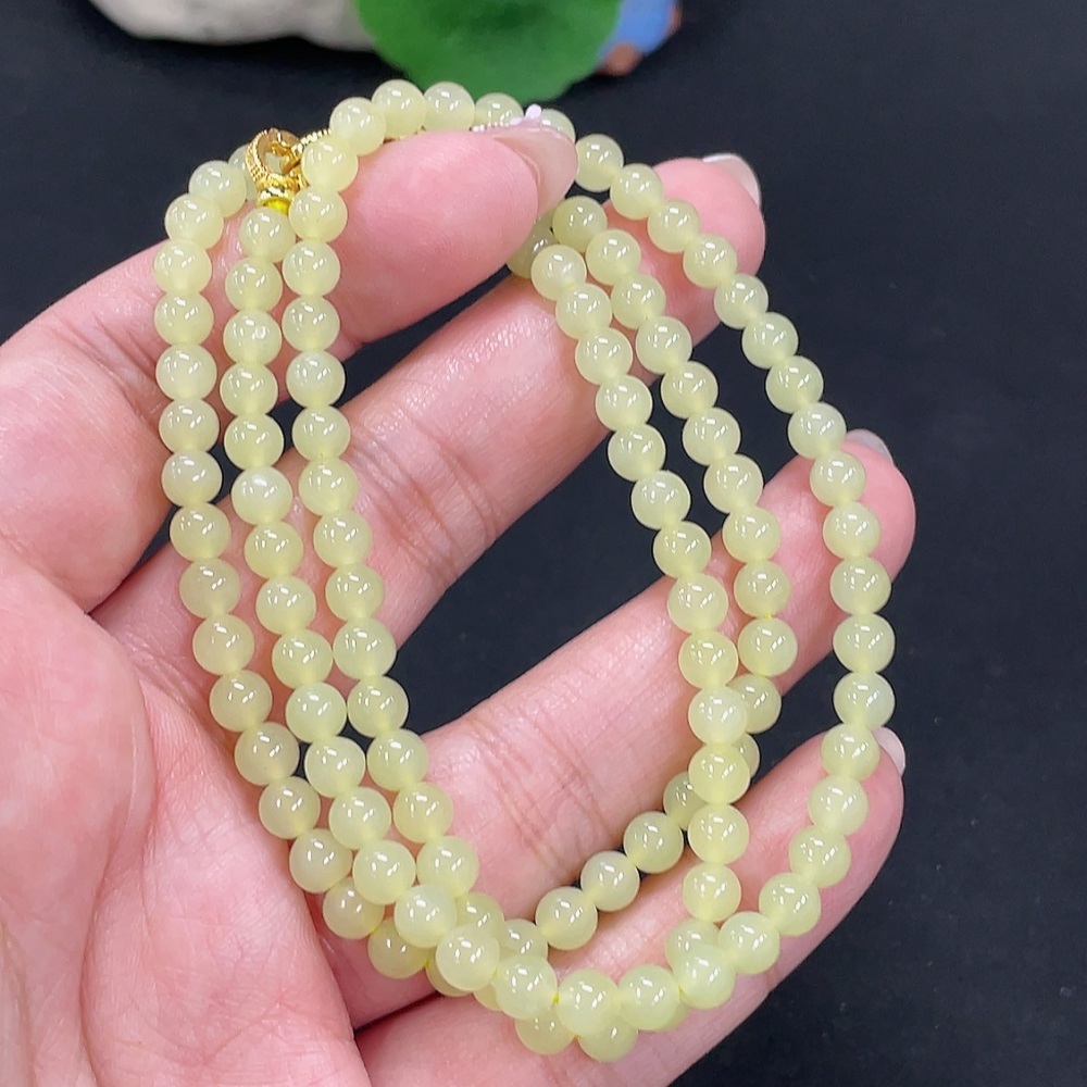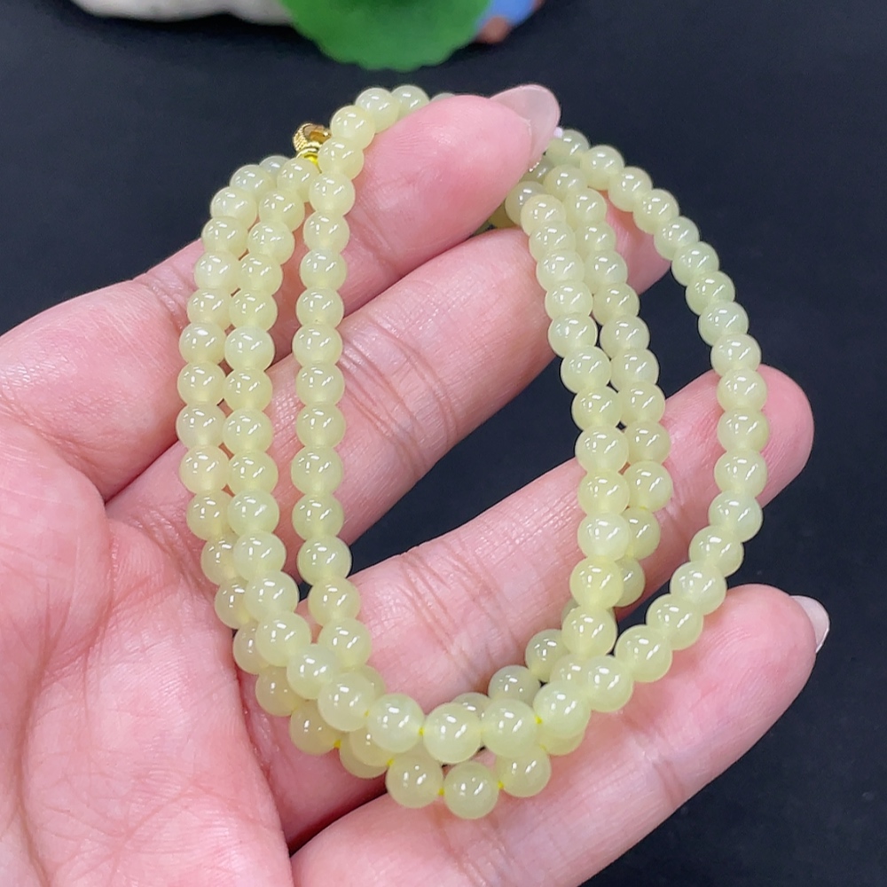 Hetian Jade Beaded Necklace Approx. 4.8mm Non-Gold Total Weight Approx. 22.9g