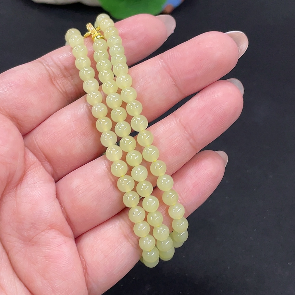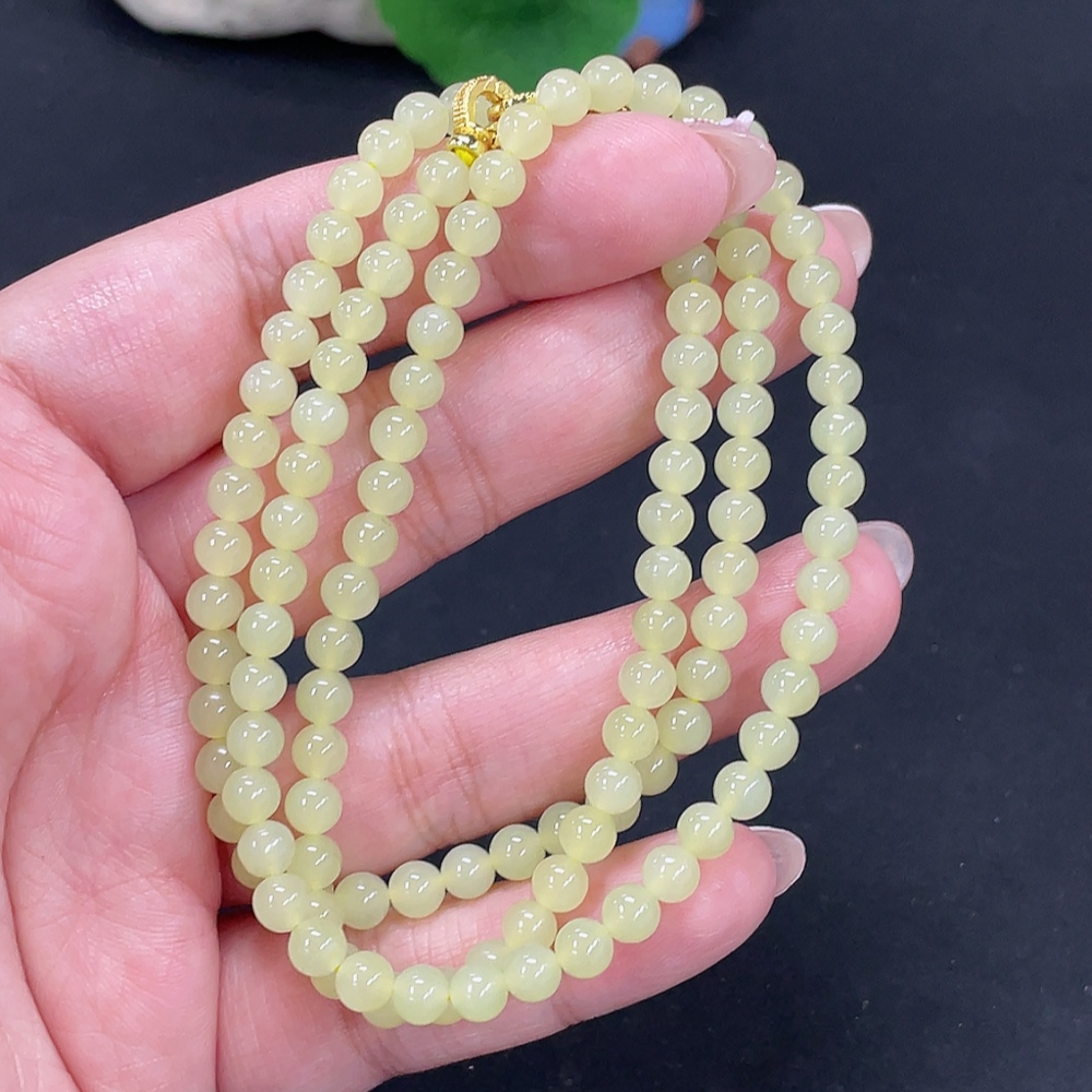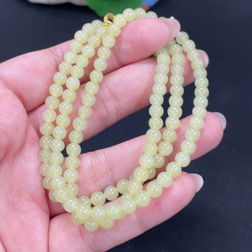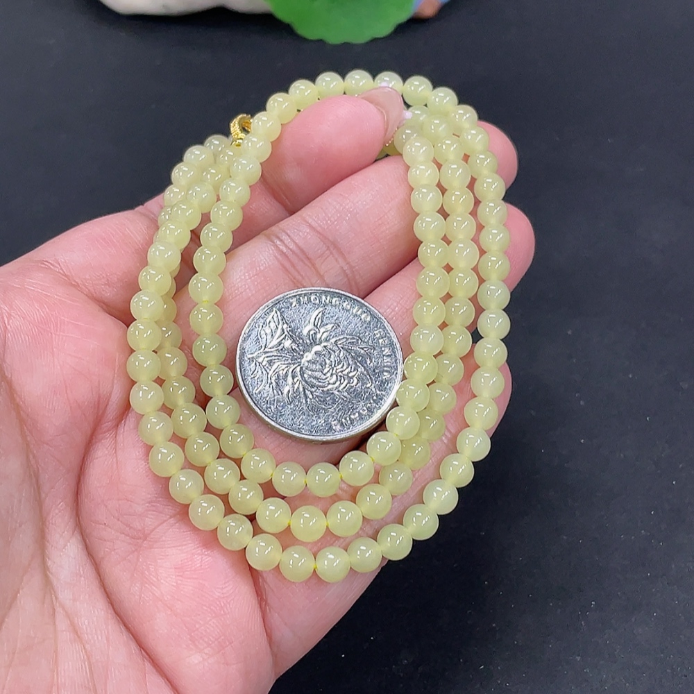 Hetian Jade Beaded Necklace Approx. 4.8mm Non-Gold Total Weight Approx. 22.9g