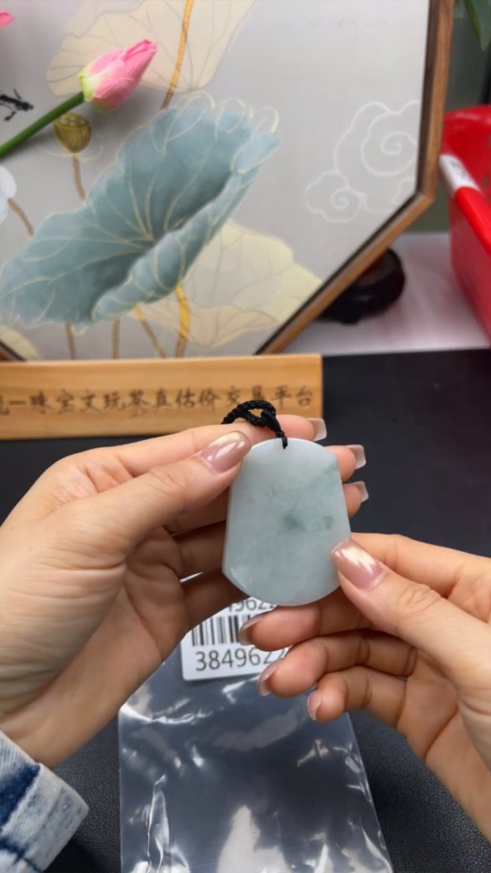 Jadeite Pendant Plain Pendant with Rope Total Weight Approx.45.35g