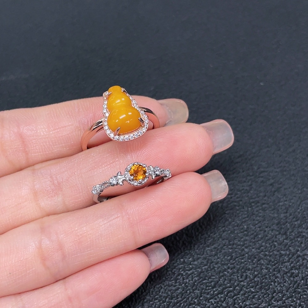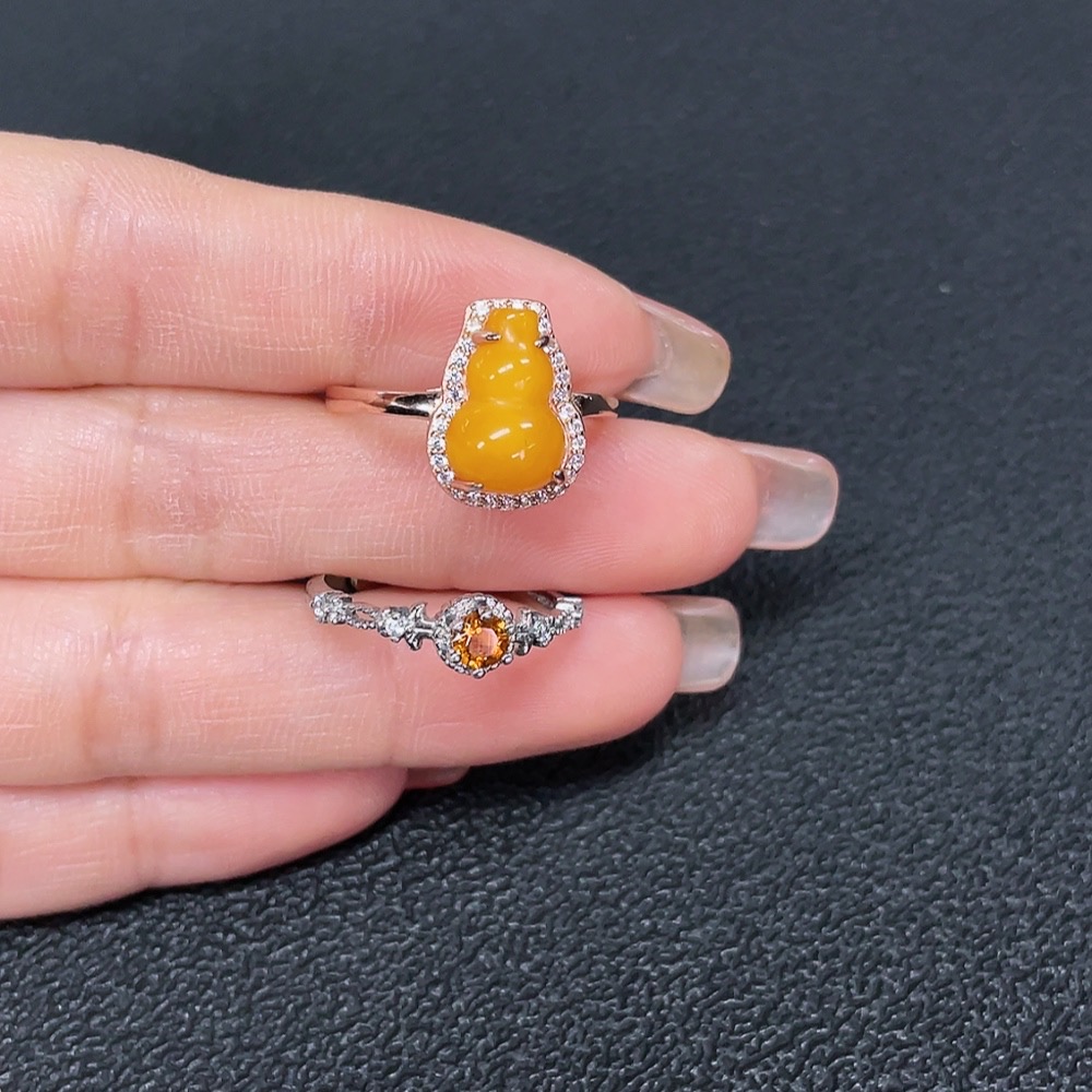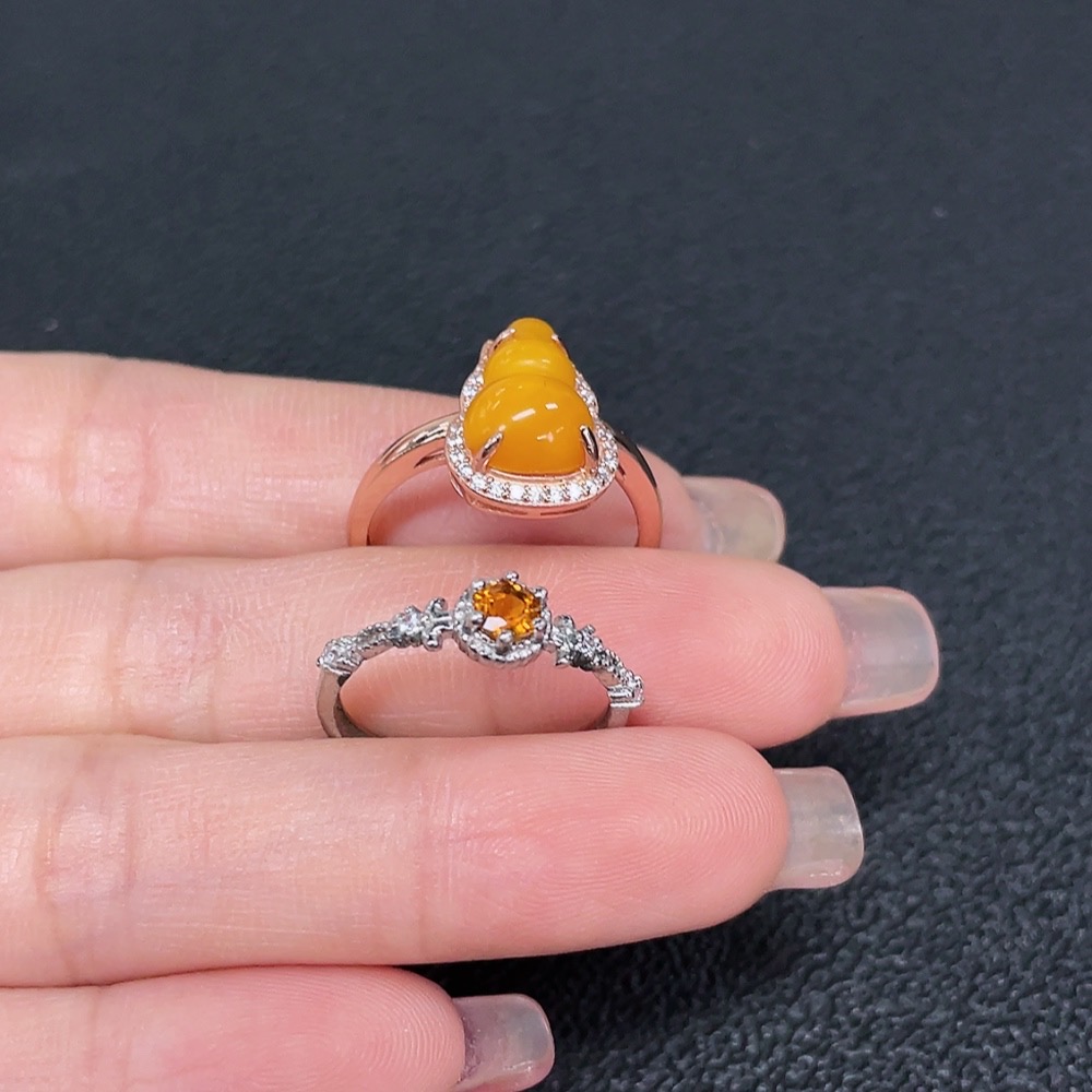 Amber Beeswax + Crystal Ring Non-Gold Adjustable Total Weight Approx. 3.6g Sell as a Lot