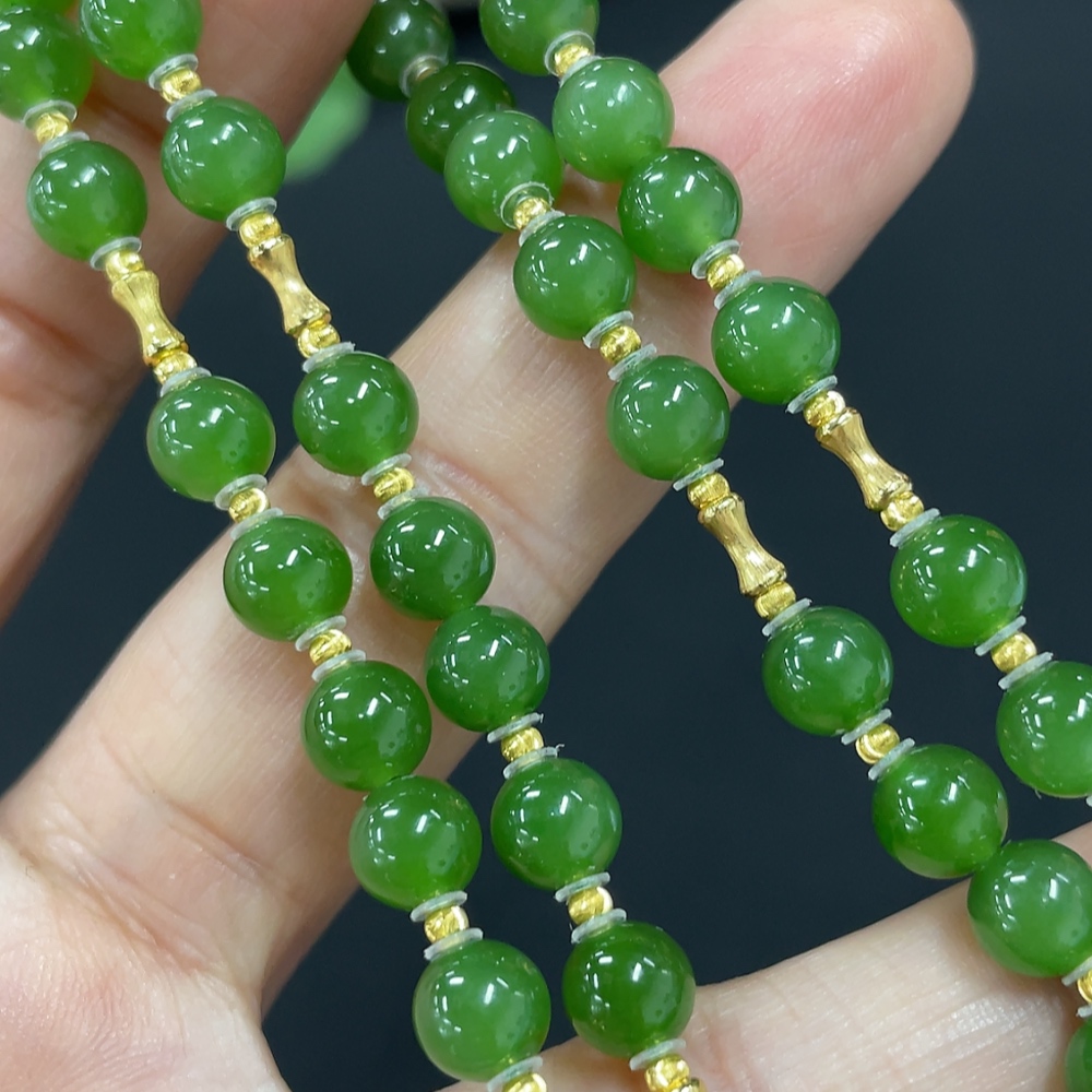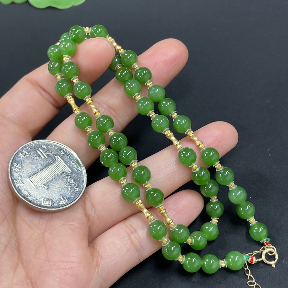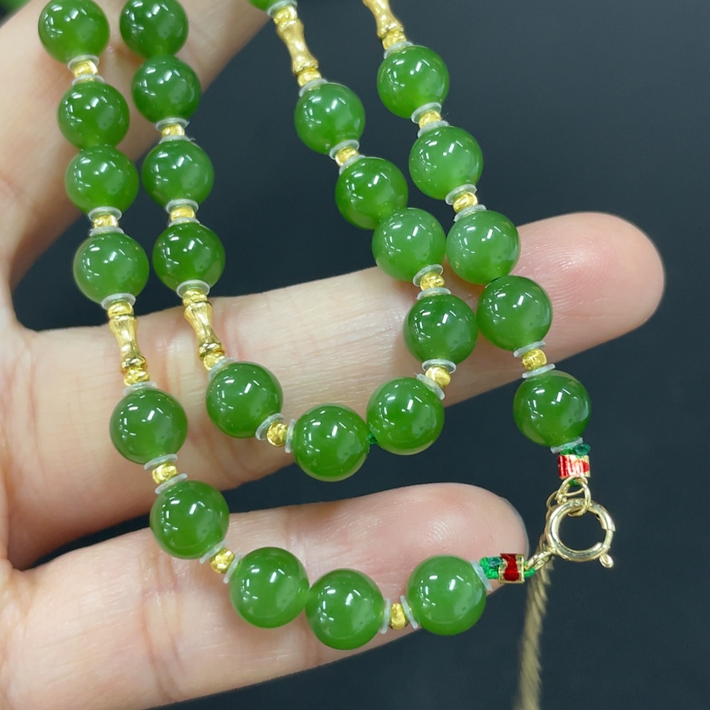 Hetian Jade Jasper Bead Necklace, approx. 5.8mm, marked red non-gold, rest 18k gold, total weight approx. 16.2g