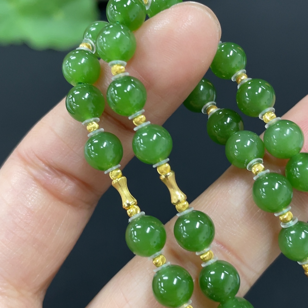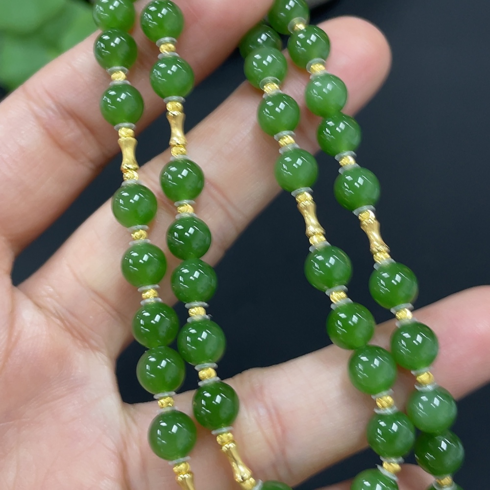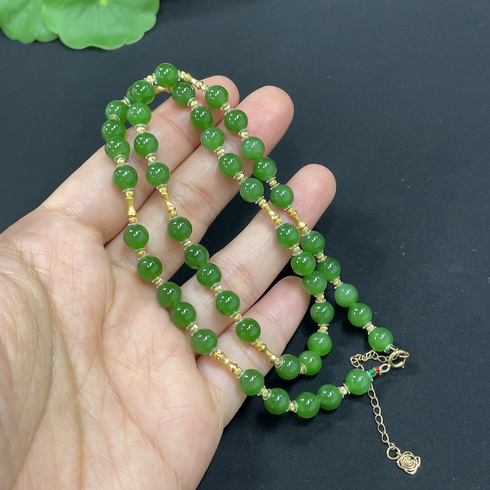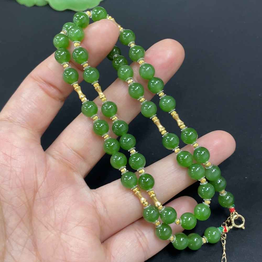 Hetian Jade Jasper Bead Necklace, approx. 5.8mm, marked red non-gold, rest 18k gold, total weight approx. 16.2g