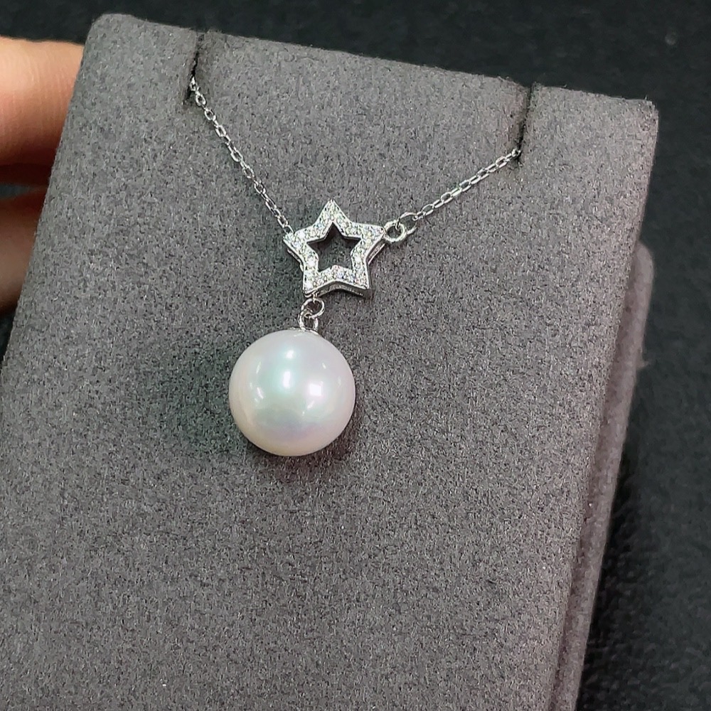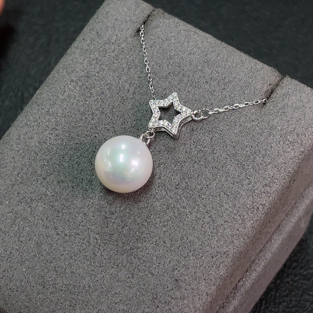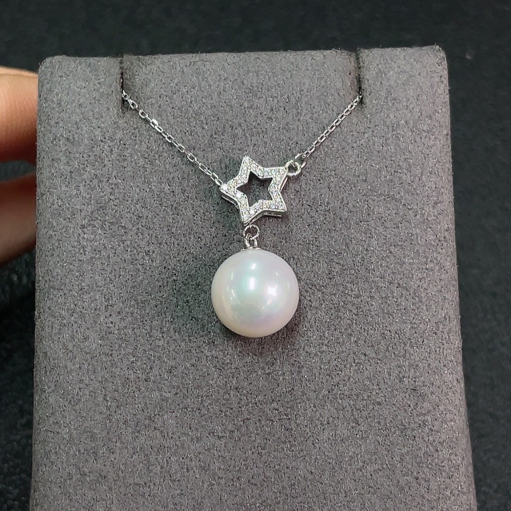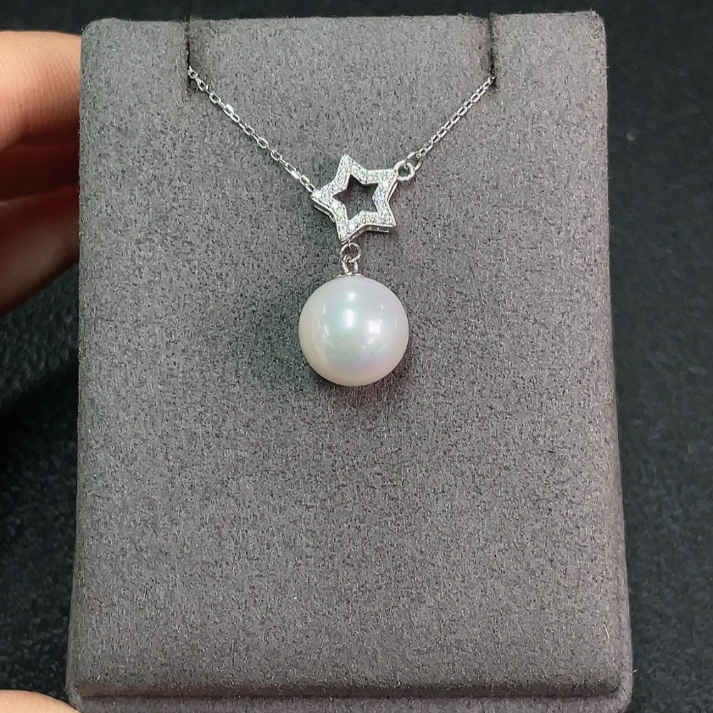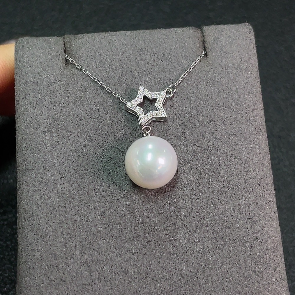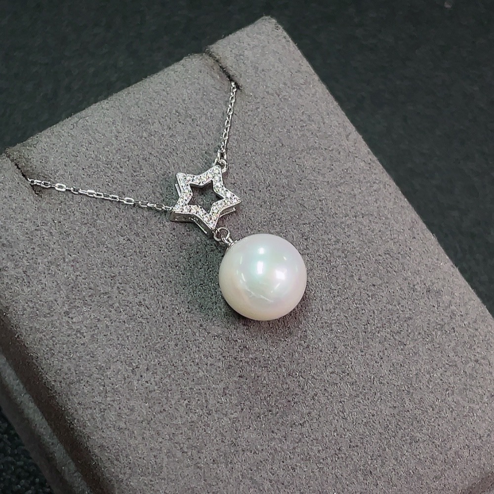 Pearl Inlaid Necklace Non-Gold Setting Card 11.1mm Approx. Item Weight Including Chain Approx. 3.59g