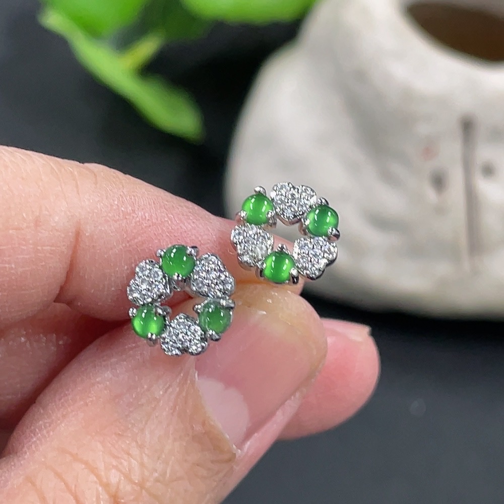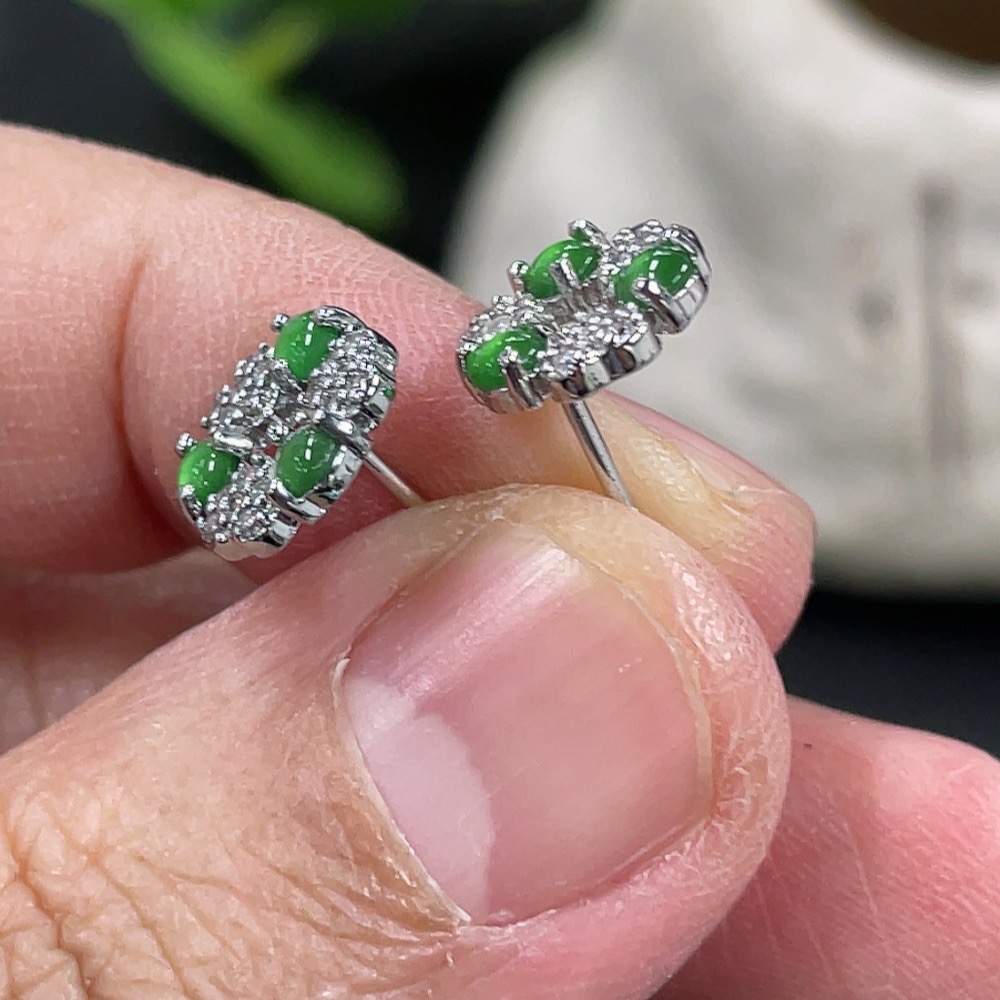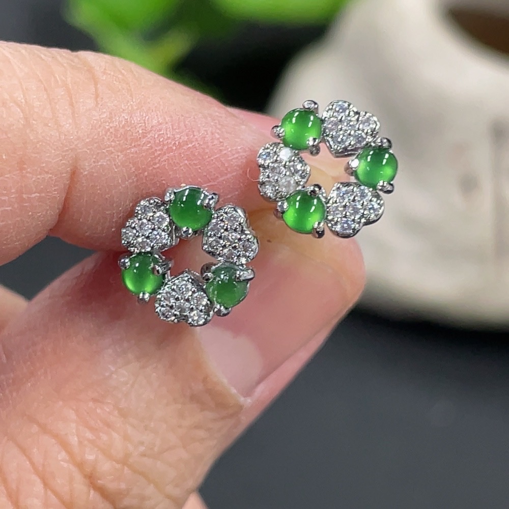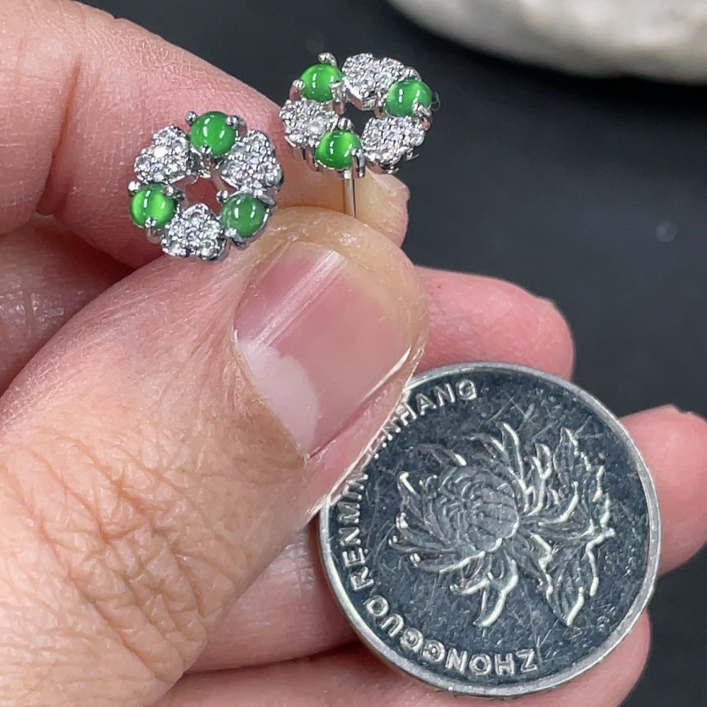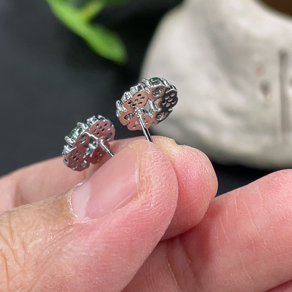 Jadeite Inlaid Earrings Non-Gold Total Weight Approx. 1.25g