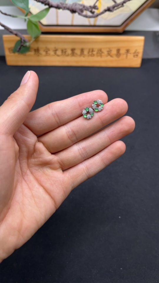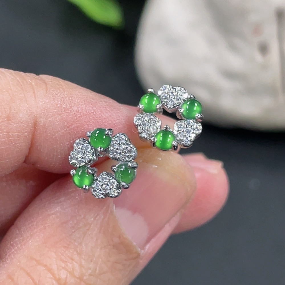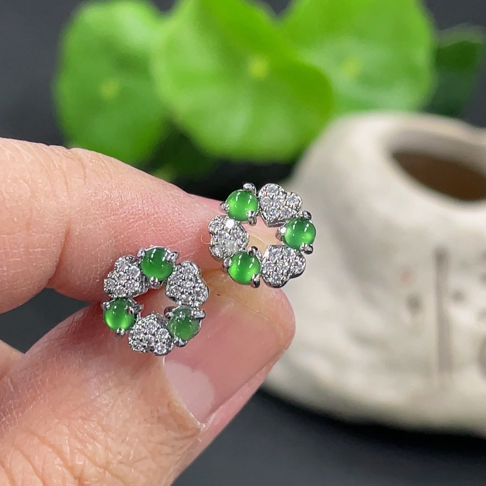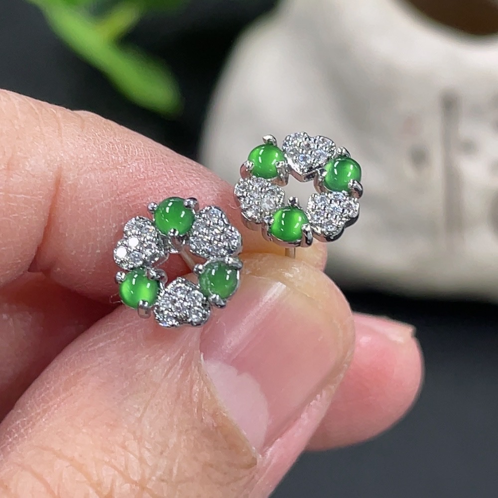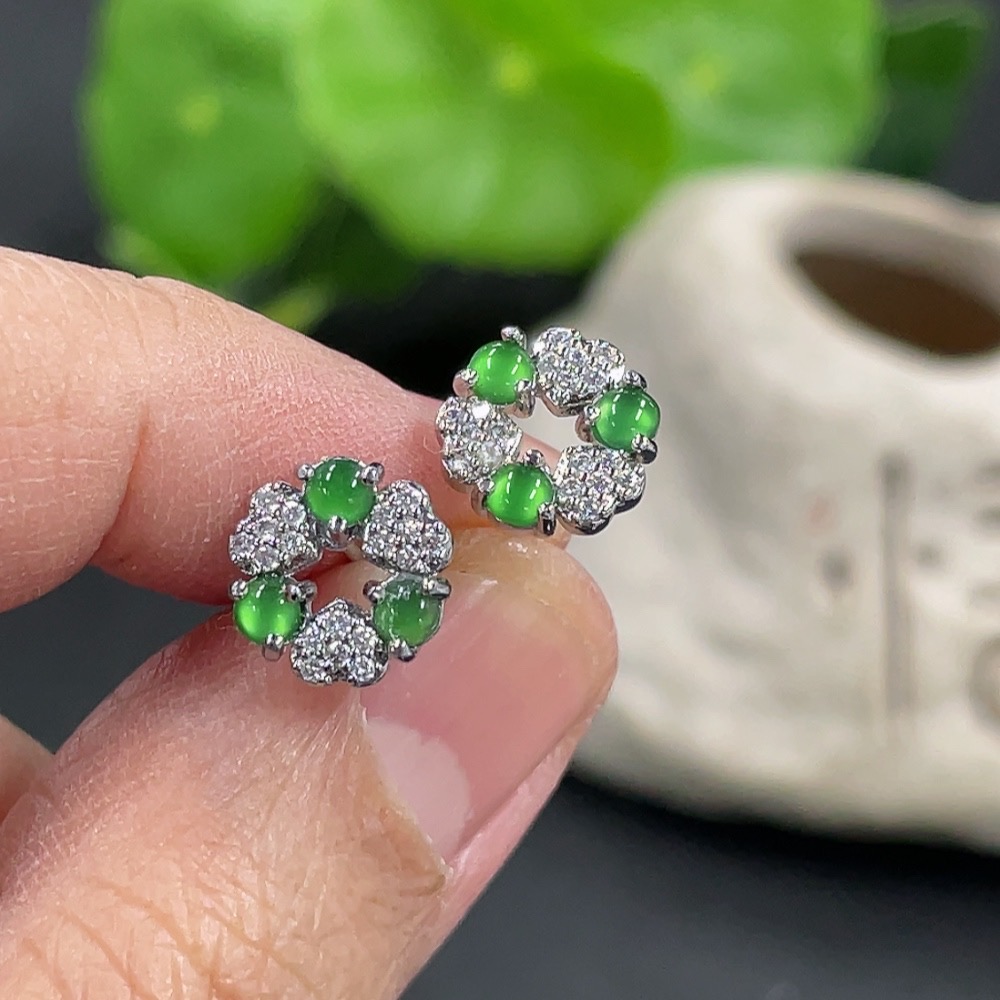 Jadeite Inlaid Earrings Non-Gold Total Weight Approx. 1.25g