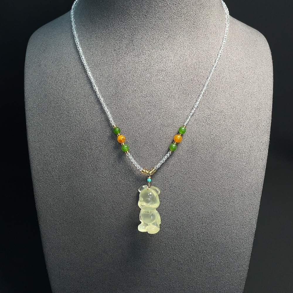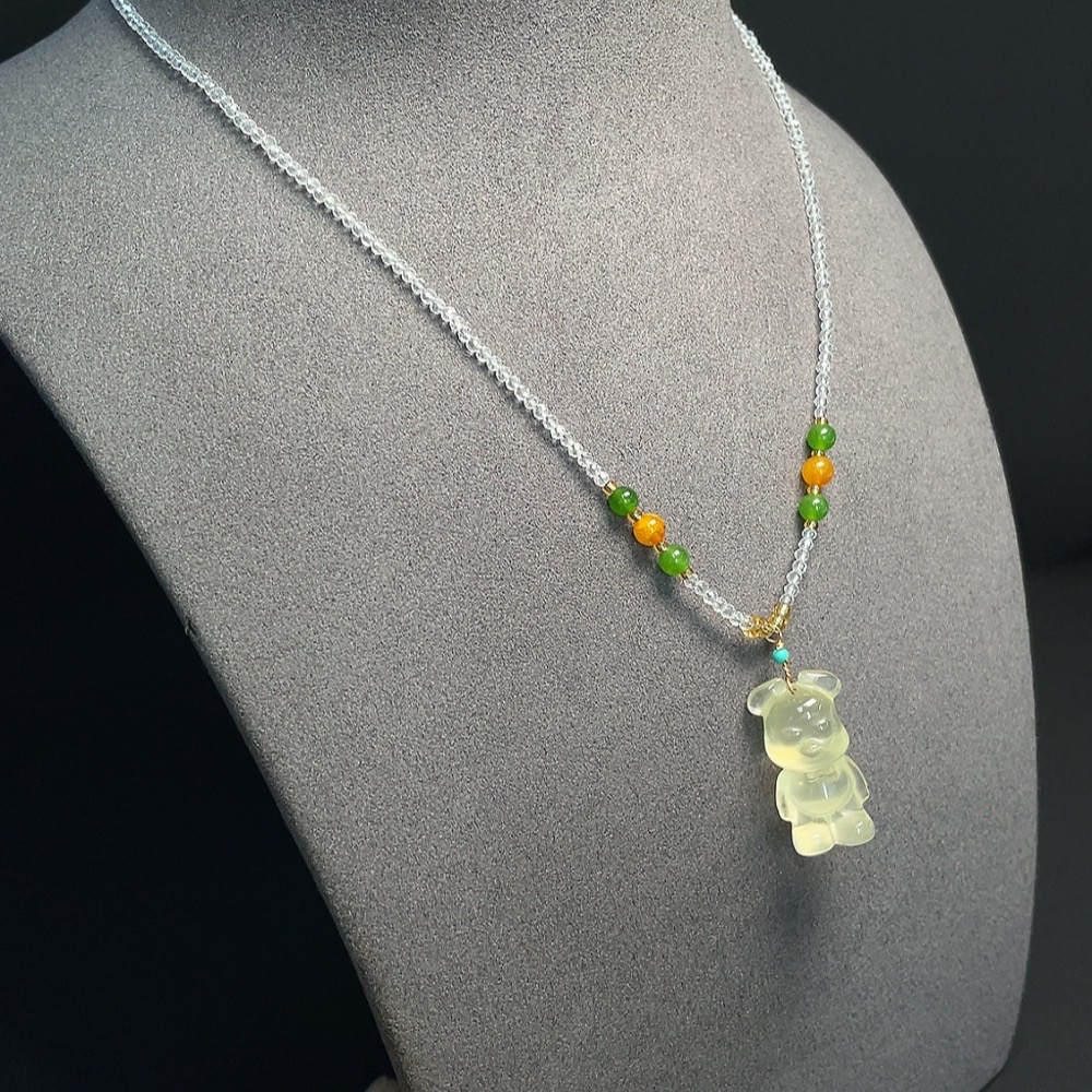Crystal Necklace Non-Gold Setting Product Weight Including Cord Approx. 8.91g With Amber Chain May Not Be Natural