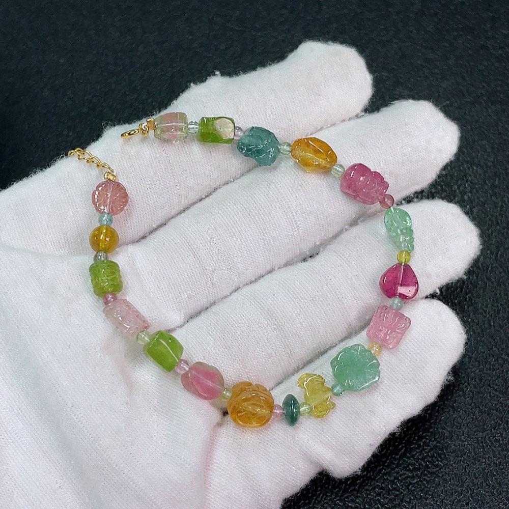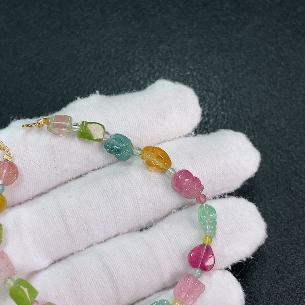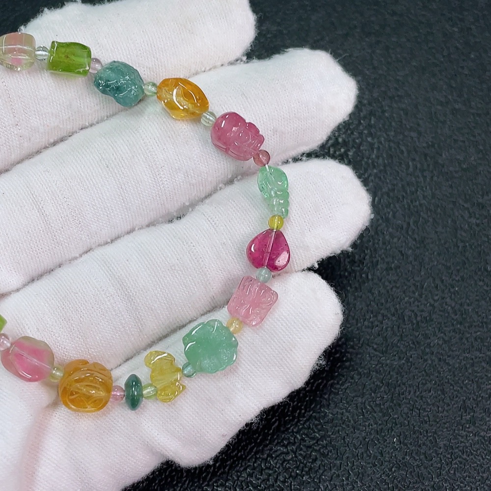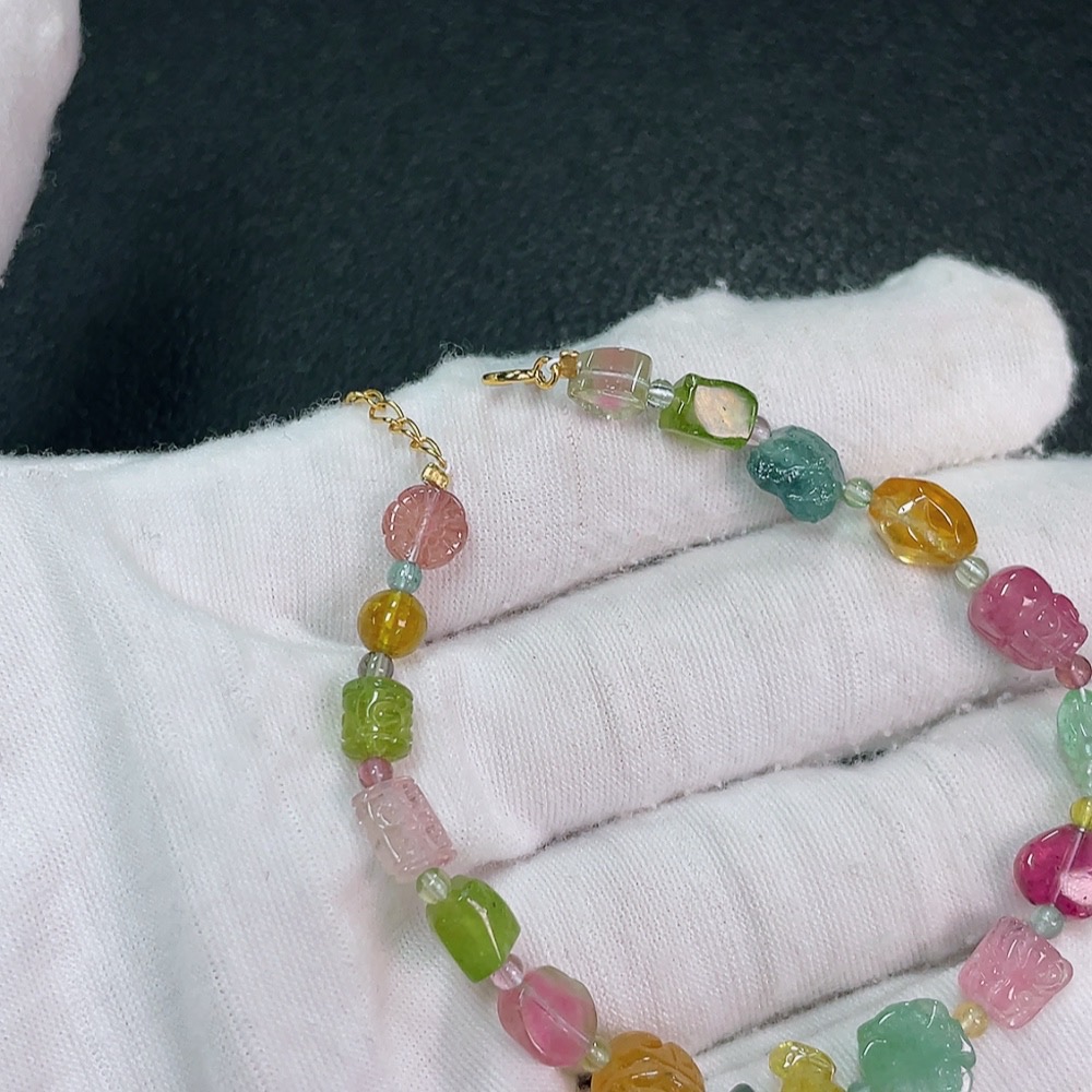 Tourmaline Bracelet Non-Gold Inlaid Stringed Beads 2.6-8.2mm Approx. Total Weight About 6.86g Visible Organic Matter