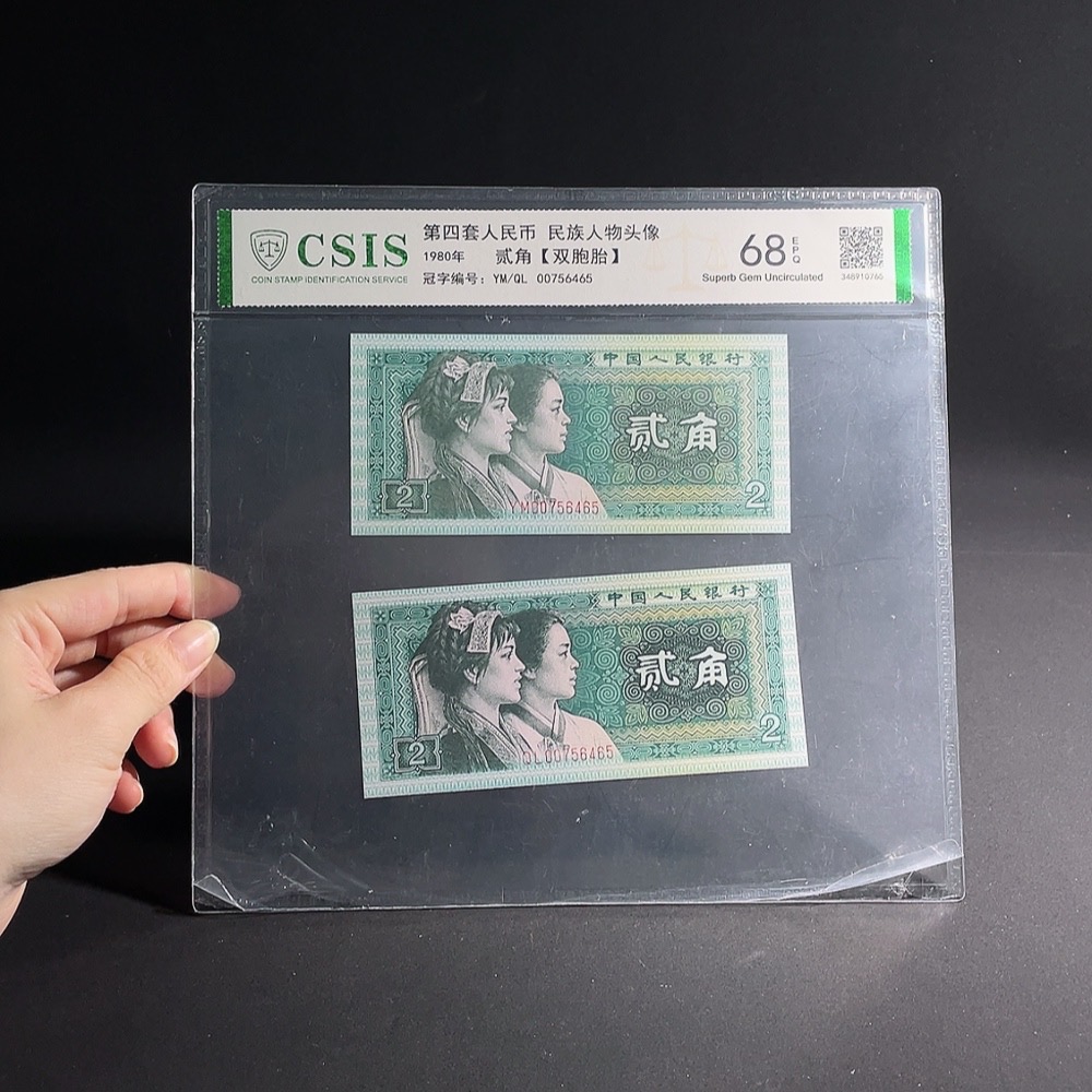 Fourth Edition 8002 Two Notes with 8-Digit Same Serial Number Graded Paper Money