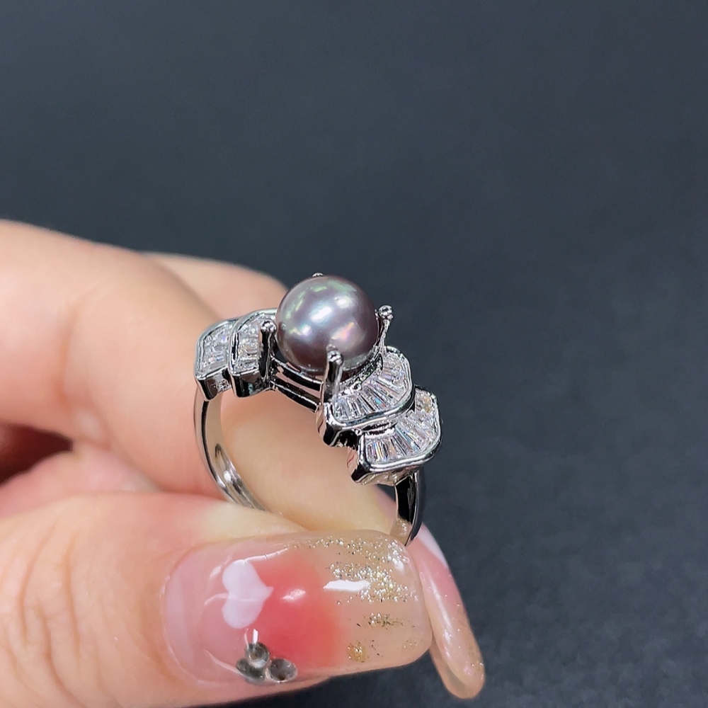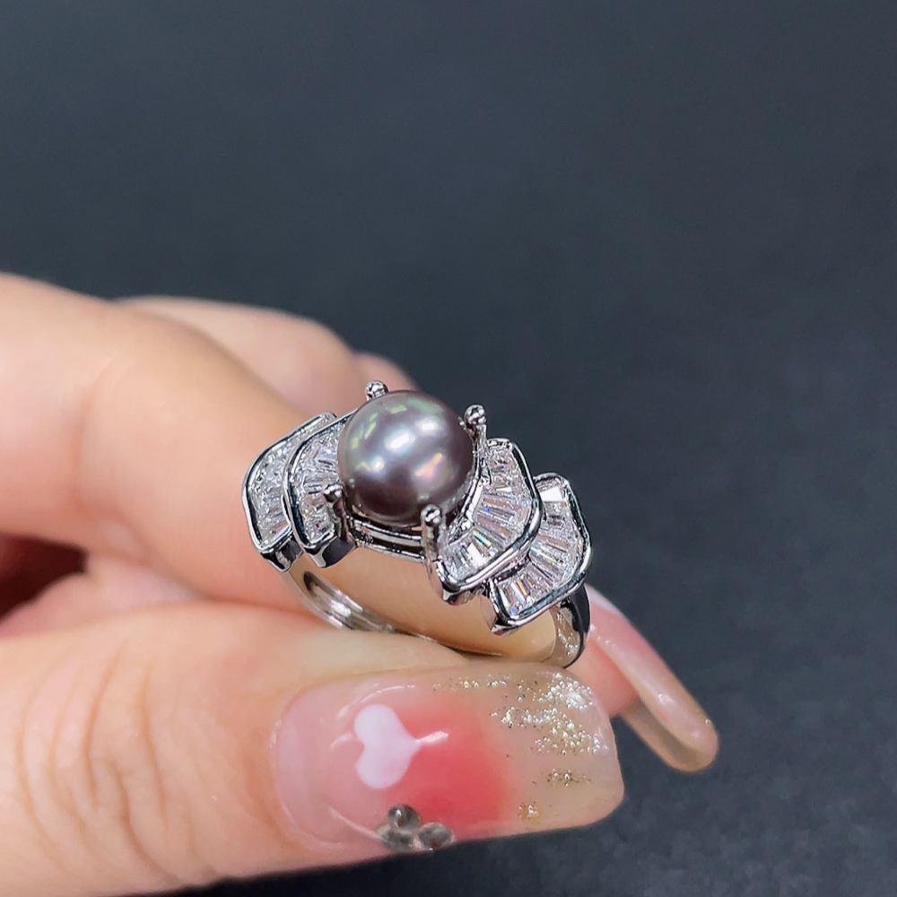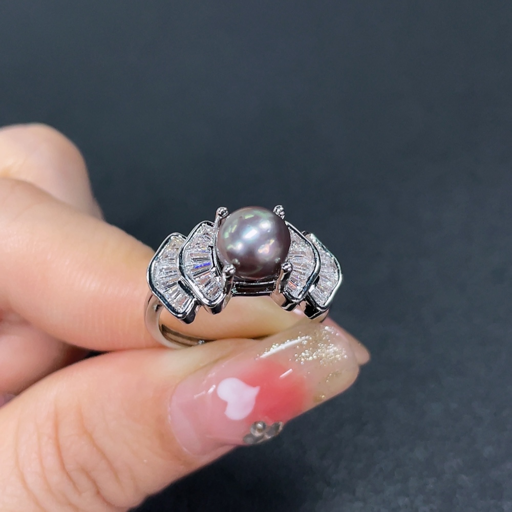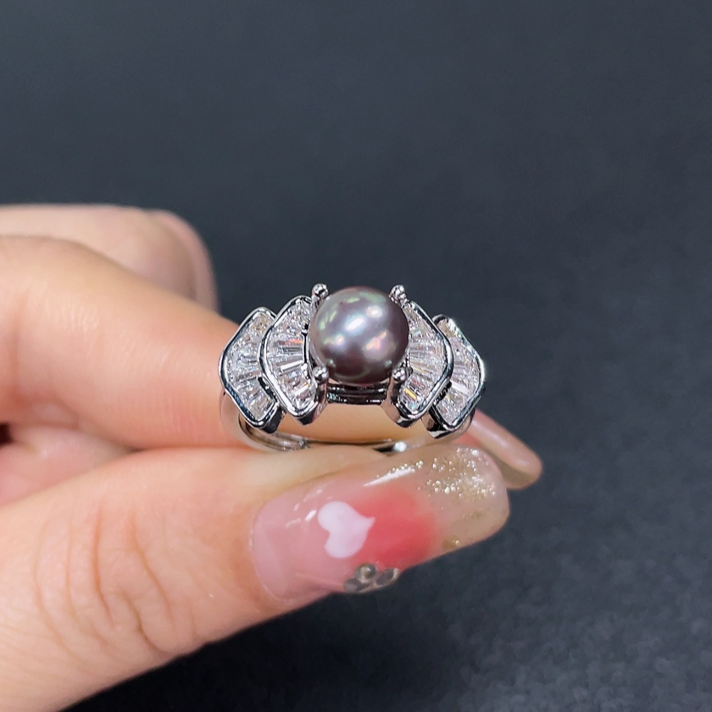 Seawater Pearl Ring, Color Origin Undetermined, Non-Gold, Adjustable, Total Weight Approximately 4g, Size 7mm