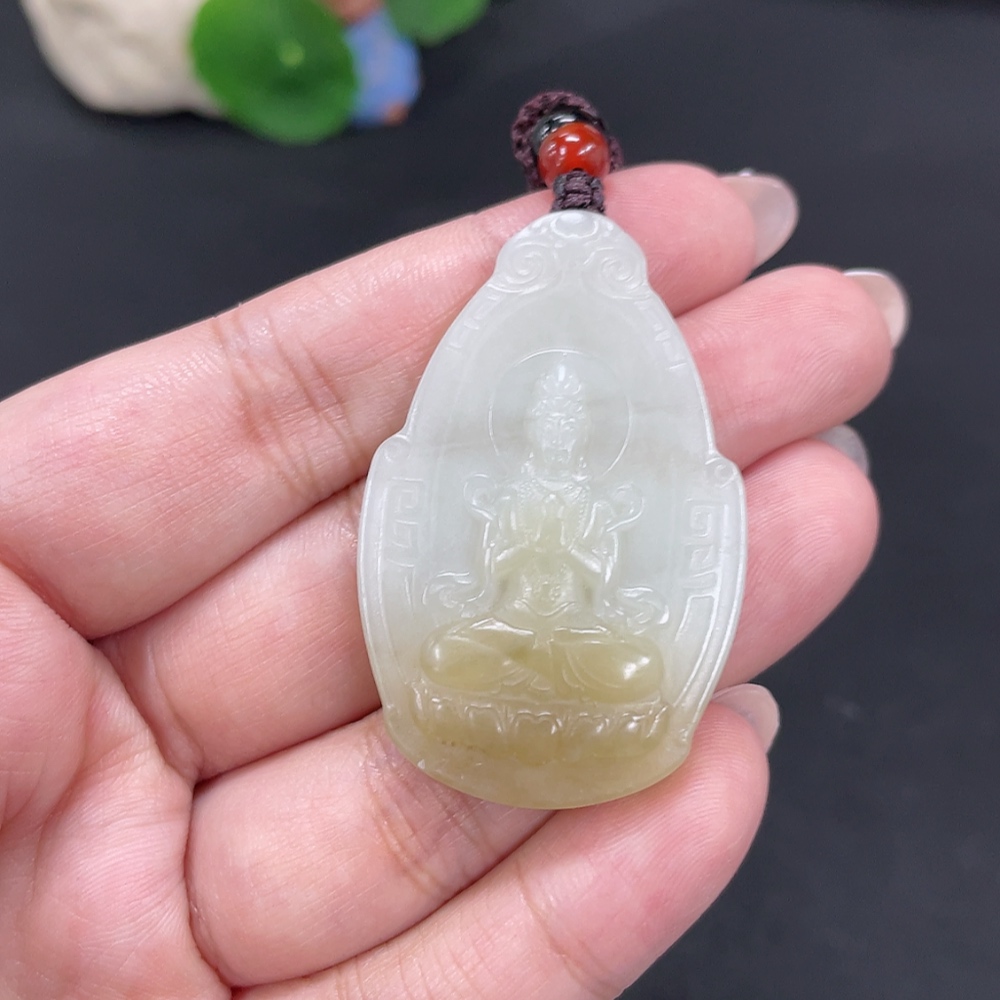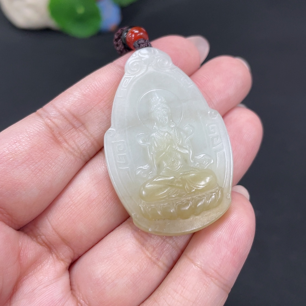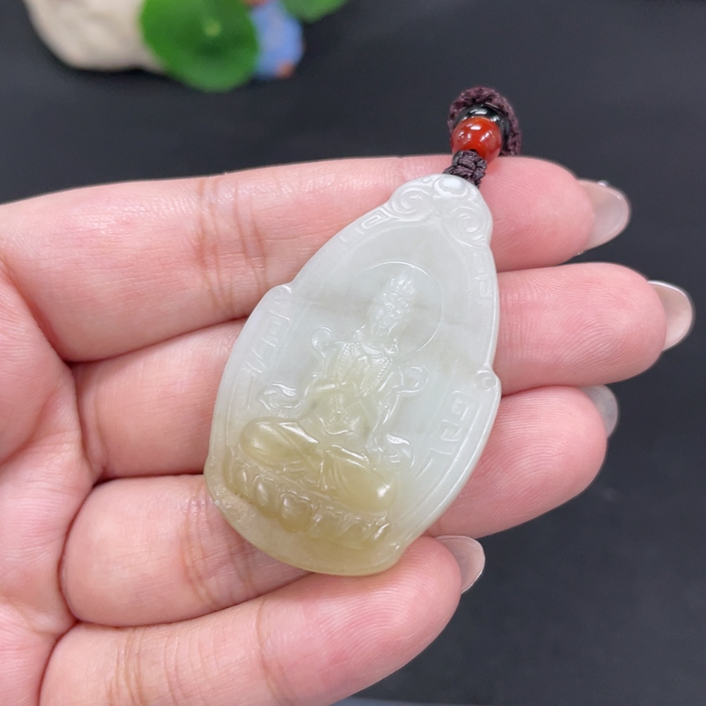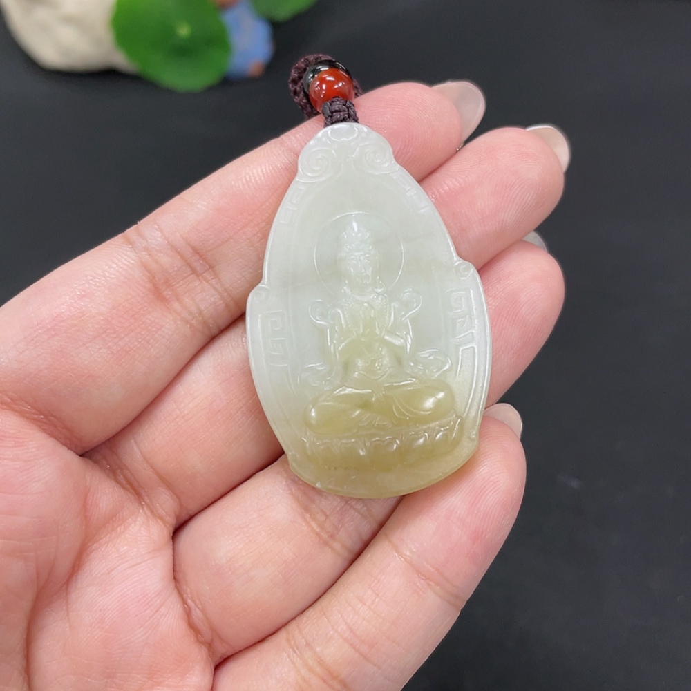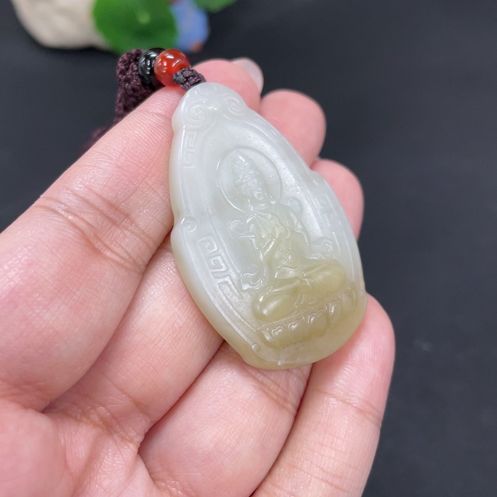 Hetian Jade Pendant Guanyin Total Weight Approx. [with rope] 18.5g Beads Not Hetian Jade