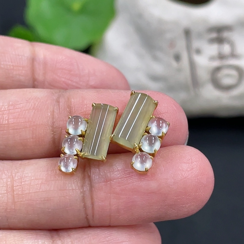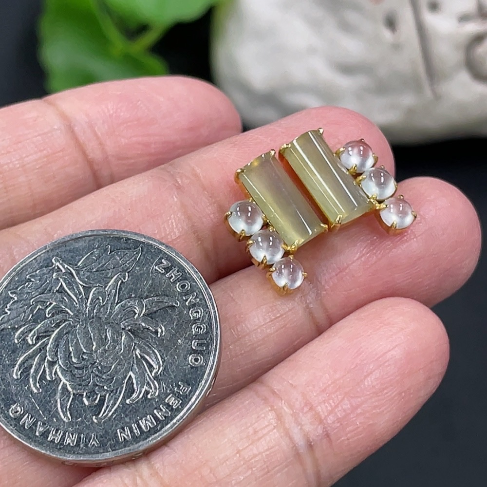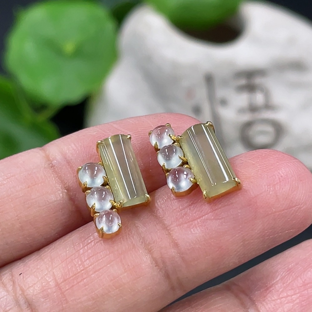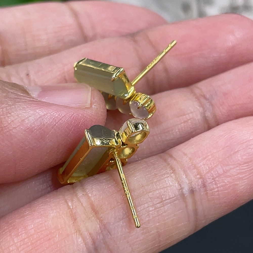 Jadeite inlaid earrings pair, 18k gold inlaid, total weight approximately 2.55g