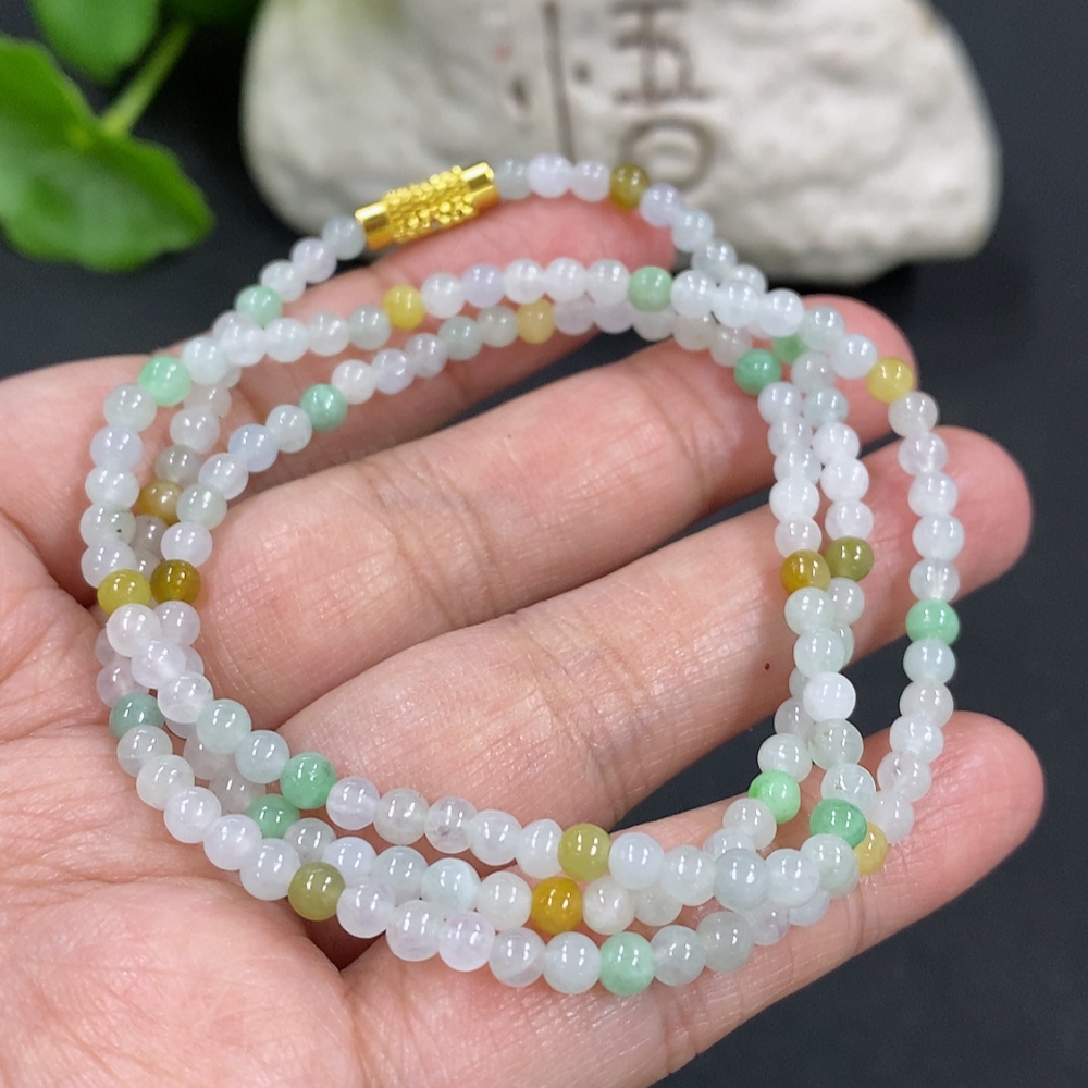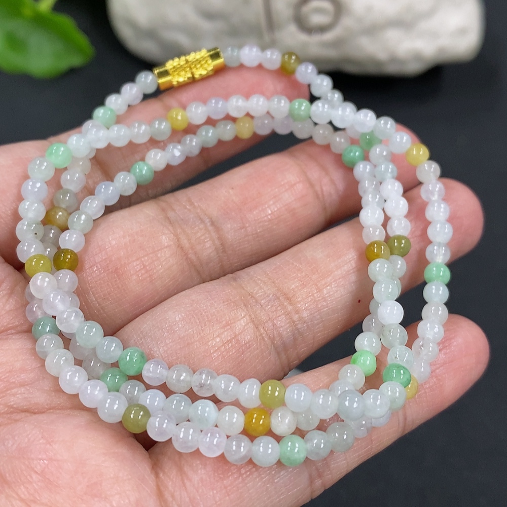 Jadeite Bead Necklace Approximately 3.3mm Bead Size Total Weight Approximately 12.29g