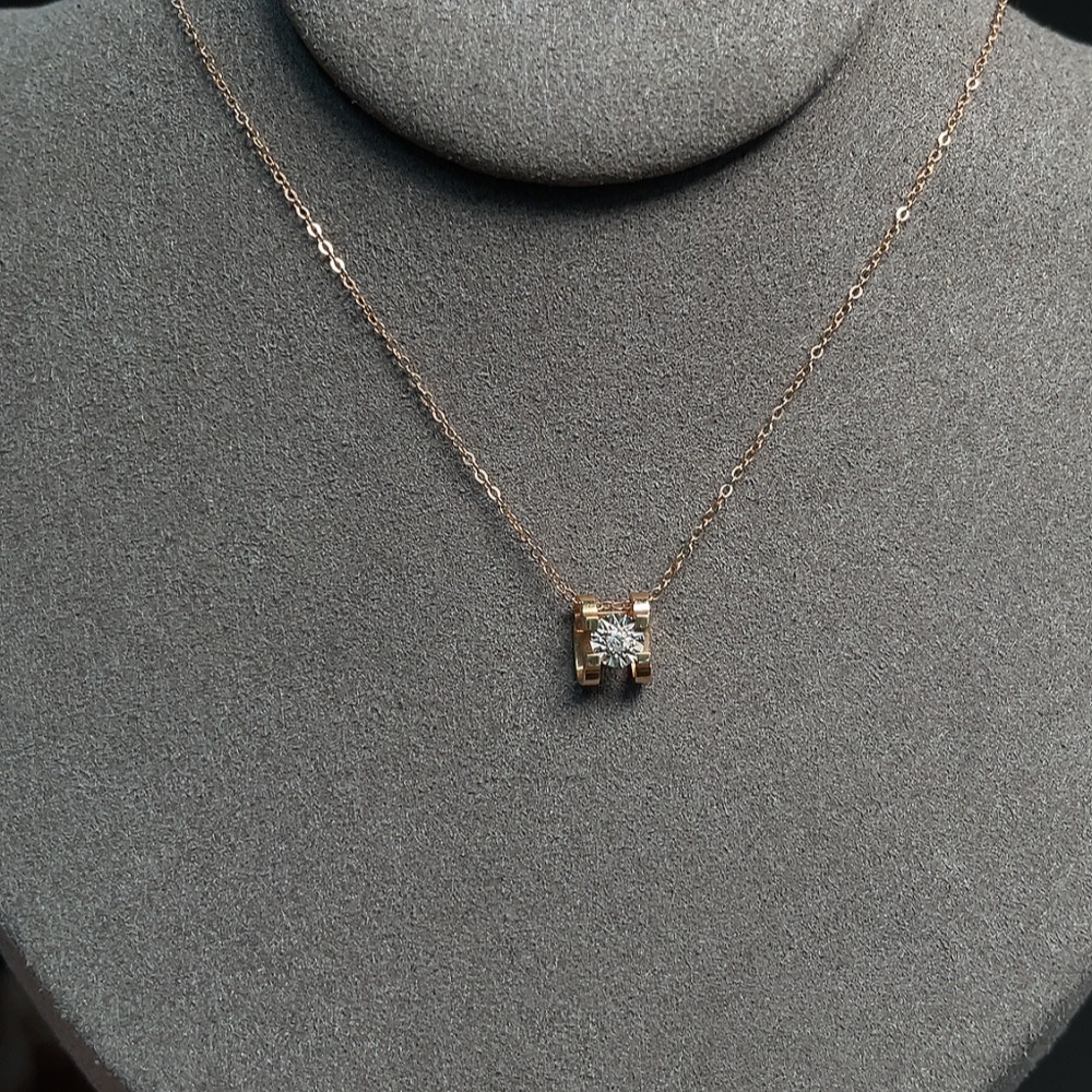 Diamond-set necklace 18k gold, total weight including chain approx. 1.19g, mark d0.03ct