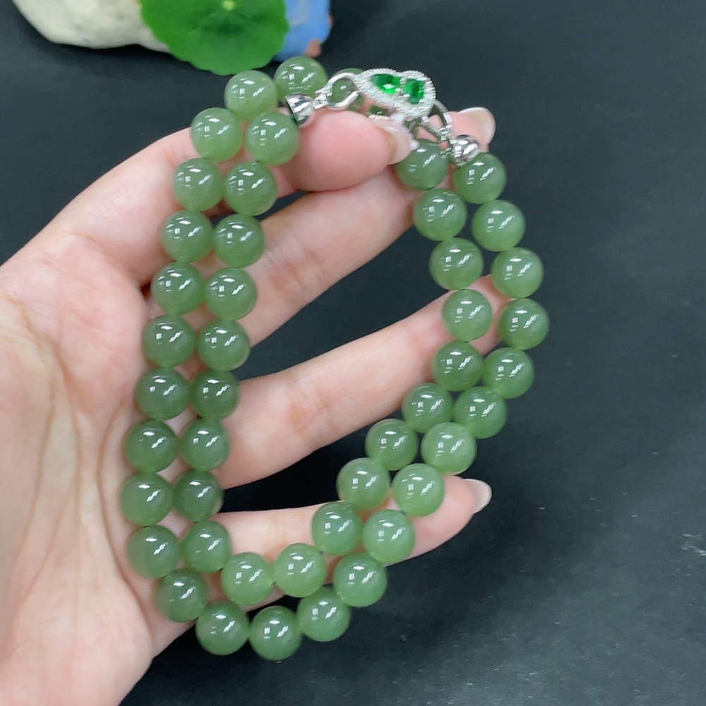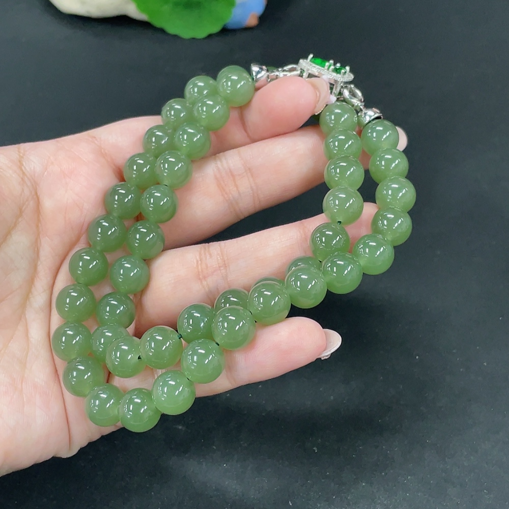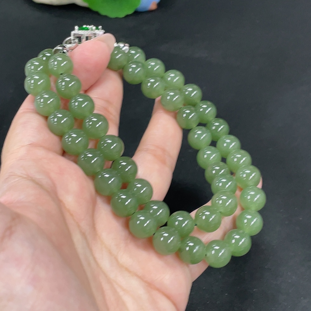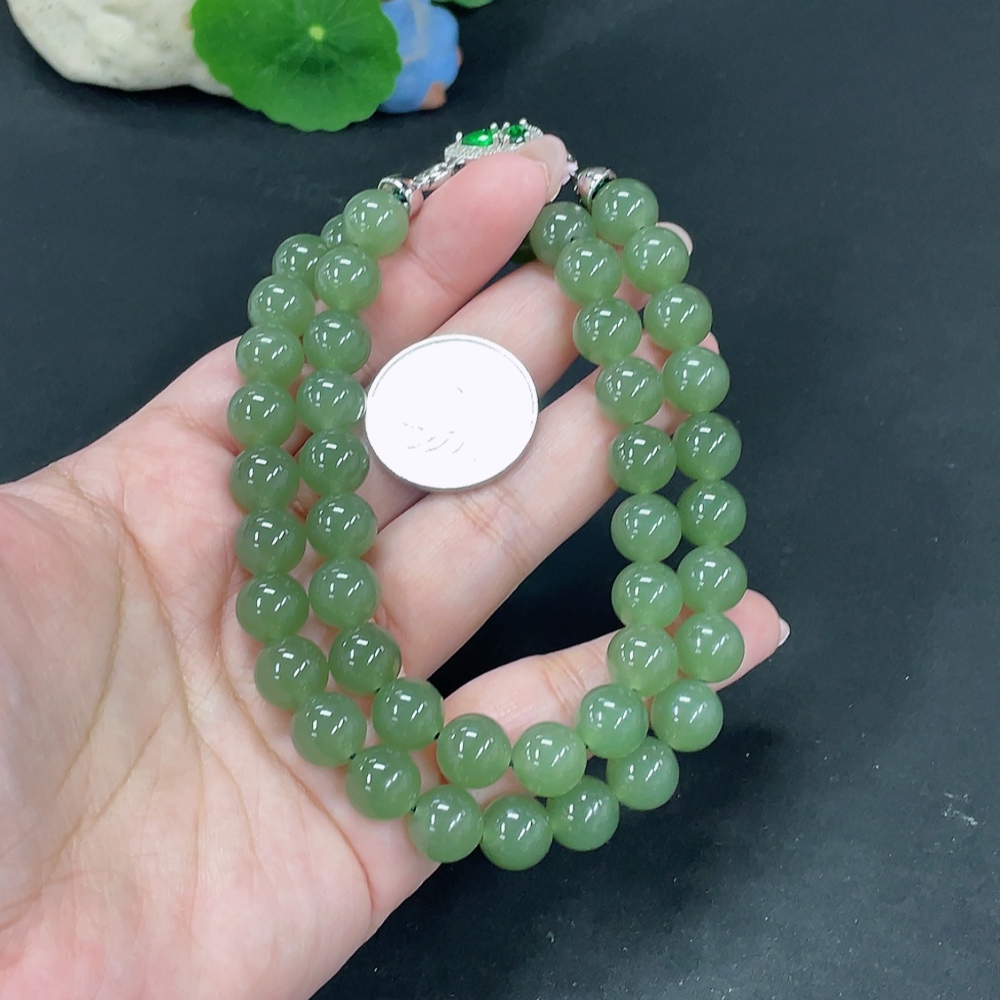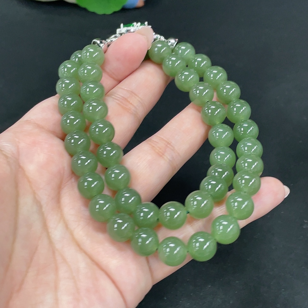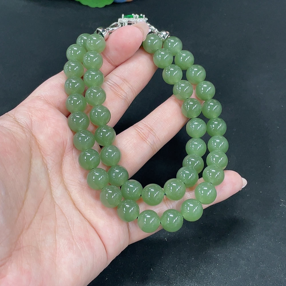 Hetian Jade Bead Necklace, approx. 9.6mm, total weight approx. 75.3g, non-Hetian Jade accessory beads, non-gold