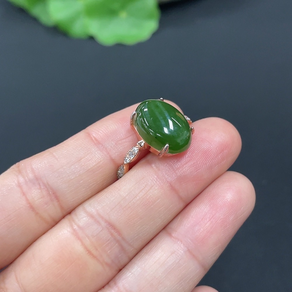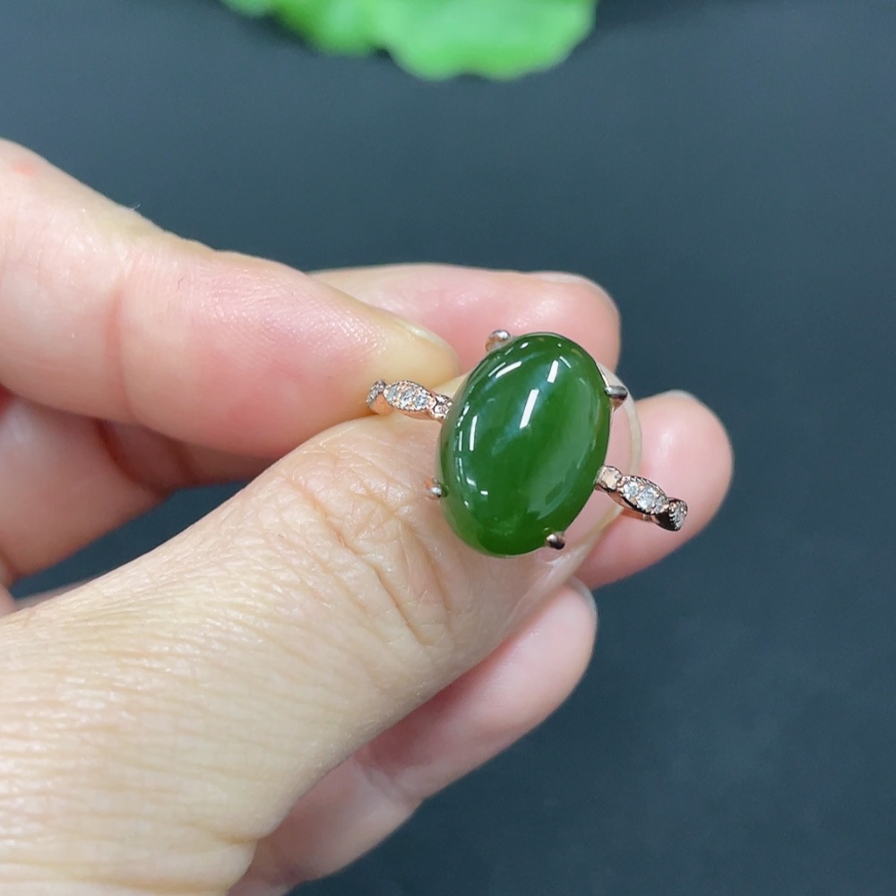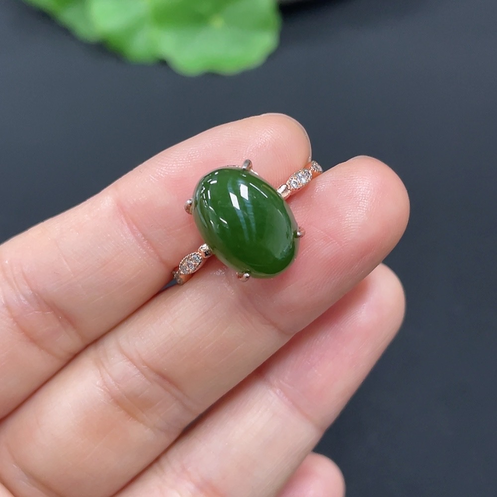 Hetian Jade Inlaid Adjustable Ring Non-Gold Total Weight Approx. 2.8g