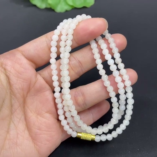 Hetian Jade Bead Necklace, approx. 3.8mm, total weight approx. 14.4g