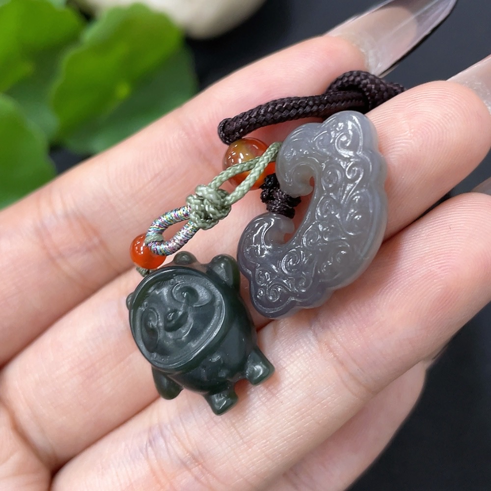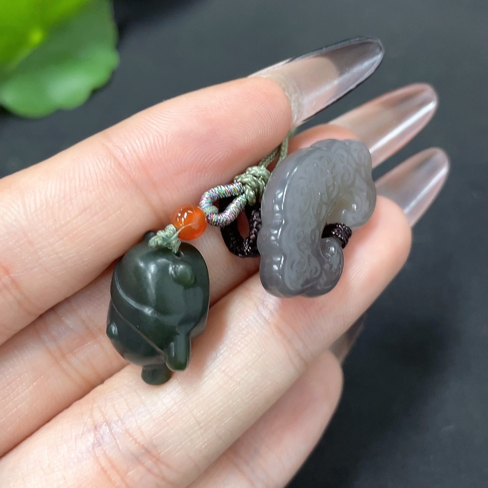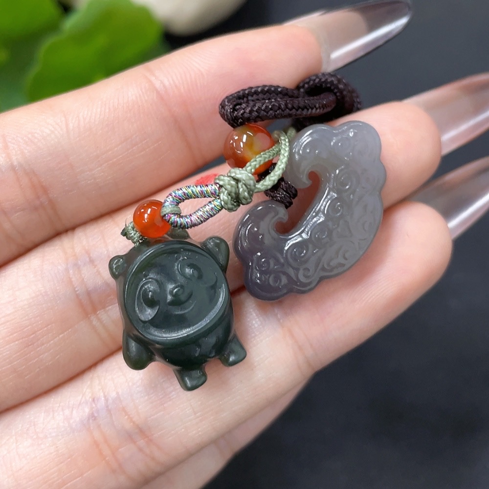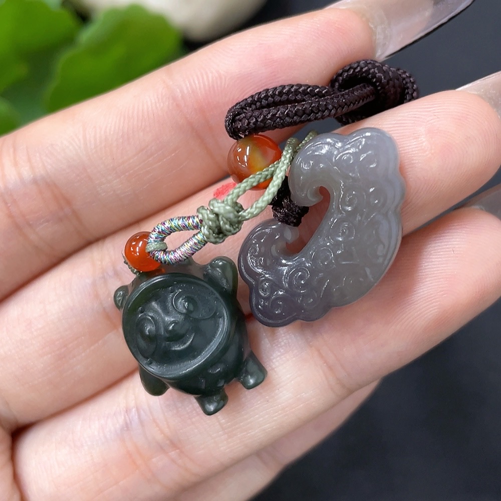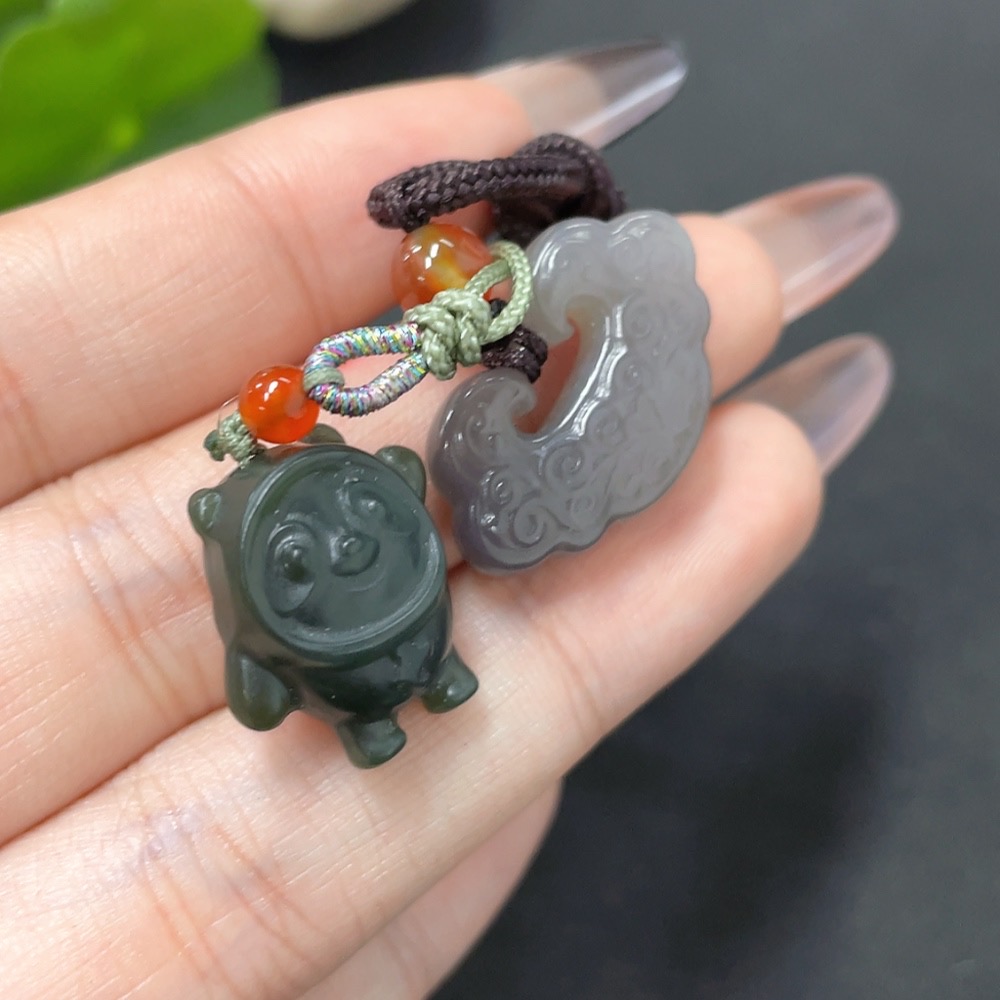 Hetian Jade Pendant (Beads Not Hetian Jade, Total Weight Approx. 10.3g Including Cord)