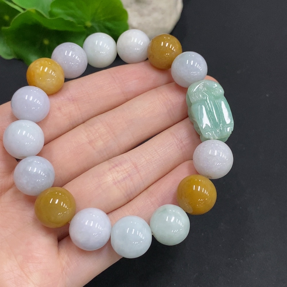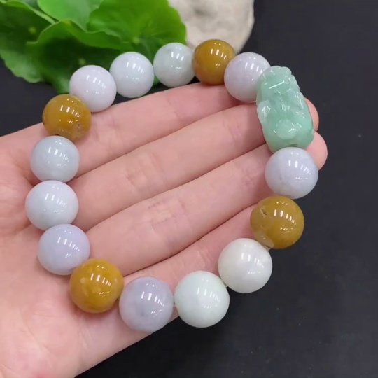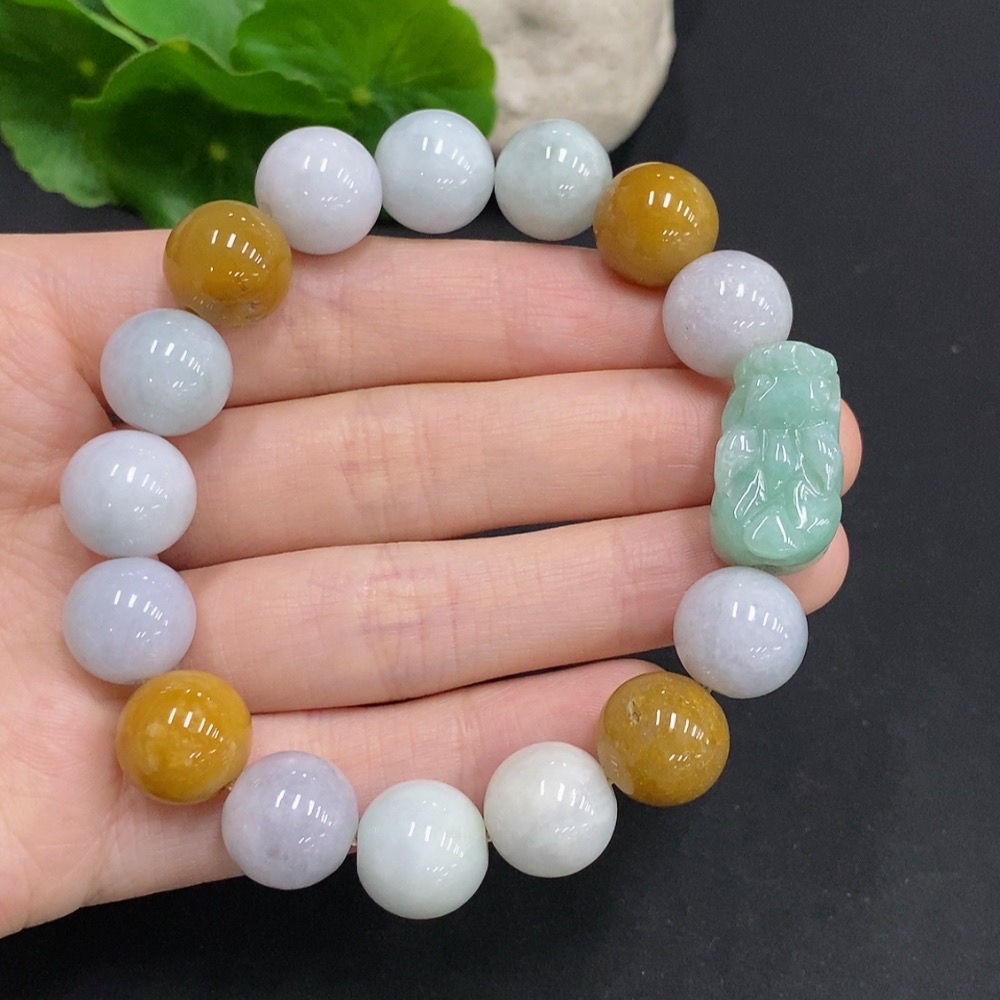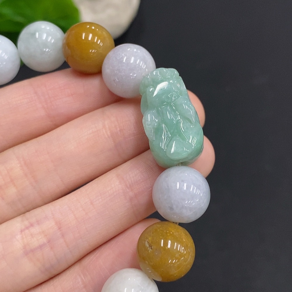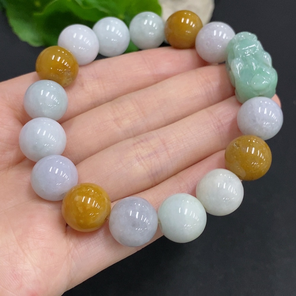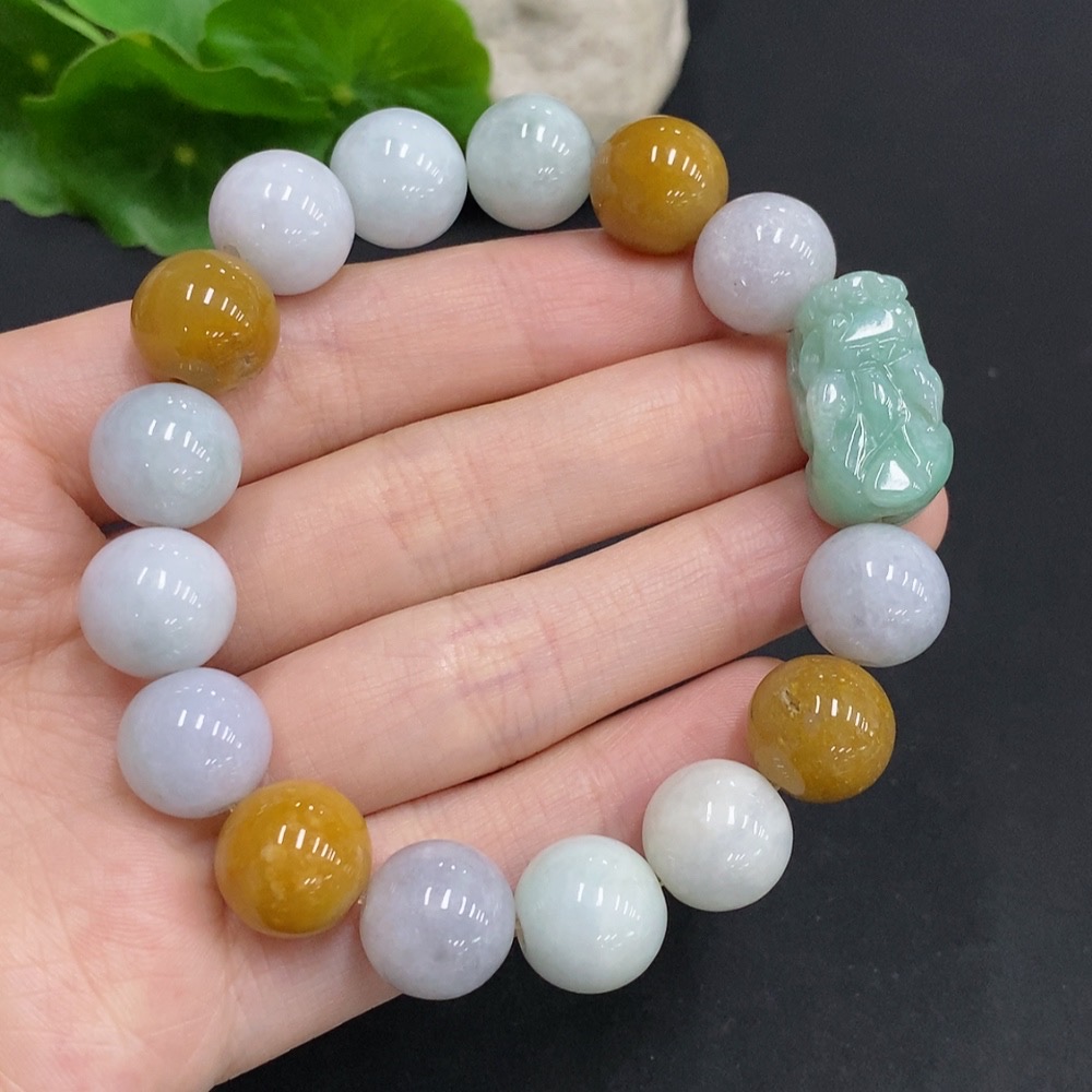 Jadeite Pi Xiu Bracelet, Total Weight Approx. 58.8g, Bead Size 12.7mm, Non-Jadeite Beads Included