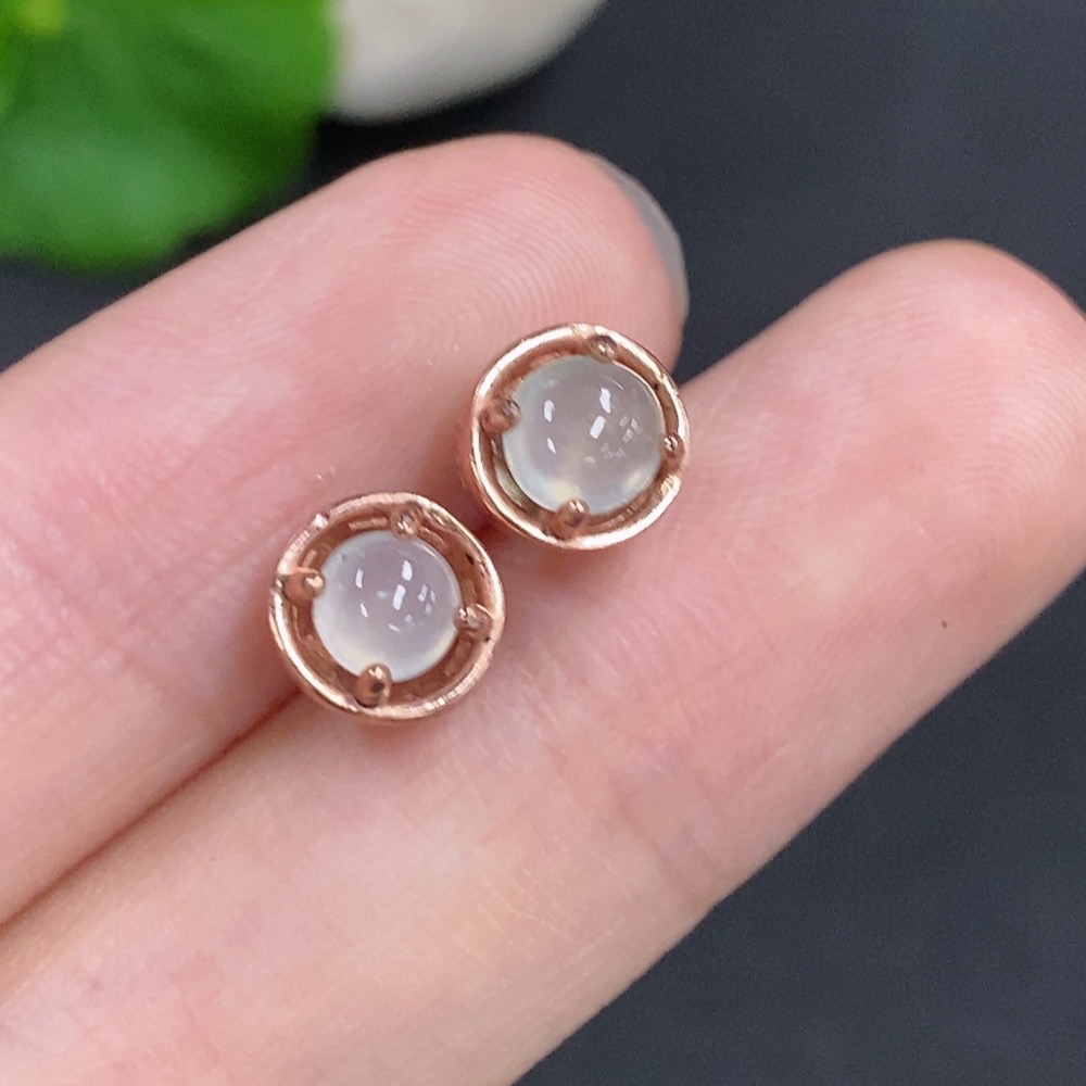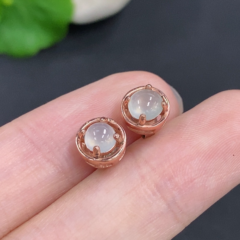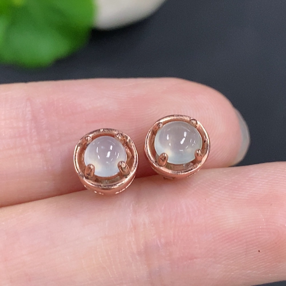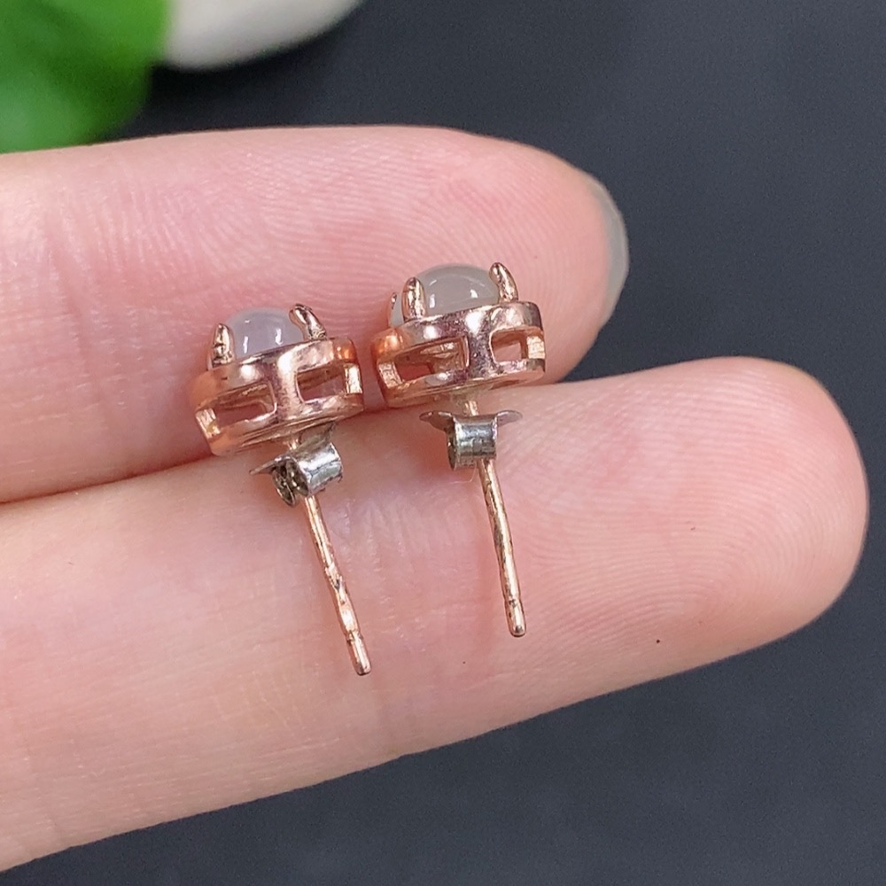 Jadeite cabochon stud earrings, non-gold setting, total weight approx. 1.2g
