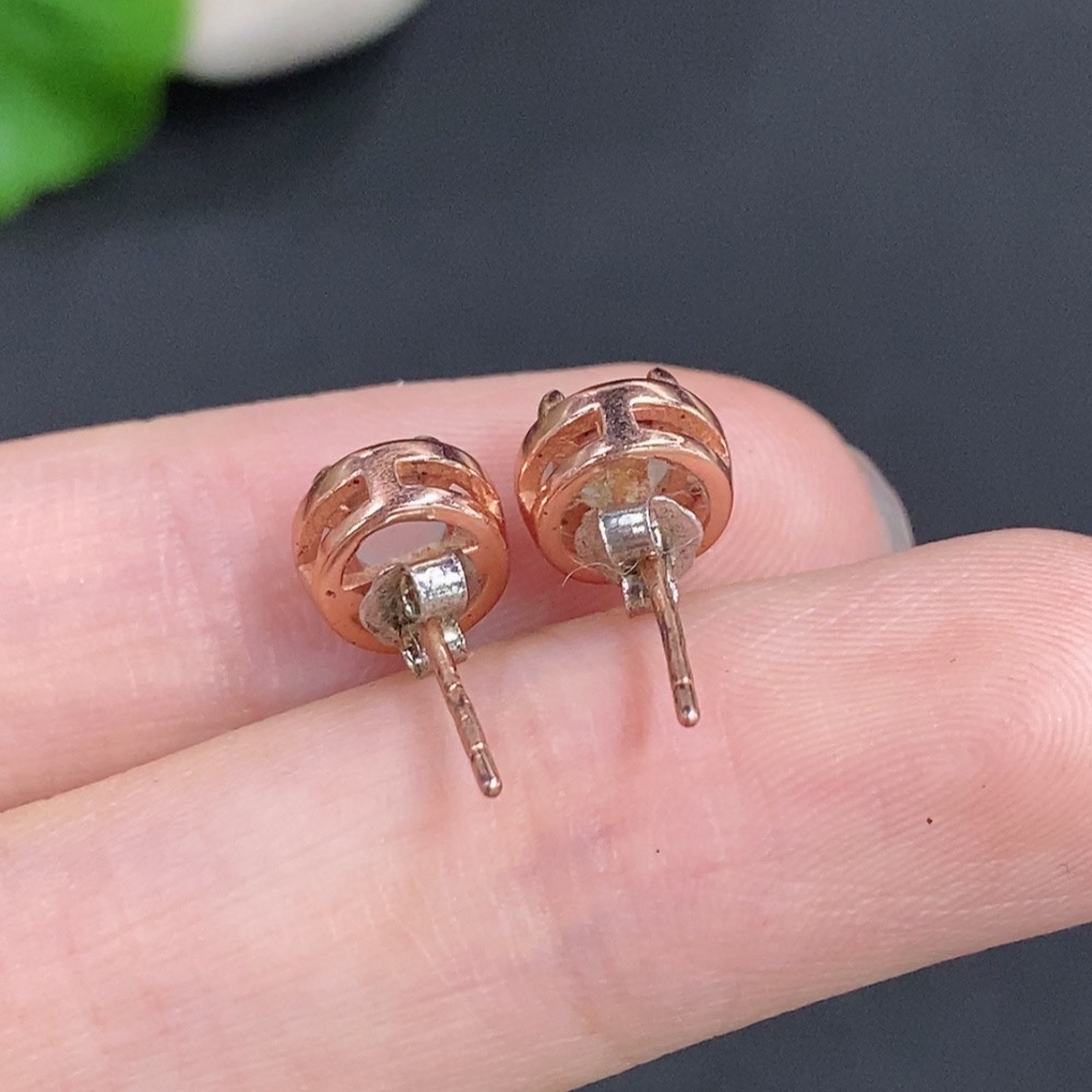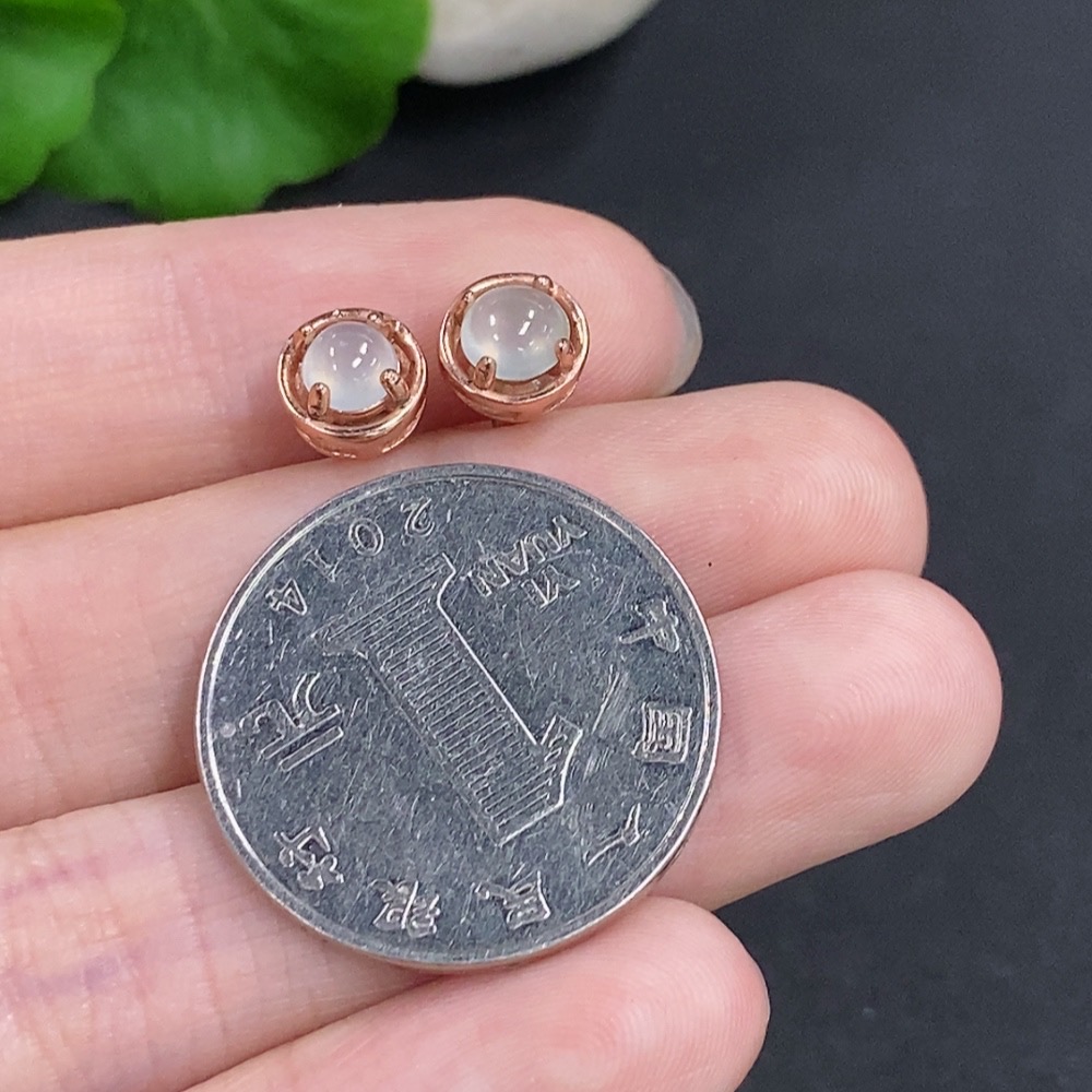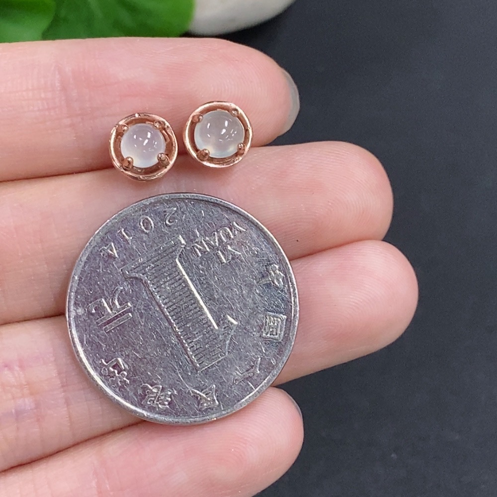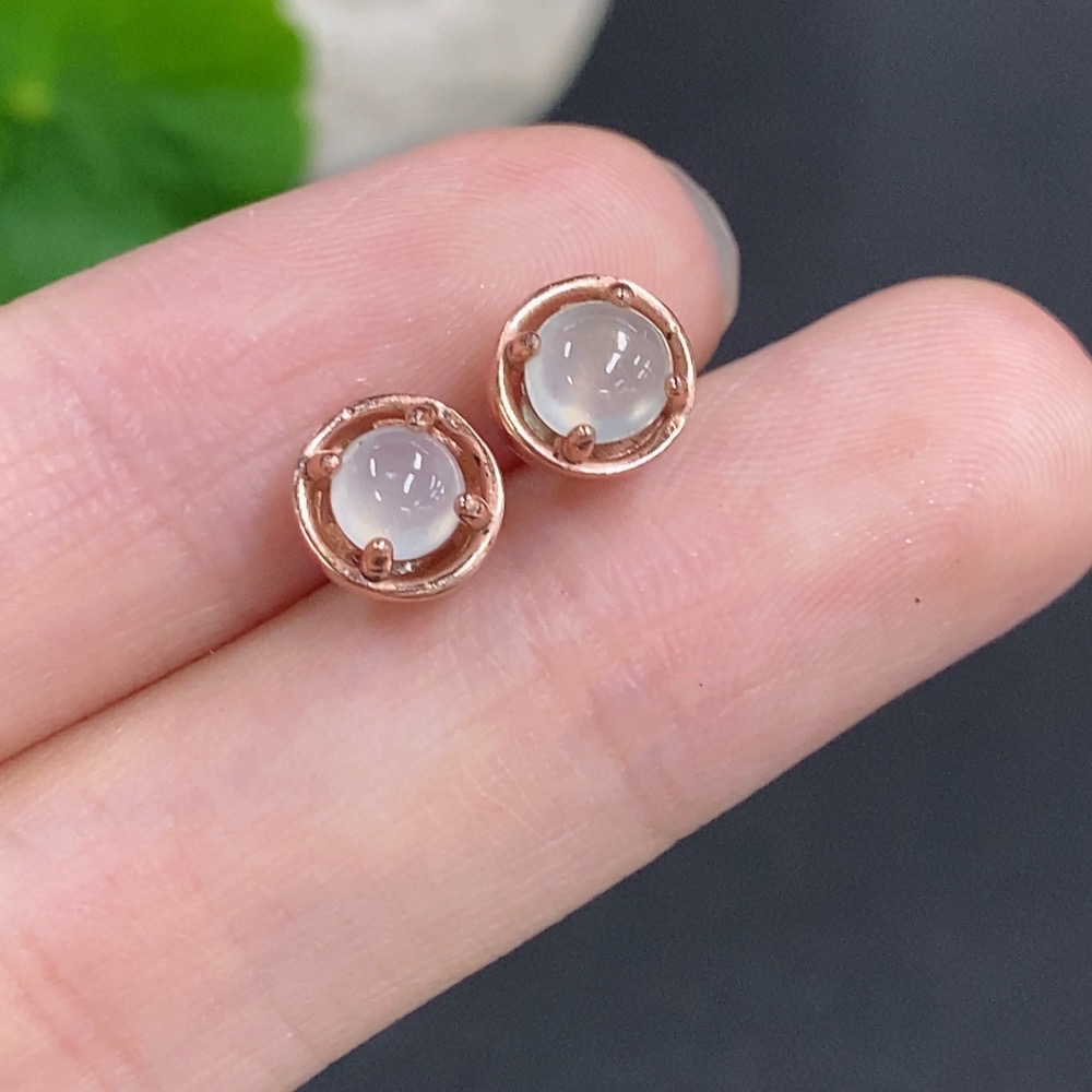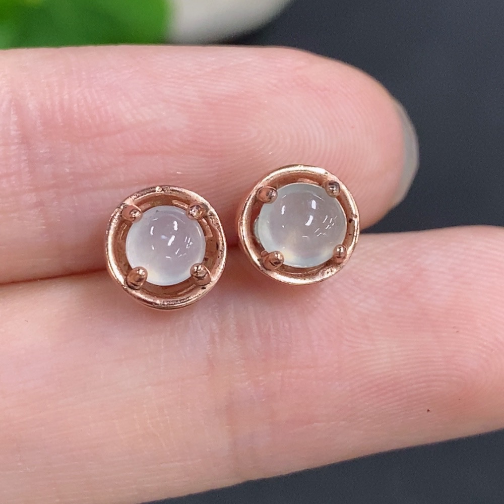 Jadeite cabochon stud earrings, non-gold setting, total weight approx. 1.2g