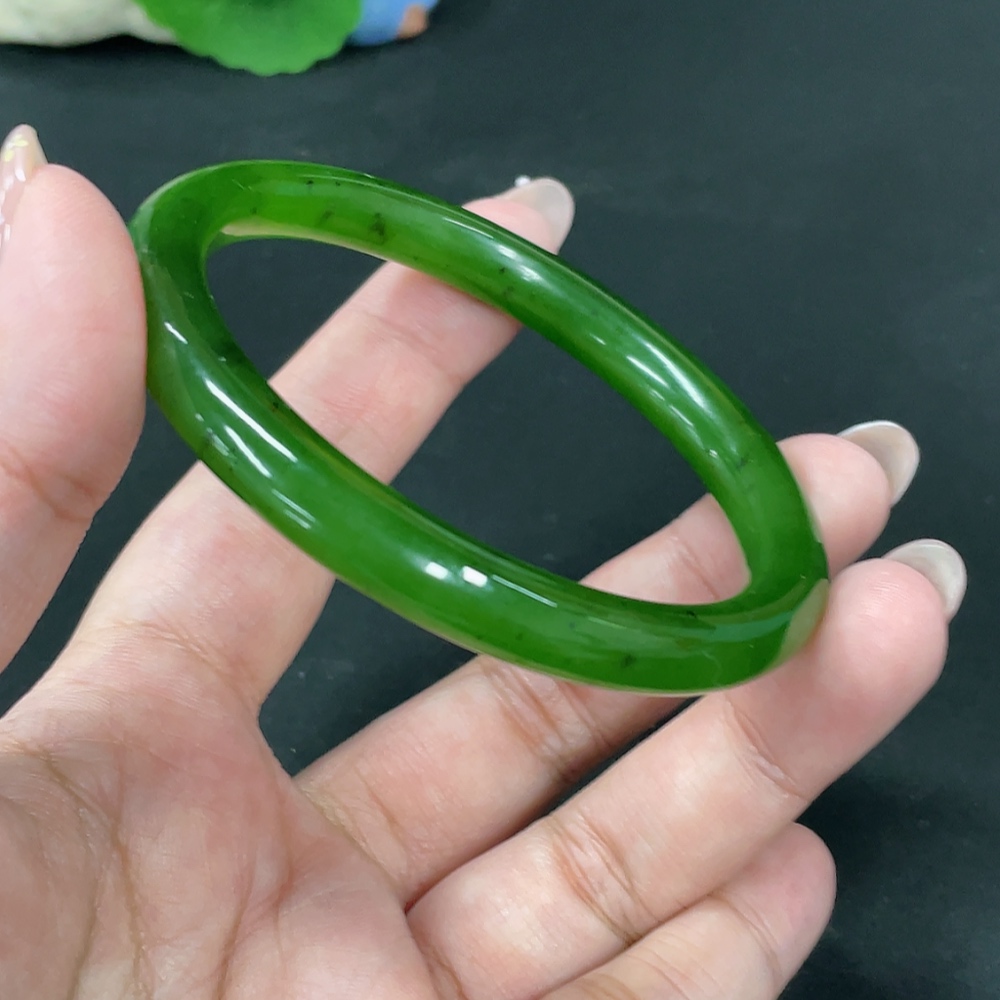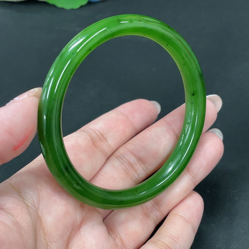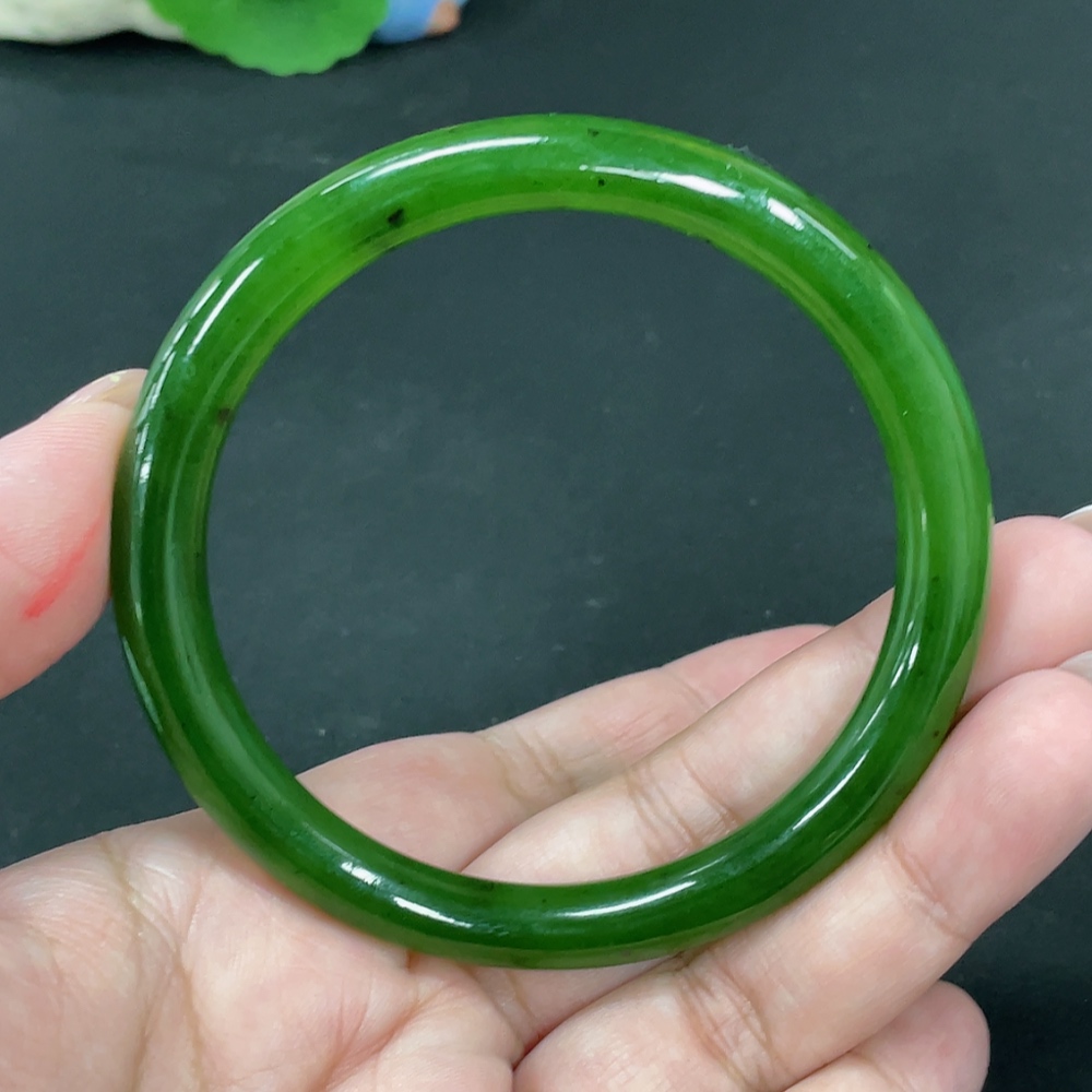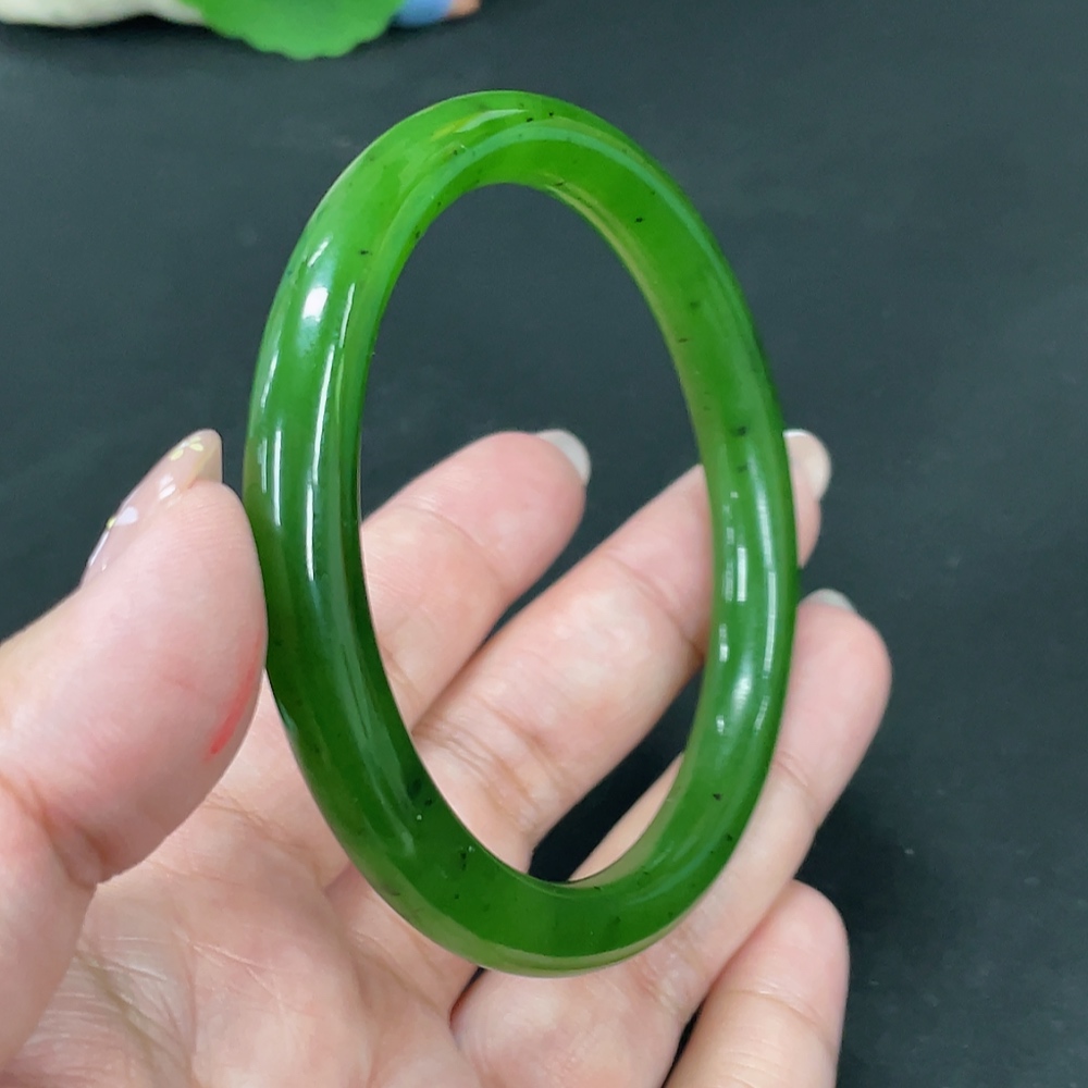 Hetian Jade Green Jade Round Bangle Size 60.7 Total Weight Approx. 34.3g
