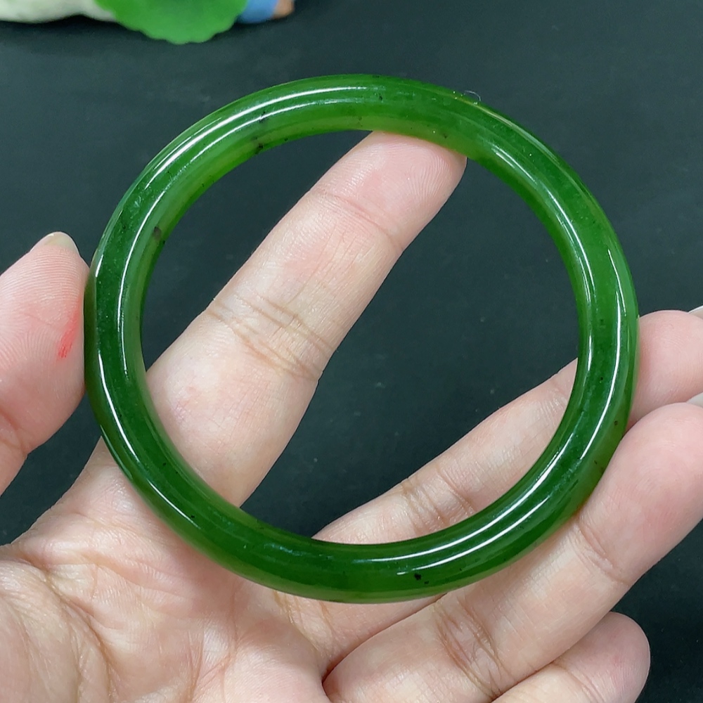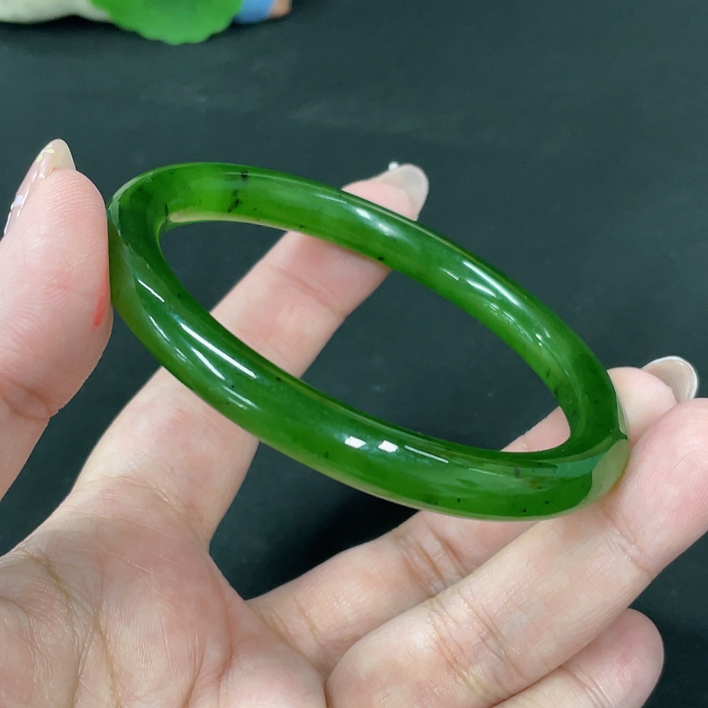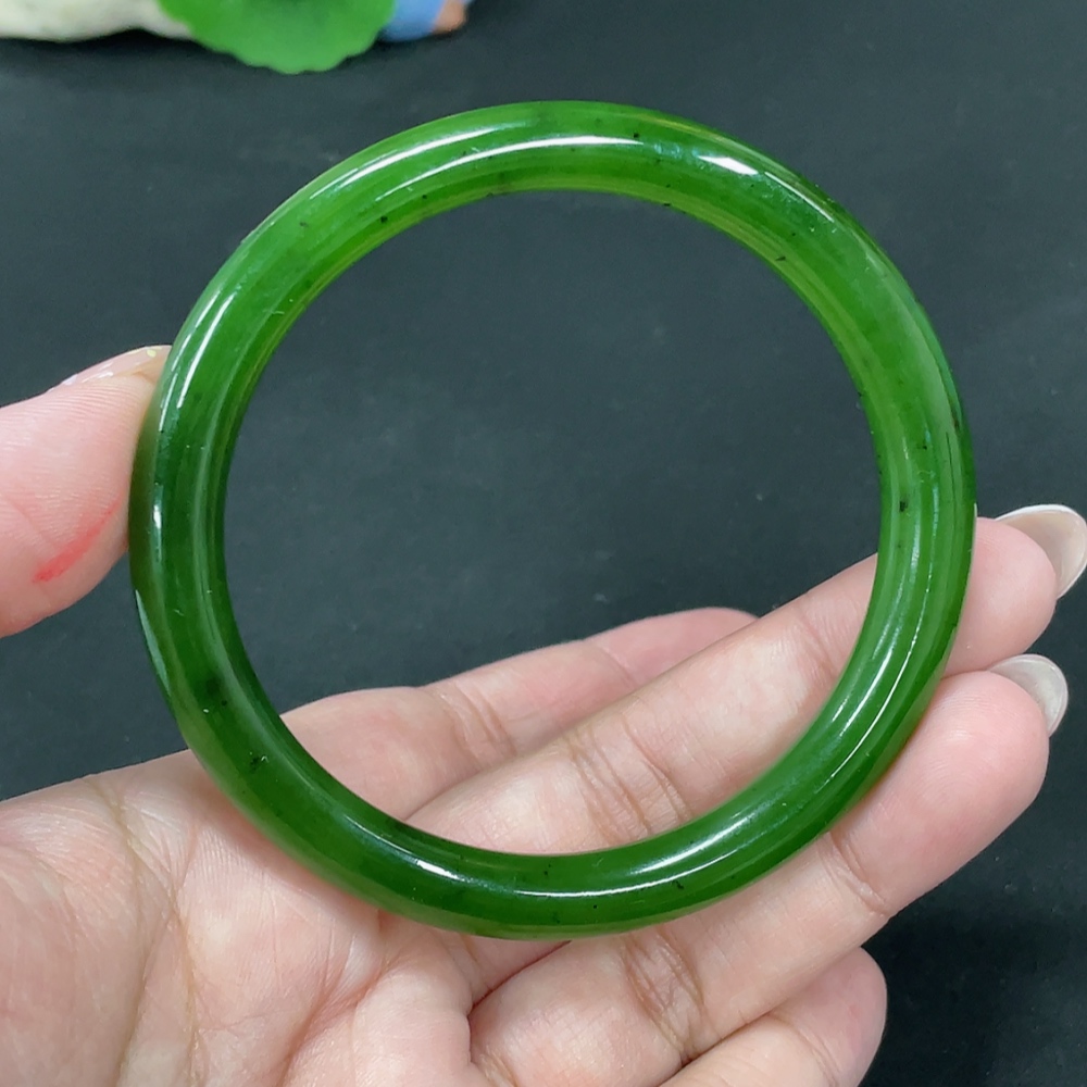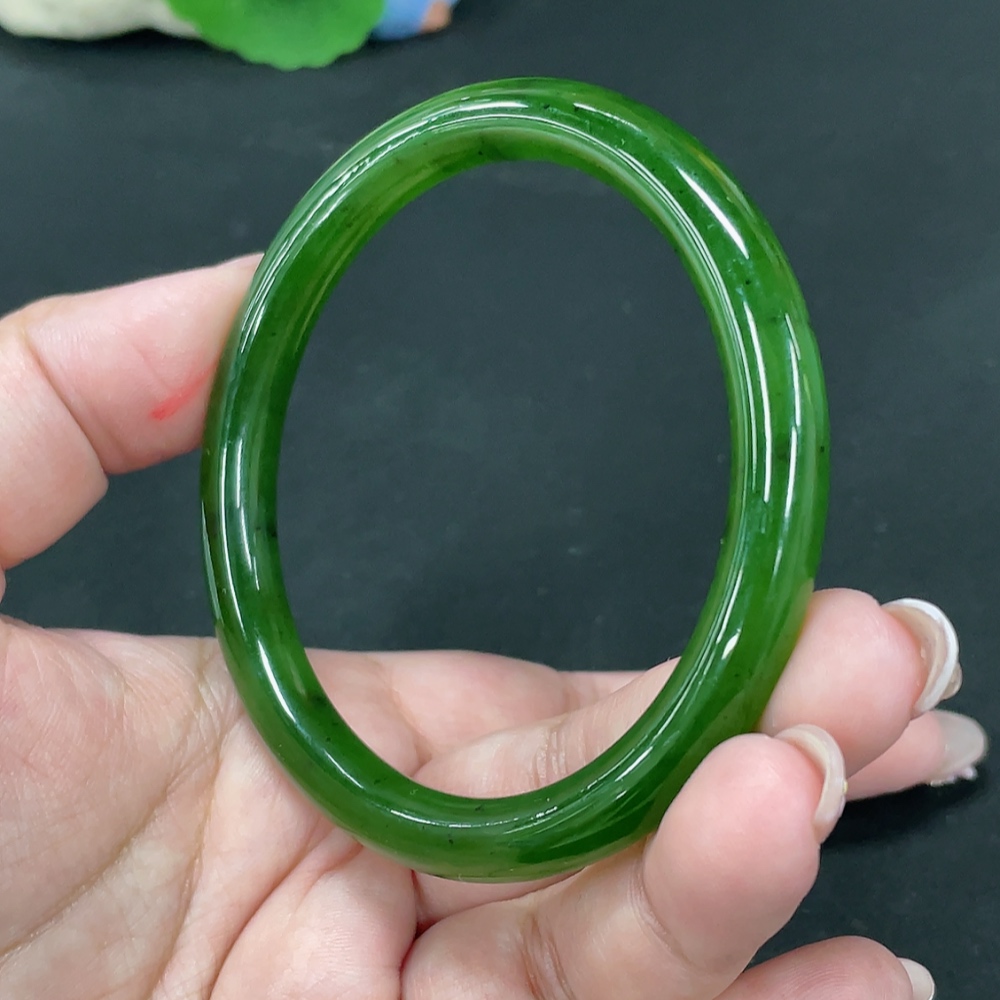 Hetian Jade Green Jade Round Bangle Size 60.7 Total Weight Approx. 34.3g
