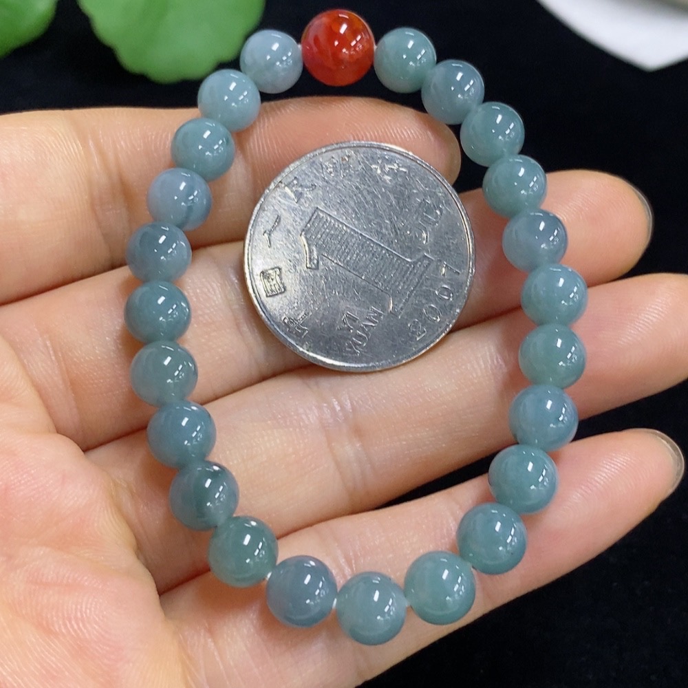 Jadeite Bracelet Approx. 6.7mm Beads Non-A Total Weight Approx. 13.26g