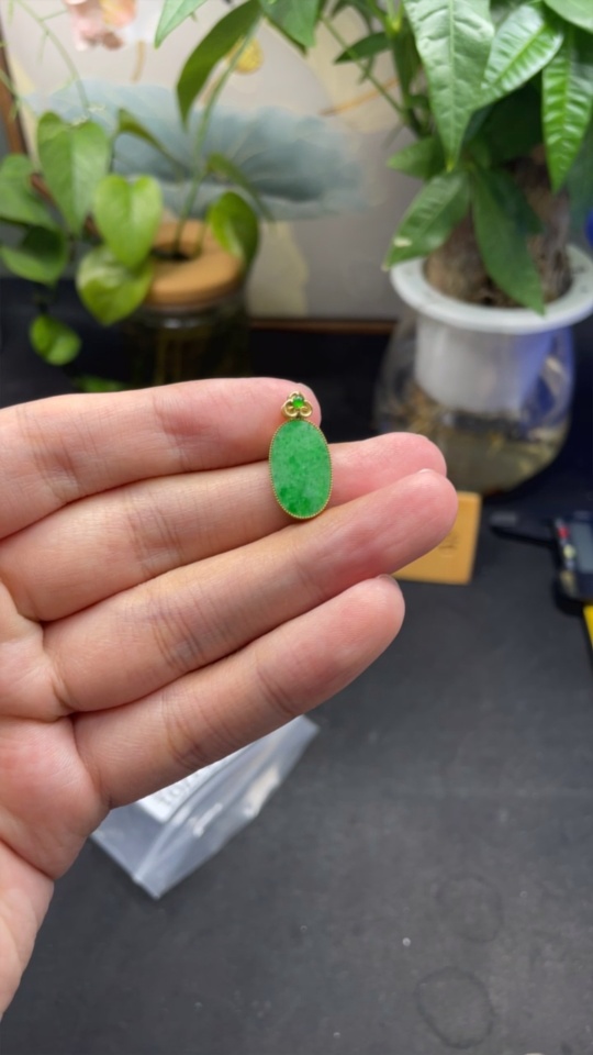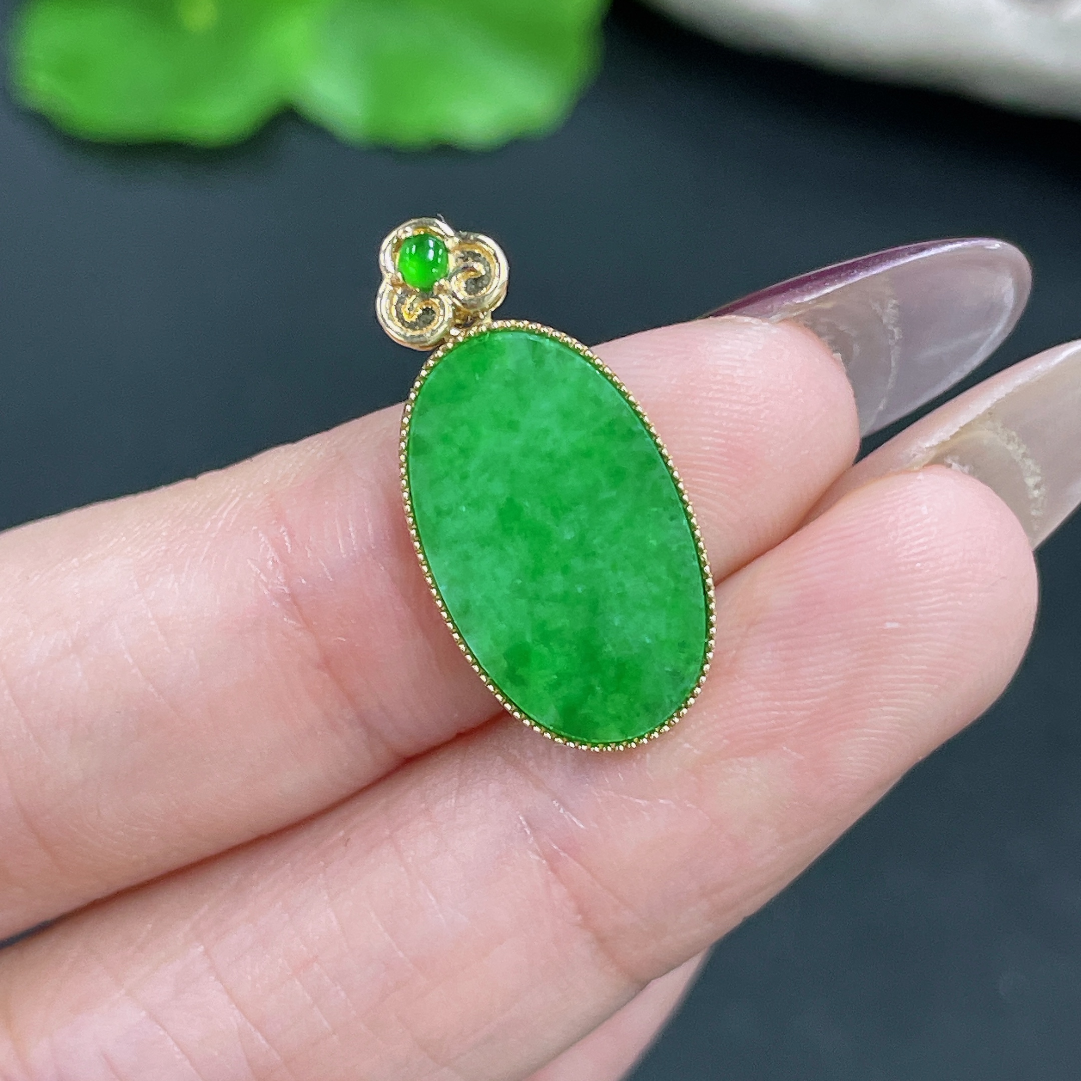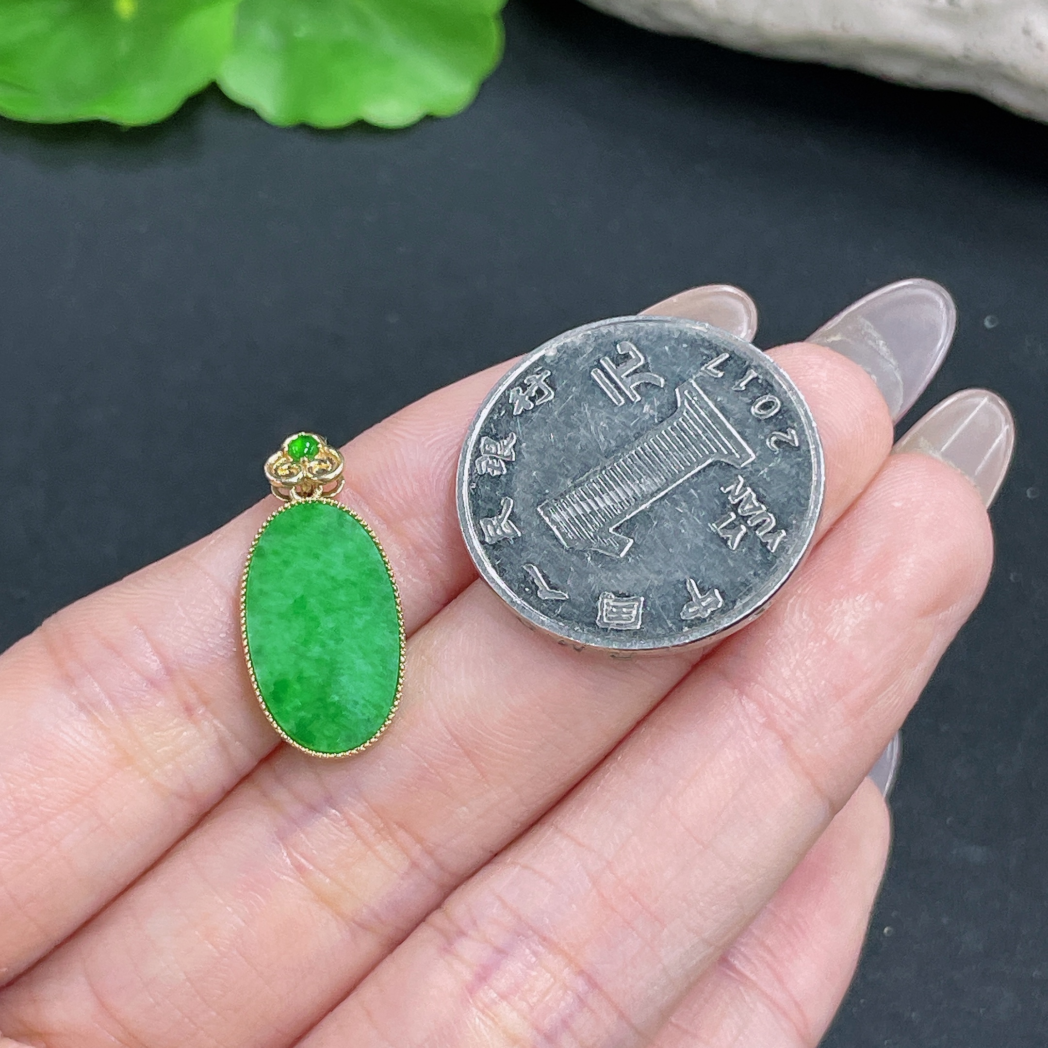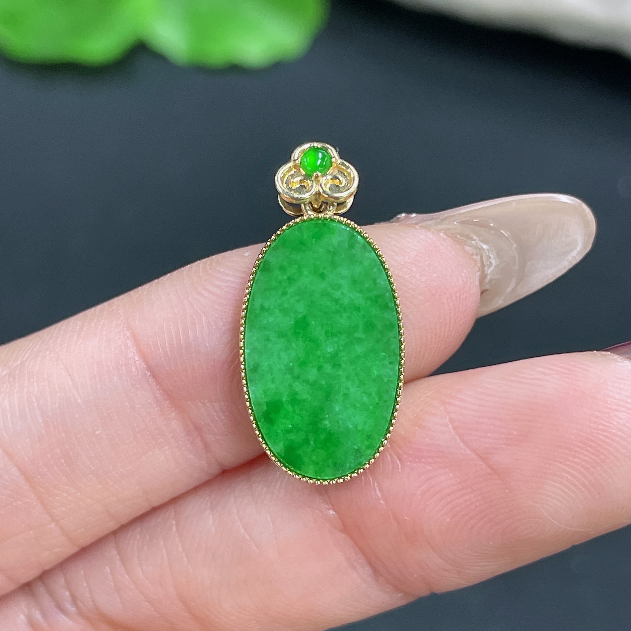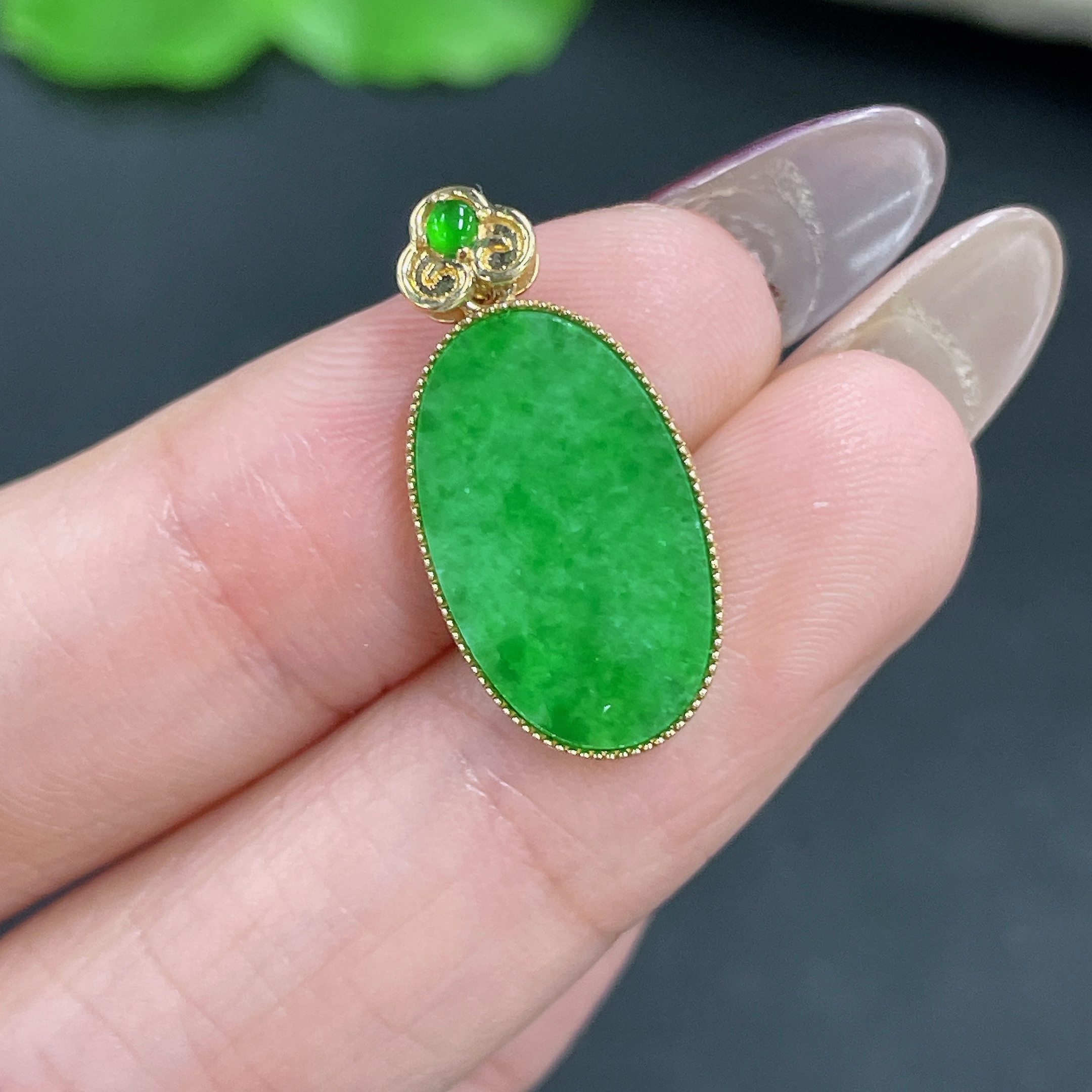 Jadeite Pendant 18k Gold Inlaid Total Weight Approx. 1.72g
