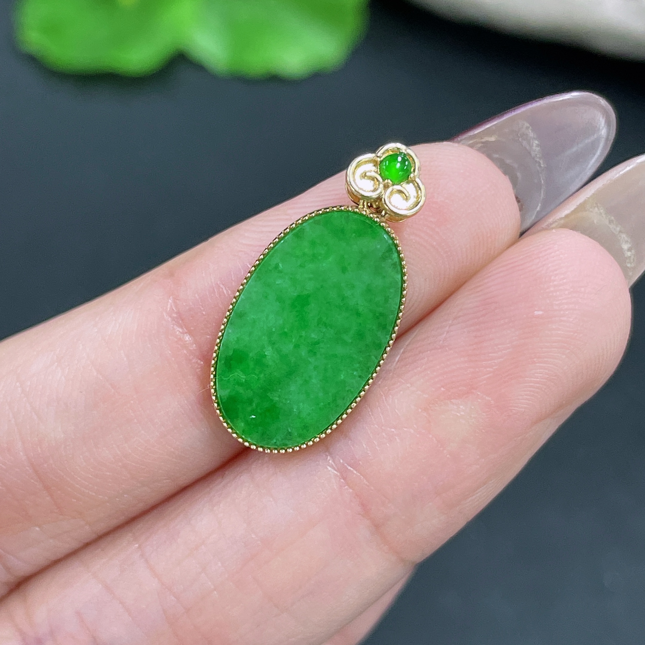 Trezaar - Jadeite Pendant 18k Gold Inlaid Total Weight Approx. 1.72g