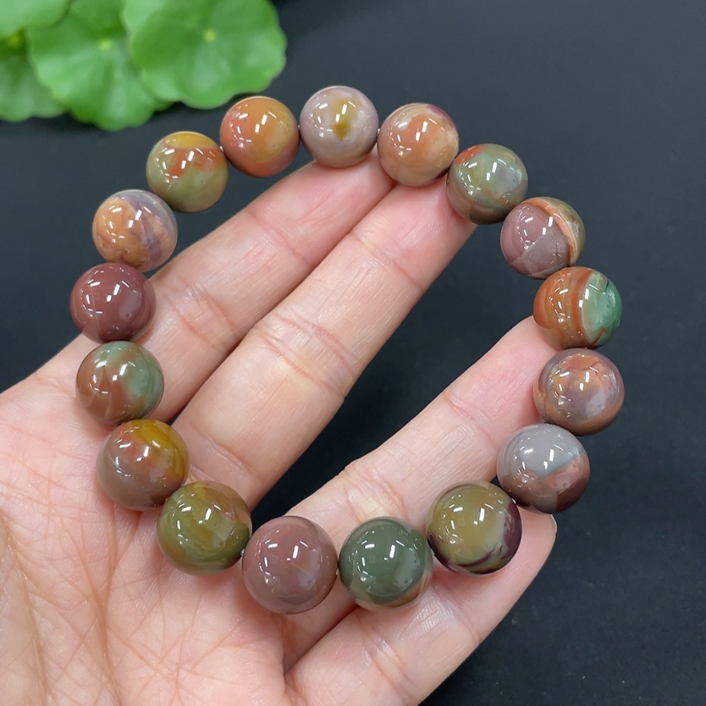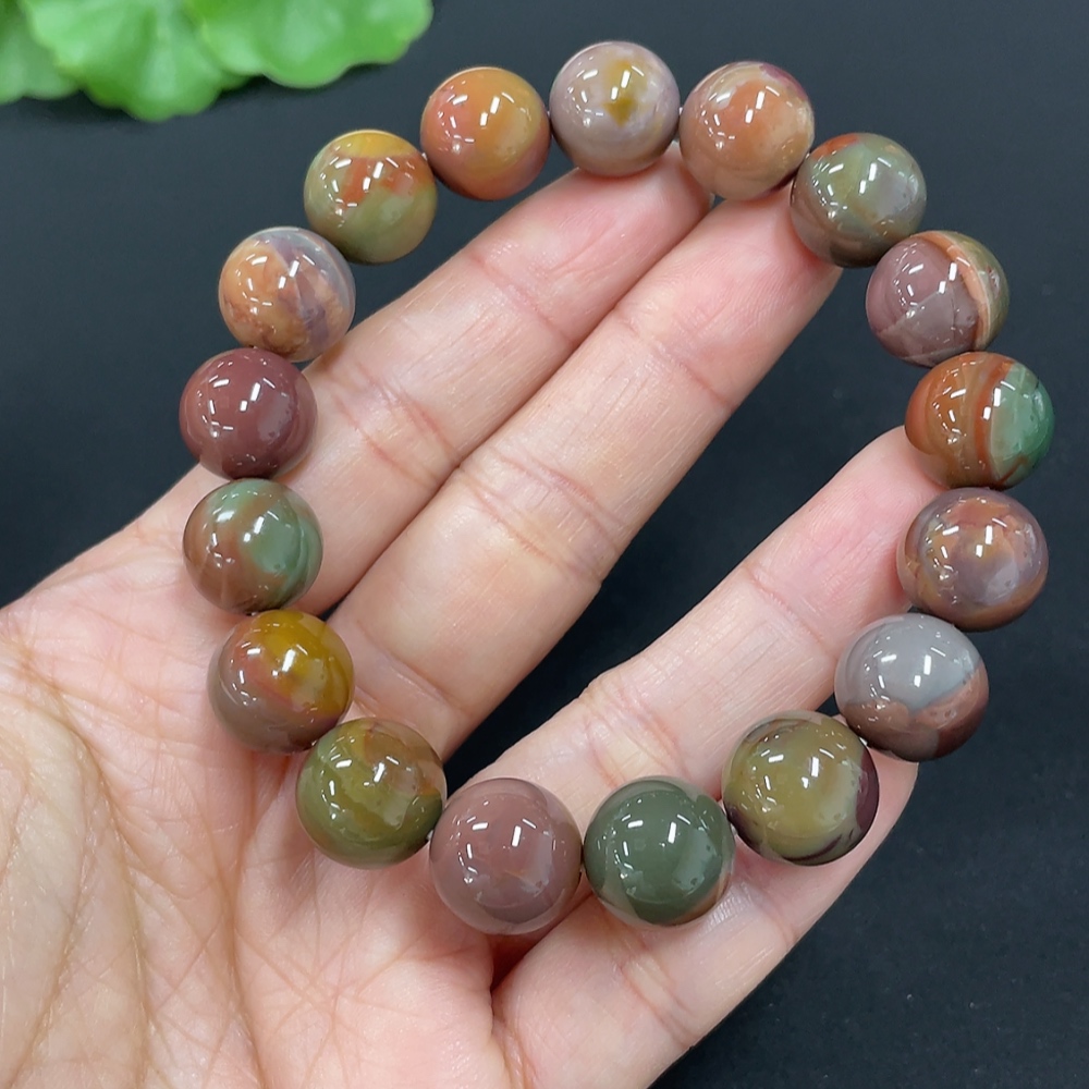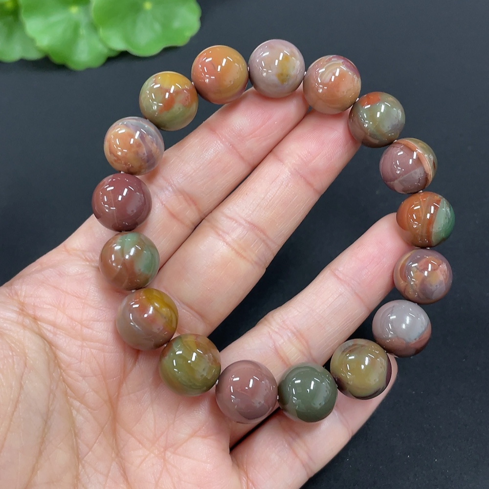 Alashan Agate Bracelet, approximately 11.3mm, total weight about 36.5g, contains other mineral components