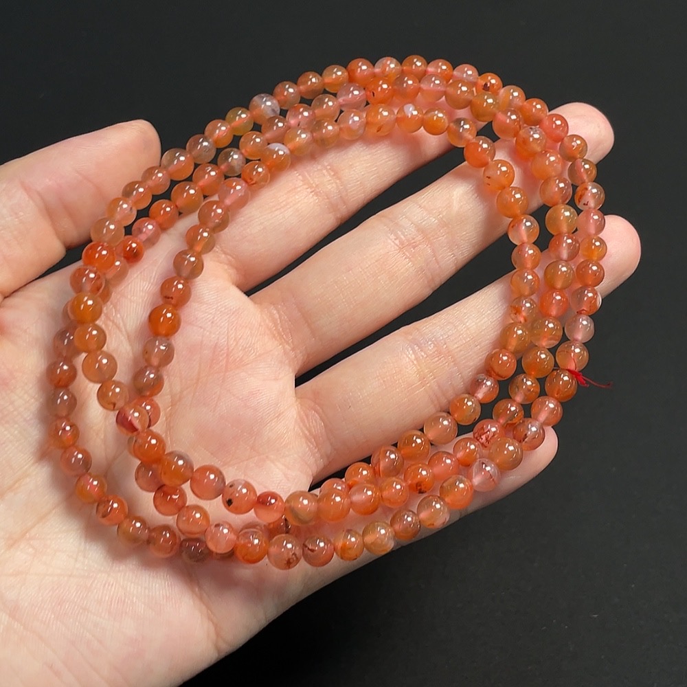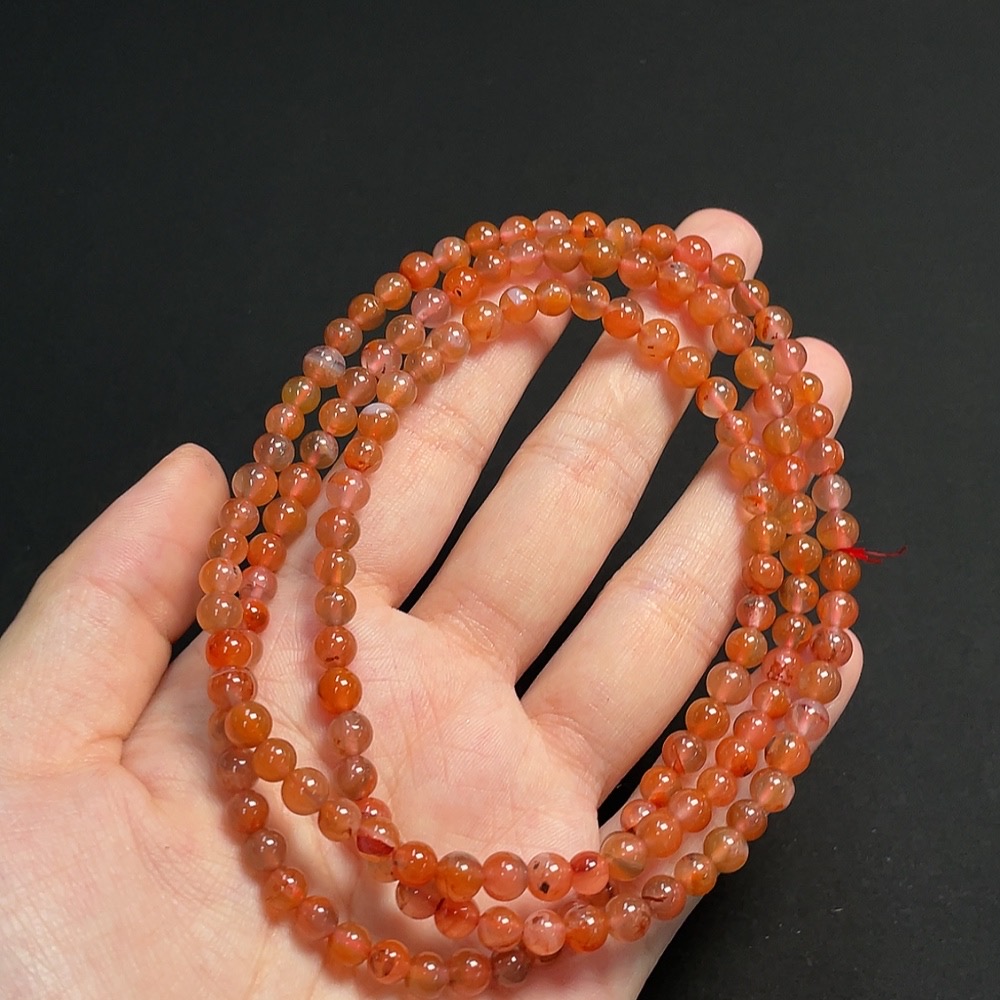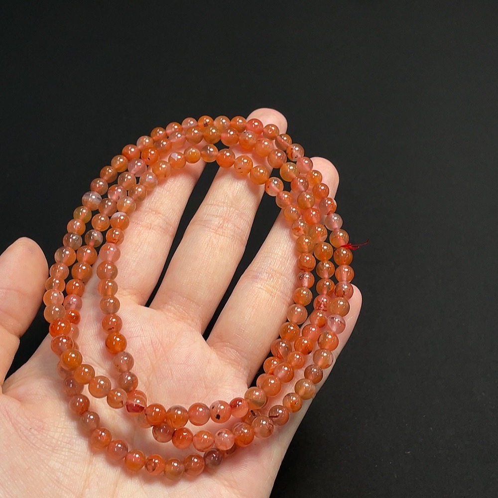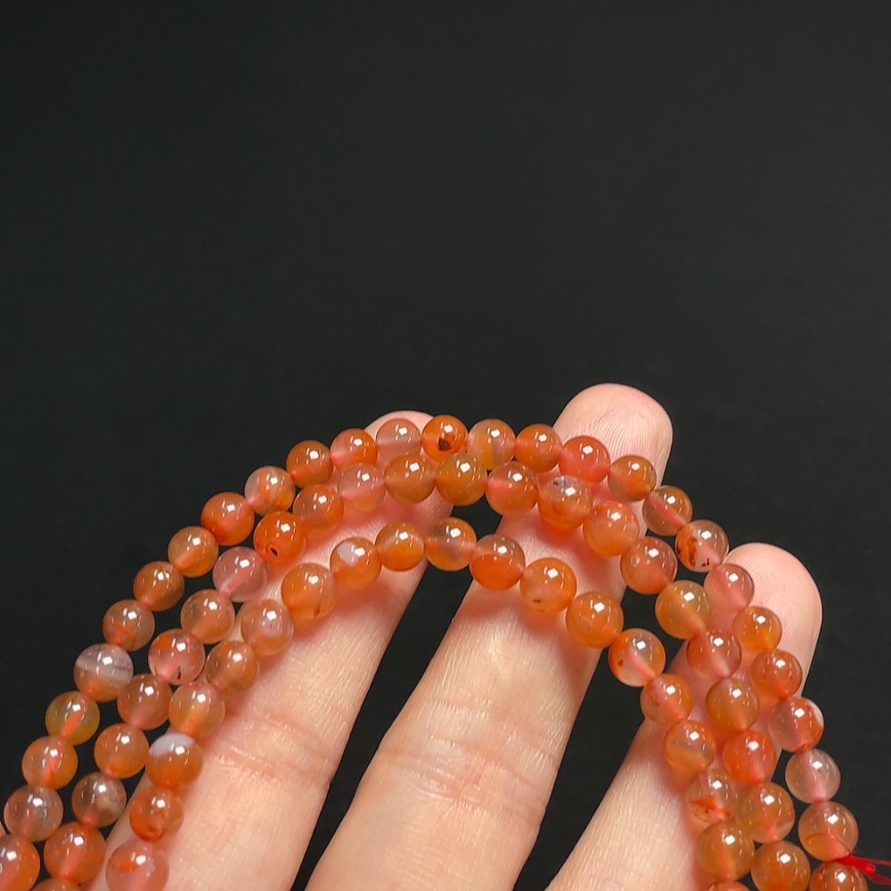 South Red Agate Bead Strand, Approx. 5.2mm, Total Weight Approx. 30.02g, Visible Organic Matter
